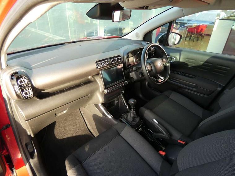 9" Touchscreen display, Citroen Connect Nav with 3D navigation, Coffee Break Alert, Cruise control with speed limiter, Driver instrument cluster including trip computer and rev counter with white text LCD display and white needles and chrome decor, eCall emergency call system, Lane departure warning system, Mirror screen with Apple CarPlay and Android auto, Outside temperature sensor, Tailgate, Traffic signs and speed limit recognition and recommendation, Variable assistance power steering, Voice recognition for radio, navigation and telephone features, Bluetooth hands free and media streaming with USB socket, Citroen connected DAB radio with 6 speakers, Steering wheel mounted controls for stereo and telephone, 3D effect LED rear lights, Automatic Eco LED headlights, Automatic lights and windscreen wipers, Black roof bars, Body colour painted door handles, Chrome chevrons front grille, Electric front windows + one touch + anti-pinch, Electric rear windows with one touch/anti-pinch, Electrically adjustable door mirrors, Electrically folding door mirrors, Fog lights integrated into front bumper, Front and rear body coloured bumpers, Heated door mirrors, Integrated roof spoiler, LED daytime running lights, LED third brake light, Painted door mirrors to match colour pack, Rear side wing doors, Rear wiper, Roof aerial, Tinted rear windows and rear quarterpanel glass, Variable front intermittent wipers, 12V socket in rear of vehicle, 60/40 split folding rear seat, Automatic air conditioning, Boot light, Centre console with closed storage and chrome insert, Driver and front passenger cup holders, Driver and passenger sunvisor with courtesy mirror, Flex load/Pull out boot floor, Front and rear courtesy reading lights, Front and rear door storage, Front head restraints, Gloss black air vent surrounds and steering wheel insert, Glovebox with closable lid, Height adjustable driver's seat, Height and reach adjustable steering wheel, Manual handbrake with chrome insert, Passenger compartment headlight adjustment, Rear isofix mounting points (outside seats) with top tether, Row 2 - Three seats with individually adjustable head rests, Satin chrome interior door handles, Single front passenger seat, 3 point, height adjustable, pre tensioned front seatbelts, ABS with Electronic brakeforce distribution and Emergency braking assistance, Automatic illumination of hazard warning lights, Curtain airbags, Driver airbag, Drivers/passengers and rear seats unfastened seat belt warning, ESC (Electronic Stability Control), Front lateral airbags, Front passenger airbag, Front passenger airbag deactivation switch, Hill start assist function, Mono-tone horn, Rear door child safety locks, Three 3 point rear seatbelts, Tyre pressure monitor, Automatic door and boot locking when moving off with automatic unlocking in case of impact, Automatic locking of the vehicle (after 30 seconds if door or boot unopened), Immobiliser, Perimetric and volumetric anti theft alarm, Remote central locking + deadlocks, Vehicle locater function (headlights illuminate when button on key pressed), Compressor with puncture repair kit,