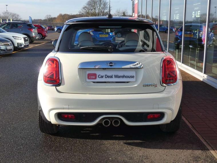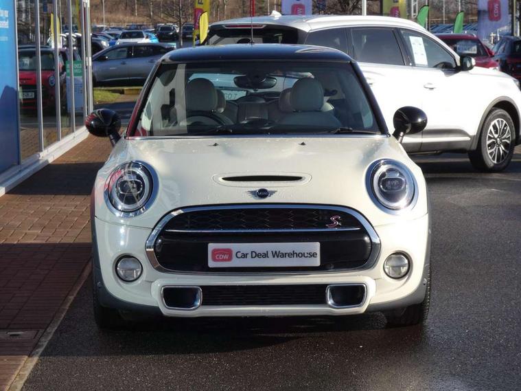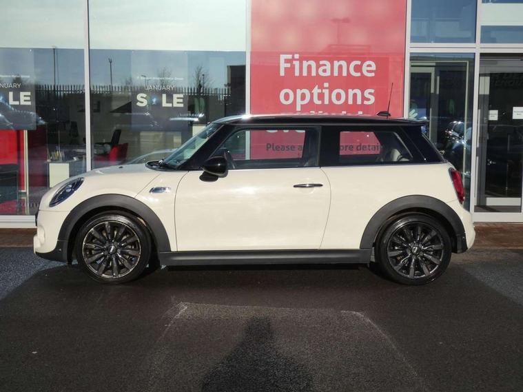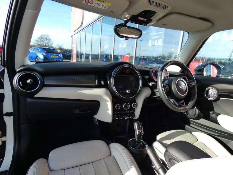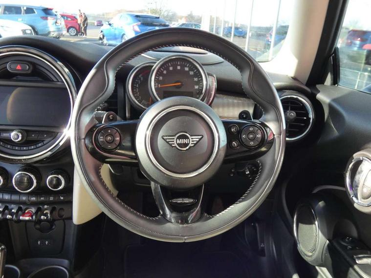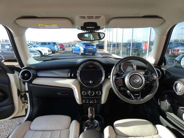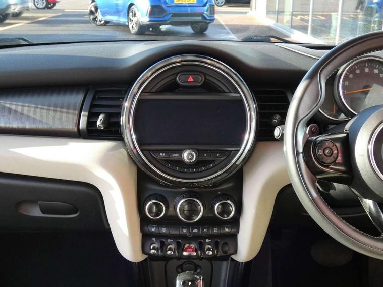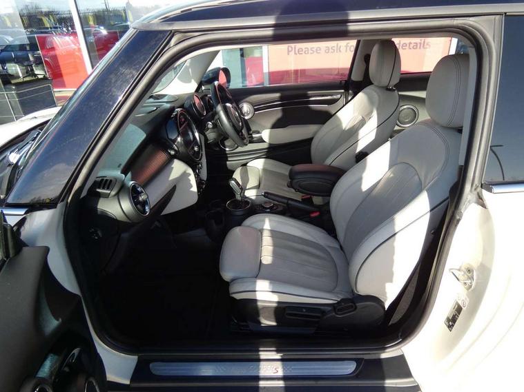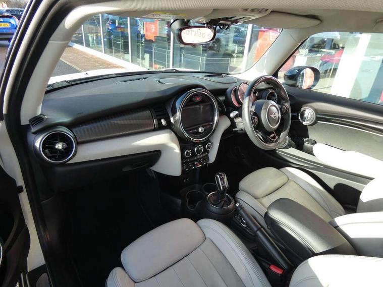 Compatible mobile phone bluetooth with audio streaming, Instrument cluster, Mini E-call, MINI TeleServices, On board computer, Service interval indicator, Performance Control, Steptronic sport transmission with double clutch and steering wheel paddles, 6.5" touchscreen with LED ring, FM tuner and DAB digital radio, Automatic headlight activation switch, Bonnet scoop, Chrome border honeycomb structure radiator grille with S badge, Chrome plated fuel cap, Dynamic brake lights, Electric front+rear windows, Heated rear window, Heated windscreen washer jets, LED headlight with closed ring and daytime driving lights, Metal door sill strips with Cooper S imprint, Model logo Cooper S on right of tailgate, Rain sensor window wipers, Rear fog lights, Rear LED lights with union jack design, Rear window wiper, Side scuttle panel with integrated indicator, Sun/heat protection glass, Two central exhaust tailpipes with chrome finisher, White indicator lenses, 12V Accessory socket in centre console, 4 lashing eyes in luggage compartment, 60/40 split folding rear seat, Chrome interior highlights, Cupholders, Front and rear isofix with front passenger airbag deactivation, Glove compartment, Height and length steering column adjustment, Interior lighting with 12 basic colours selectable via toggle switch in roof, Leather gearshift lever and handbrake gaiters, LED reading lights, vanity mirror lights, front foot well light and spotlight on front seats, Manual air conditioning, Mechanical seat adjustment, driver seat height adjust, forward/back and front seats backrest, Mini logo projection on floor from drivers exterior mirror, MINI Yours leather steering wheel with silver contrasting stitching with MINI Yours badge, Multifunction steering wheel, Storage compartments in doors, Storage pocket on back of front seats, Sunvisors with vanity mirrors, Tool kit, 3 point seatbelts on all four seats, 6 Airbags - front, side, head and seat belt tensioners, Anti-lock braking system (ABS), DSC - Dynamic Stability Control, Front and rear disc brakes, Hill start assist, Two tone horn, Tyre pressure monitoring system, Alarm system with tilt sensor, monitoring doors, bonnet interior and tailgate, Electronic vehicle immobiliser, Start/stop toggle with keyless go, Chrome line interior,