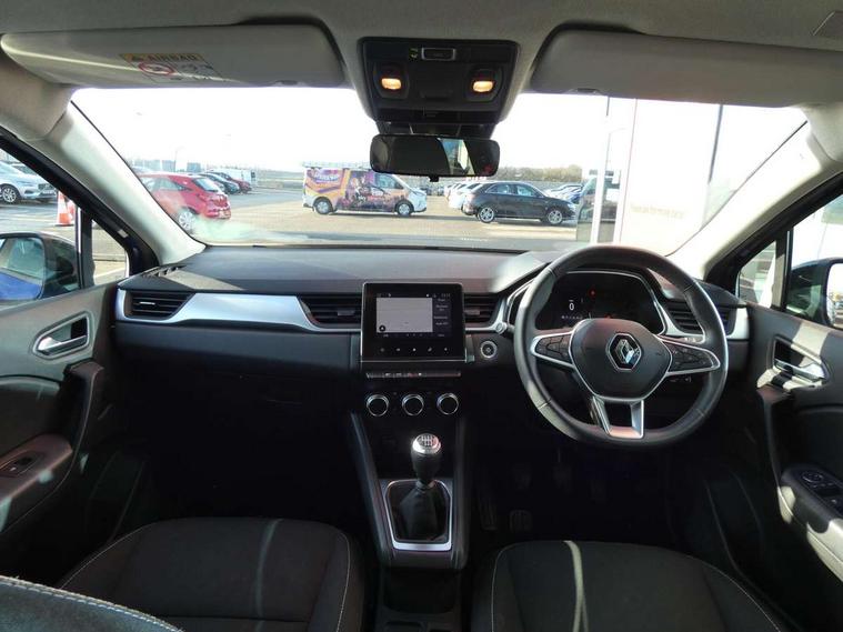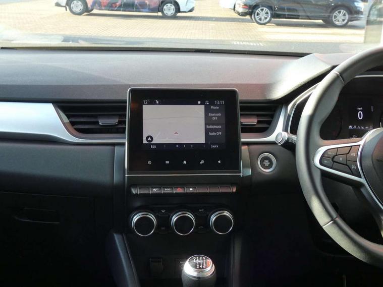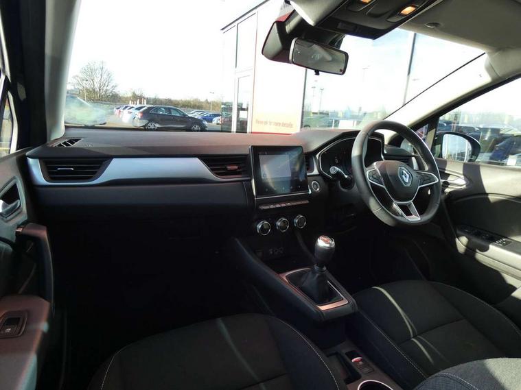 4.2" TFT Driver information display, Cruise control + speed limiter, eCall emergency call system, Eco mode, Gear change indicator, Lane departure warning system, Lane keep assist, Rear parking sensor, Traffic sign recognition with over speed prevention, Trip computer, Variable assistance power steering, Wireless Mobile Phone Charger, EasyLink 7" touchscreen with navigation, bluetooth, DAB radio, USB ports, compatible with Apple carplay/Android auto, Automatic front wipers with rain sensors, Automatic headlights, Automatic high beam - AHB, Black side door protection, Body colour door handles, Body coloured bumpers, C Shaped front and rear lighting signatures with 3D effect on the rear lights, Drivers one touch window with anti-pinch feature, Electric adjustable/heated/folding door mirrors, Electric rear windows, Extra tinted glass in rear windows and tailgate, Full LED headlights, Grey front and rear skid plate, LED front fog lights, LED rear fog light, Rear wiper, Variable speed on front windscreen wipers, 12V Accessory socket, 3 rear headrests, 60/40 split and fixed base rear seat bench, Automatic climate control with one touch demist function, Centre console storage tray, Cloth upholstery, Front head restraints, Glovebox, Heating system with pollen filter, Height adjustable driver's seat, Height/reach adjust steering wheel, ISOFIX child seat fixing points on rear outermost seats, Middle console with armrest and storage, Rear air vents, Sliding rear bench, Standard bulb in front roof lights, Synthetic leather steering wheel, 3 rear seatbelts, ABS+EBA, AEBS, Distance warning alert, Driver and front passenger, side, head and curtain airbags, Driver height adjustable seat belt, Electric parking brake, Electronic stability control, Front and rear no seatbelt warning sound, Front dash warning indicator in case of heavy braking, Front driver and passenger side airbag deactivation, Hill start assist, Rear door and window child locking function for rear door, Tyre pressure warning light, Anti drill door locks and locking fuel cap, Central door locking, Deadlocking system, Hands free keycard with push button and start/stop function, RAID (Renault Anti-Intruder Device) automatic door locking, Black soft touch dashboard, 17" Bahamas alloy wheels,
