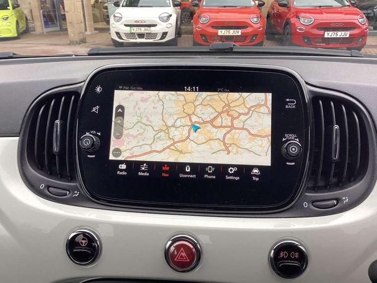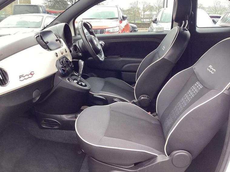 Apple car play/Android Auto, Cruise control, Dualdrive PAS, External temperature gauge, Rear parking sensor, Speed limiter, Stop/start system, Dualogic gearbox, 4 speakers, Rear speakers, Body colour sports bumpers, Electric front windows, Electrically adjustable painted door mirrors with defrosting / external temperature sensor, Front fog lights, Heat insulated glass, Heated rear window, LED daytime running lights, Satin Graphite exterior trim, 1 passenger grab handle, 50/50 split folding rear seats with height adjustable rear headrests, Auxilliary 12V power socket, Cloth upholstery, Front headrests, Height adjustable drivers seat, Height adjustable steering wheel, Isofix child seat preparation, Sport pack - 500C, 7 airbags - Driver, passenger, side, window and drivers knee airbags, ABS/EBD, ESC + ASR/MSR + HBA + Hill holder, Tyre pressure monitoring system, Automatic door locking, Locking fuel filler cap, Remote central locking,