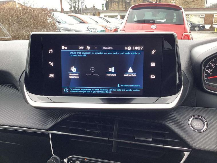 Bluetooth telephone facility, Driver attention warning, Emergency call service, Exterior temperature indicator with ice warning, Lane keep assist, Mirror screen with mirror link, apple carplay and android auto, Multi function trip computer, PEUGEOT i-Cockpit with 3.5" instrument panel display, PEUGEOT i-Cockpit with compact steering wheel, Programmable cruise control and speed limiter, Push button start, Rear parking sensors, Smart phone docking station, Speed limit recognition and recommendation, Start/stop system, 1x USB socket in front, 6 speakers radio with mp3 compatible, DAB Digital radio, Voice recognition for radio, navigation and telephony features, 2 X Rear number plate lights, Automatic hazard light activation upon heavy brake application, Automatic lights, Automatic windscreen wipers, Body coloured exterior door handles, Dark tinted rear side and tailgate windows, Diamond black rear spoiler (roof), Eco LED headlights, Electric front windows + one touch + anti-pinch, Electric rear windows with one touch/anti-pinch, Electrically adjustable, heated and power folding door mirrors, Electrochrome rear view mirror, Follow me home headlights, Gloss black rear cluster connecting strip, Headlights left on audible warning, LED daytime running lights with distinctive tooth design, LED third brake light, Model designation badges front and rear, Nera black door mirror shells, Radiator grille chrome chequered, Rear reversing lights, Rear side wing doors, Rear windscreen wiper triggered automatically in reverse gear, Roof mounted aerial, Roof spoiler, Single exhaust tailpipe, Tailgate with heated rear windscreen and wiper blade, Variable front intermittent wipers, 1/3 to 2/3 split folding rear seats, 12V socket, 3 seat bench in 2nd row, Automatic air conditioning, Driver and front passenger comfort seats, Driver and front passenger seat manual adjustment in longitudinal and back rest angle, Driver seat mechanical height adjustment, Electric power steering with reach and rake adjustable steering column, Front interior light with 2 reading spotlights, Gear shift indicator, Leather steering wheel, Low centre console, Map pockets on the backs of the front seats, Piano keys gloss black plated toggle switches to access main functions of the vehicle, Rear centre headrest, Roof lining - light grey, Satin chrome gear lever, Seatbelt unfastened on the move audible and visual alert for front and rear seats, Single front passenger seat, Tri material cloth upholstery, 2x Isofix child seat fitting on outer rear seats, 3 rear 3 point seatbelts, ABS (Anti-lock Braking System) with EBD (Electronic Brakeforce Distribution) and EBA (Emergency Braking Assistance), Adaptive driver and front passenger airbags with passenger airbag deactivation function, Child locking functionality on rear doors, Driver/front passenger side airbags, ESP with Hill Assist, Front and rear curtain airbags, Front and rear disc brakes, Front optimised safety headrests and 3 x rear retractable headrests with height adjustable, Front three point retractable seatbelts with force limiters, Manual parking brake, Pedestrians active safety brake, Tyre pressure sensor, Acoustic vehicle alert system (AVAS), Automatic door locking when moving off, Deadlock, Electronic code immobiliser, Remote central locking, Thatcham cat. 1 alarm with anti lift sensor, Carbon effect Dashboard, front and rear door panel finish, 16" Soho diamond cut alloy wheels,