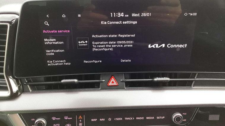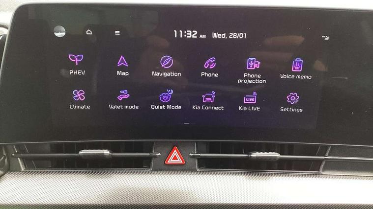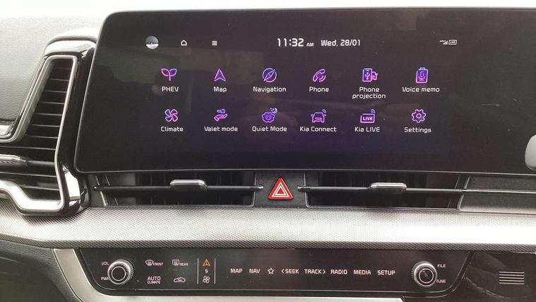 12.3" Display with navigation, 12.3" supervision colour cluster display, Apple car play/Android Auto with voice control, Drive mode selector, Driver attention warning, E-call, Forward collision avoidance assist (FCA) - city/pedestrian/cyclist/junction covering, Front and rear parking sensors, Highway Driving Assist (HDA), Intelligent speed limit assist, Kia Connect (UVO), Lane Following Assist (LFA), Lane keep assist, Low washer fluid warning, Motor driven power steering, Rear view monitor, Reversing camera system integrated into centre fascia screen, Smart cruise control with stop and go functionality, Tailgate, Trip computer, Windscreen washer level indicator, Intelligent Stop and Go, 6 speaker audio system, Bluetooth audio streaming, DAB Radio with MP3, Rear USB port, Steering wheel mounted audio controls, USB C type charging ports on centre console, USB C type charging ports on side of front seats, USB port for connection of a media device, All round electric windows with drivers and front passenger auto up/down and safety function, Auto dimming rear view mirror, Automatic headlight control system, Automatic window defogger, Backlite glass heated with timer, Black bumpers with silver accents, Black radiator grille with silver surround, Black side sill and wheel arch body mouldings, Body colour door mirrors, Body colour exterior door handles, Electrically adjustable/heated/folding door mirrors with LED indicators, High beam assist, Interior electrochromic mirror, LED daytime running lights, LED front fog lamps, LED headlamps (low and high beam - MFR type), LED High mounted stop light, Rain sensing wipers with aero blades, Rear fog lamp, Rear privacy glass, Rear side wing doors, Rear skid plate - silver, Rear spoiler, Rear wiper, Satin finished beltline, Silver roof rack, Silver window surround, Tinted rear glass, Trailer stability assist, 12V power socket in front centre fascia and luggage compartment, 2nd row personal lamps, 3 seat bench in 2nd row, 3 x passenger assist grips, 40/20/40 split folding rear seat, All-round height adjustable headrests, Automatic air conditioning, Centre console storage box, Cloth/faux leather upholstery, Cupholders in rear armrest, Door courtesy lamps, Drink holder at centre armrest, Driver and front passenger side sunvisors with illuminated vanity mirrors, Drivers seat power lumbar support, Electric height adjustable front seats, Front and rear door storage, Front Cabin, Rear & Luggage Compartment Lights, Front seat and rear pockets, Gear shift indicator, Glovebox illumination, Heated front and outer rear seats, Heated steering wheel, Interior door lock/unlock function, ISOFIX Child seat top tethers and anchor fixings outer rear seats, Leather steering wheel, Luggage area load cover, Luggage area parcel shelf, Luggage board, Luggage net with hooks, Metal paint interior door handles, Overhead console lamp, Paddle shift controls, Rear air conditioning, Rear cabin light, Rear coat hooks, Single front passenger seat, Tilt/telescopic adjustable steering wheel, Ventilation ducts to rear compartment, Active front headrests, All round 3-point seatbelts, Anti-lock braking system (ABS), Dual front side airbags, Dual horn, Dynamic brake control, Electronic parking brake with auto hold function, Electronic stability control with downhill brake control, Front passenger airbag cut-off switch, Front seatbelt pretensioners + load limiters, Height adjustable front seatbelts, Hill start assist control (HAC), Impact sensing auto door unlocking, Multi collision brake assist, Rear airbags, Rear door child safety locks, Rear seat alert system, Seatbelt reminder warning, Traction control, Twin curtain airbags, Twin front airbags, Tyre pressure monitoring system, Vehicle stability management, Advanced anti-theft system including immobiliser and alarm, Door deadlocks, Engine Start/Stop Button with Smart Entry System, Locking wheel nuts, Smart key with motion sensor, Speed sensitive auto door locking, Visible vehicle identification number, Aluminium pattern finish centre fascia and door garnish, 19" Alloy wheels, Tyre mobility kit,