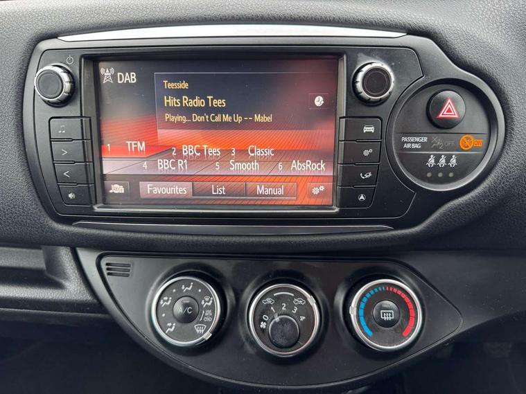 Bluetooth system, Cruise control, Electric boot release, External temperature gauge, Fuel indicator with low level warning, Lights on warning, Rear view camera, Remote fuel flap release, Speed sensitive power steering, Tachometer, Trip computer, 6 speakers, Auxiliary input socket, DAB Digital radio, MP3 player, Radio, Steering wheel mounted audio controls, Touch screen audio system, USB connection, 2 speed front wipers + intermittent wipe, Body colour heated door mirrors, Chrome fog light surround, Chrome grille surround, Colour keyed bumpers, Colour keyed door handles, Drivers window one touch up/down, Electric front windows, Electrically adjustable door mirrors, Follow me home headlights, Front fog lights, Green tinted glass, Headlamp levelling, Heated rear windscreen, LED daytime running lights, LED rear lights, Privacy glass, Projector headlamps, Rear spoiler, Rear wiper, 12V Accessory socket, 60/40 split folding rear seat, Boot light, Clean air filter, Driver seat height adjust, Driver's glovebox with lid, Driver/passenger vanity mirrors with covers, Front cupholders x 2, Front map reading lights, Front seats with lumbar support, Gioco cloth upholstery, Height adjustable front head restraints, Height adjustable rear seat head restraints (x3), Interior silver door handles, Isofix system on outer rear seats, Leather gear knob, Leather steering wheel, Rear cupholder, Removable rear parcel shelf, Tilt/telescopic steering column, 3 point seatbelts on all rear seats, ABS+EBD+Brake assist, Collapsible pedal support, Curtain airbags, Door open warning, Driver and passenger airbags, Drivers knee airbag, Front side airbags, Height adjustable front seatbelts with pre-tensioners and load limiters, Passenger airbag deactivate switch, Rear child proof door locks, Seatbelt warning lamp and buzzer, Tyre pressure monitoring system, Vehicle stability control VSC + traction control, Ventilated front disc brakes, Engine immobiliser, Remote central locking, Instrument panel in grey, 16" Machined alloy wheels, Space saver spare wheel,