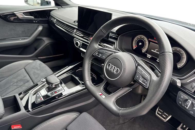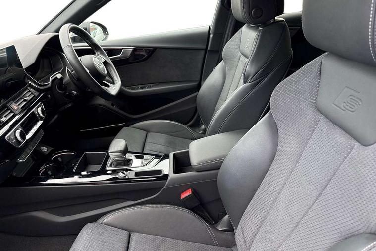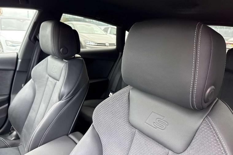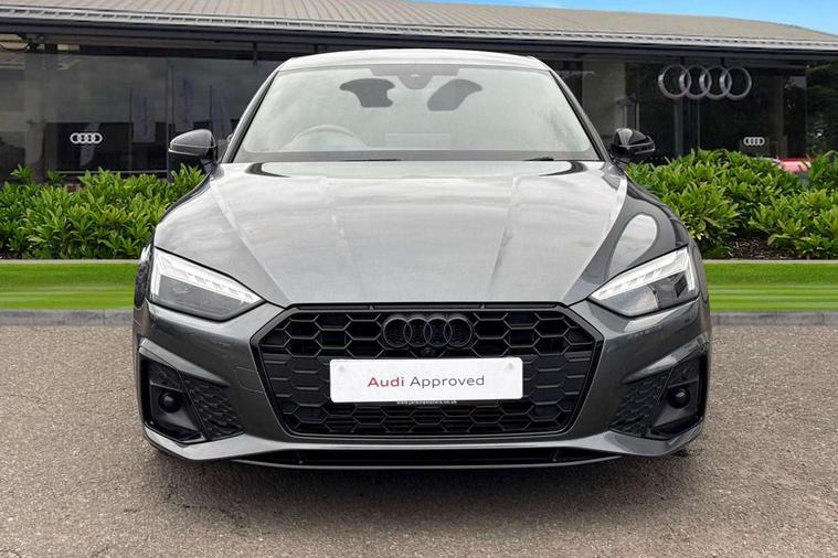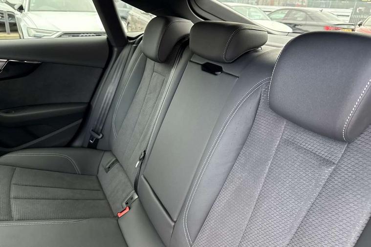 Audi connect safety and service (e-call), Audi connect with Amazon Alexa Integration, Audi drive select (Auto, Comfort, Dynamic, Efficiency and Individual), Audi parking system plus with front and rear sensors, Audi smartphone interface, Audi virtual cockpit - 12.3" full colour digital instrument cluster, vehicle/engine speed, Radio/media information+Driver assistance systems, Automatic start-stop system with coasting functionality and efficiency programme, Bluetooth interface, Electro-mechanical power steering, Email, calendar and text messages displayed via MMI, MMI nav+ with MMI touch - 10.1" high resolution MMI display, touch sensitive, 3D map, route/country info, dynamic route guide, personal route assist, Power operated tailgate, Rear view camera, Service interval indicator, Voice control system, Sports suspension lowered by 23mm, 8 passive loudspeakers, CD player, DAB digital radio reception, Two additional USB ports for rear passenger in rear centre console, Two SDXC card slots, Audi matrix LED headlights with LED rear lights + dynamic front and rear indicators, Auto dimming rear view mirror, Black audi rings decal above rear sills, Black door mirror housings, Body colour door handles, Body colour front spoiler lip, Body colour side sill trim, Electric adjustable heated door mirrors, Electric folding door mirrors, Electric front windows, Front fog lights, Honeycomb structure radiator grille in grained matt black, LED daytime running lights, LED third brake light, Matt aluminium silver tailpipe trim, Privacy glass, Rain and light sensors, Rear diffuser in matt titanium black with trim strip in matt aluminium silver, Rear side wing doors, S model rear spoiler in black, Side air inlets in grained matt black with matt aluminium silver inlay, Sport front and rear bumpers with side skirts, Variable front intermittent wipers, Windscreen with acoustic glazing, 3 Spoke flat bottom high multi-function leather steering wheel with shift paddles, 4 way electric lumbar support for driver and front passenger, 40/20/40 split folding 3 seater rear bench seat, Adjustable steering column, Black cloth headlining, Black perforated leather gearknob, Contrast stitching on seats, steering wheel and gear lever gaiter, Deluxe 3 zone electronic climate control, Front centre armrest, Front head restraints, Front/rear floor mats, Heated front seats, Illuminated door sill trim with S logo, ISOFIX child seat mounting and top tether, Luggage compartment mat, Manual seat adjustment, Rear headrests, Single front passenger seat, Stainless steel pedals, Sunvisors with vanity mirrors, Black styling pack - A5 Coupe/Sportback, LED interior light pack - A5/RS5, 3x3 point rear seatbelts, 6 airbags - Driver, front passenger, curtain and side airbags, Electromechanical parking brake, Electronic Stabilisation Control (ESC) including ABS, ASR and EDL, Front passenger airbag deactivation, Height adjustable front seatbelts, Hill hold assist, Multi collision brake assist, Pop-up bonnet for pedestrian protection, Pre sense city, Seatbelt monitoring, Tyre pressure warning, Variable restraint system, Warning triangle and first aid kit, Anti theft alarm system, Anti theft wheel bolts, Immobiliser, Keyless Go, Remote central locking, Piano black finish inlay, 20" 5 twin spoke polygon design alloy wheels in gloss anthracite black and gloss turned finish, Tool kit, Tyre repair kit,