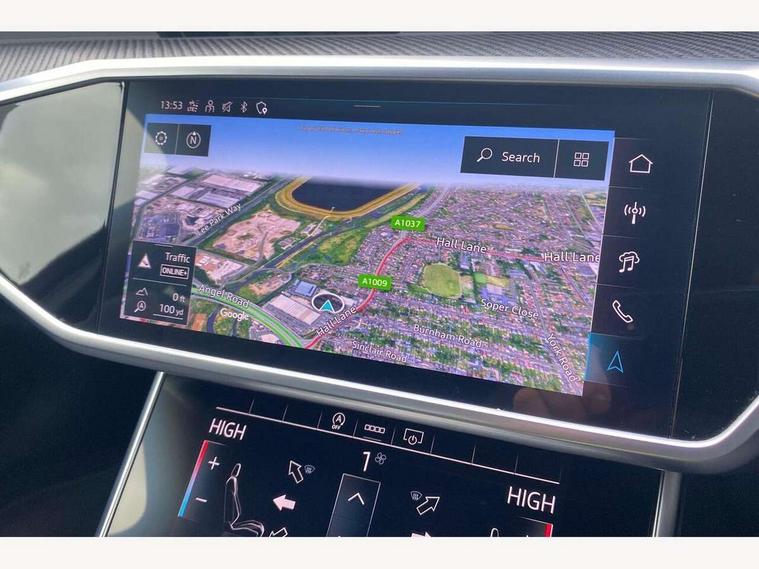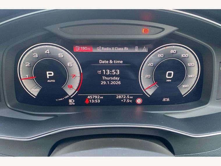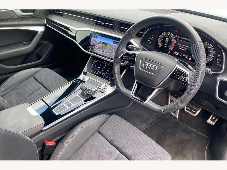 Audi connect safety and service (e-call), Audi connect with Amazon Alexa Integration, Audi drive select, Audi parking system plus - acoustic and visual park assist system for front and rear, Audi virtual cockpit, Automatic start/stop system with coasting functionality, Bluetooth interface, Camera based traffic sign recognition, Lane departure warning system, MMI navigation plus with 10.1" and 8.6" touch screens, Power operated tailgate, Progressive steering, Rear view camera, Service interval indicator, Smartphone interface includes wireless Apple carplay/Android Auto, Voice control system, Sports suspension, Audi front music interface, Audi sound system, Auxiliary input socket, DAB Digital radio, USB connection, Audi beam, Black roof rails, Body colour rear roof spoiler, Electric front/rear windows, Electrically adjustable heated and folding + automatically dimming exterior mirrors with memory function, Frameless auto dimming interior rear view mirror, Front intermittent wipers, Heat insulating darkened glass in side and rear windows, Heat insulating glass in windshield, LED rear lights with dynamic indicators, LED signature front daytime running light, LED third brake light, Matrix LED headlights, Matt black rear diffuser with diffuser strip and tailpipes in chrome, Matt black side air intake grille with inlay in matt aluminium, Omission of output/technology badging, Privacy glass, Radiator grille in anthracite black matt, single frame in chrome and horizontal struts in matt aluminium silver, Rain and light sensors, Rear side wing doors, Rear wiper, 2 zone deluxe electronic climate control, 40/20/40 split folding 3 rear seat bench in 3 parts with rear centre armrest, Audi phone box light, Black cloth headlining, Electrically adjustable front seats including seat height, fore/aft position, backrest angle and 4-way lumbar with memory for driver's seat, Front and rear floor mats, Front centre armrest, Front head restraints, Heated front seats, Height/reach adjust steering wheel, Illuminated door sill trims with S logo, Illuminated sun visors with vanity mirrors, Leather gear knob, Luggage compartment system, Rear headrests, Single front passenger seat, Stainless steel pedals and foot rest, Tool kit and car jack, Black styling package plus - A6 Black edition, LED Interior Ambient Lighting Pack - A6, Non smoking pack - A6, S line exterior style pack - A6, 3 point seatbelts on all seats, Airbags - Front side, front and rear including head, Audi pre-sense front, EBD - Electronic brakeforce distribution, Electromechanical parking brake, Electronic Stability Control (ESC) including ABS, ASR and EDL, Extended pedestrian protection measures, ISOFIX child seat mounting for front passenger seat and ISOFIX child seat mounting with Top Tether for outer rear seats, Manual child proof rear door locks, Seatbelt monitoring, Tyre pressure warning light, Warning triangle and first aid kit, Anti theft alarm with tow away protection, Anti-theft wheel bolts and wheel loosening detection, Immobiliser, Keyless Go, Remote central locking, Carbon twill inlays, 20" 10 spoke star black metallic audi sport alloy wheels in gloss turned finish,