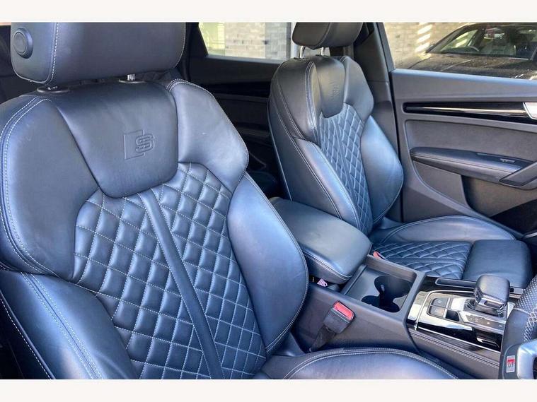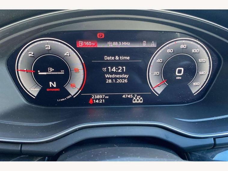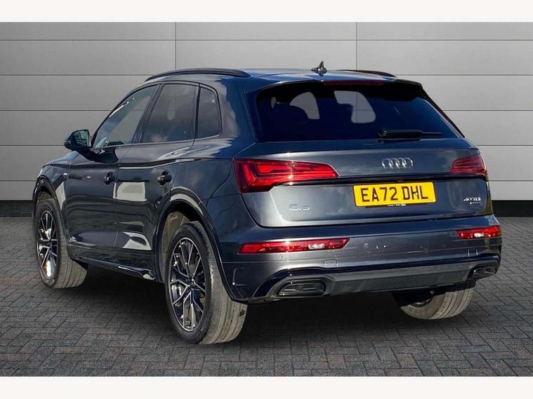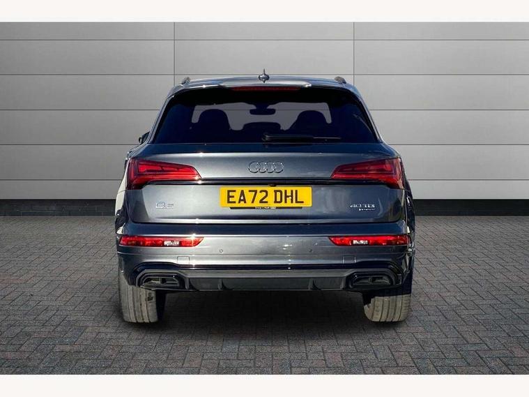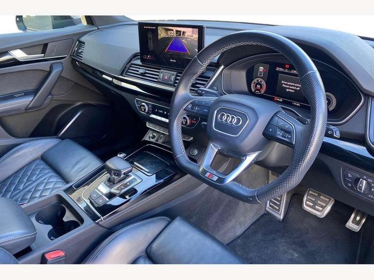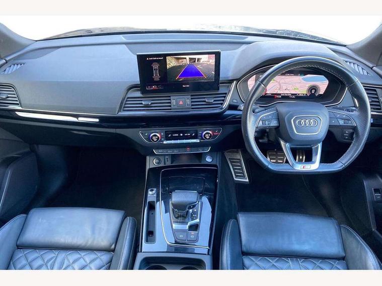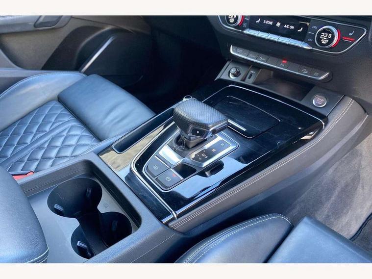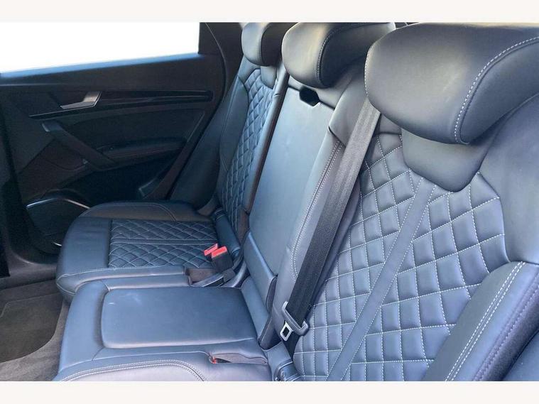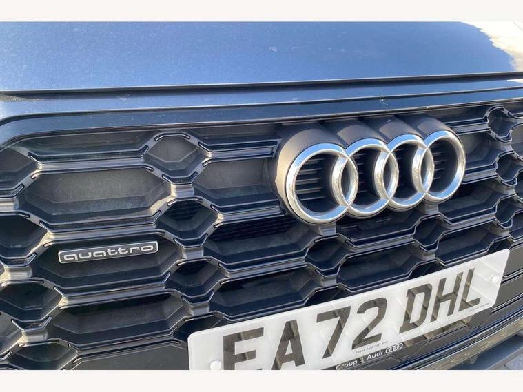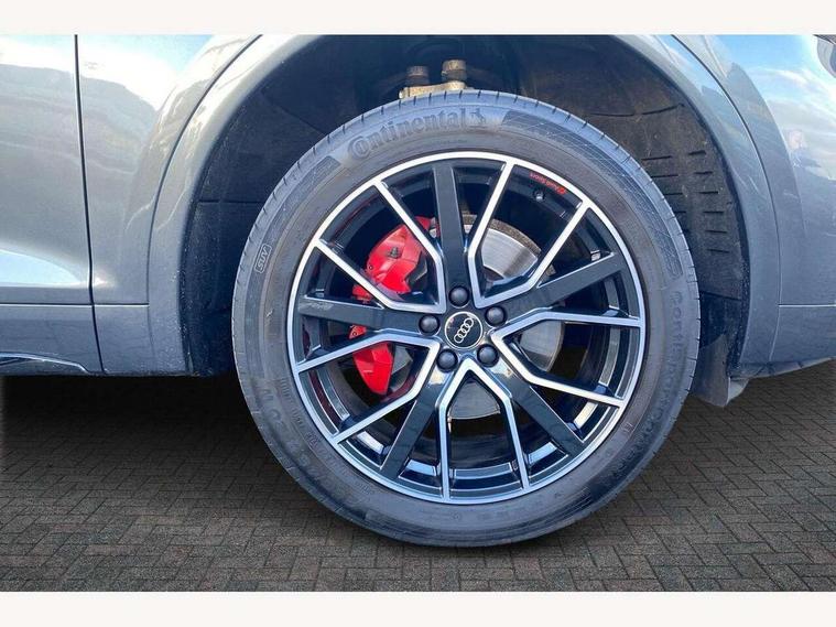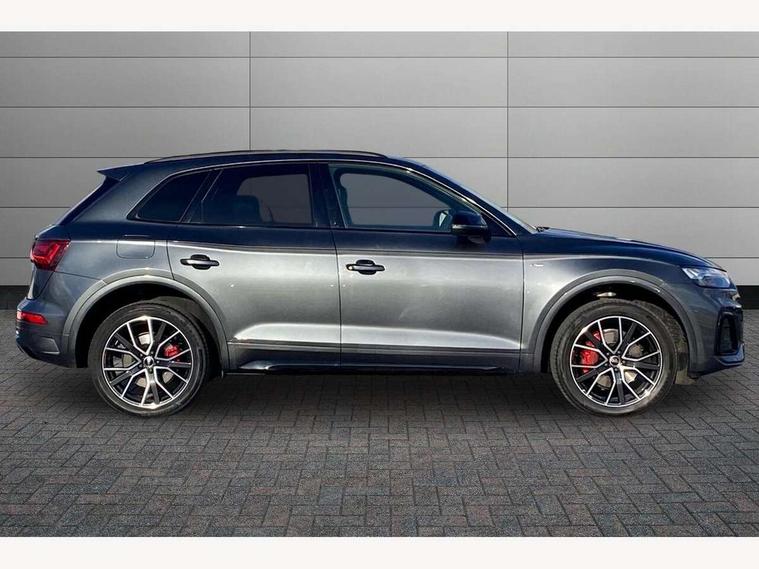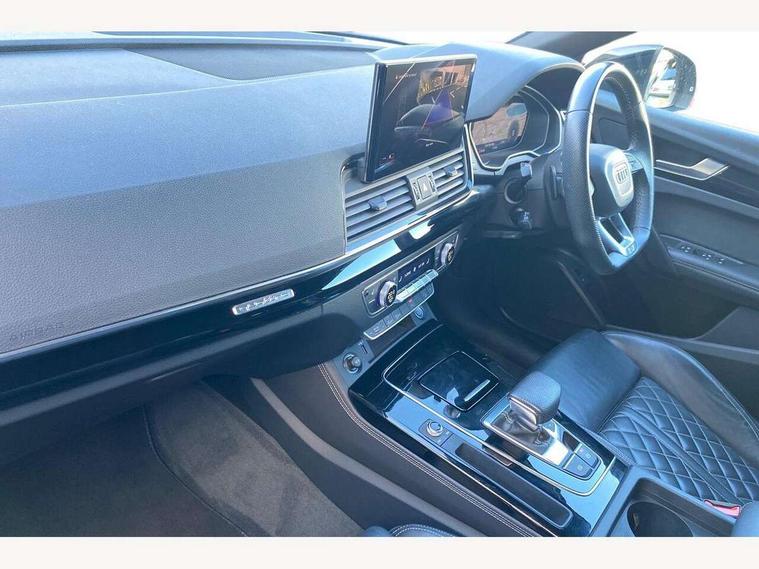 Audi connect safety and service (e-call), Audi connect with Amazon Alexa Integration, Audi drive select, Audi virtual cockpit plus with 12.3" screen and three different layout designs, Audi wireless smartphone interface, Automatic start-stop system with coasting functionality and efficiency programme, Bluetooth interface, Electro - mechanical power assisted steering, MMI navigation plus with 10.1" touch screen, Power tailgate, Reversing camera, Service interval indicator, Voice control system with Audi hotword activation "Hey Audi", Diesel particulate filter, Quattro on demand, S line sports suspension, 2 x USB charging port with aux input socket, DAB Digital radio, Acoustic windscreen, Audi matrix LED headlights with dynamic front and rear indicators, Audi rings at front and rear in black, Audi rings decal on rear doors, Auto dimming door mirrors, Auto dimming rear view mirror, Automatic headlight adjustment, Automatic headlights and windscreen wipers, Black roof rails, Body colour bumpers, Body colour underbody protection, Chrome plated exhaust trims, Daytime running lights, Door sills in Selenite silver, Electric adjustable/heated/folding door mirrors, Front air inlet surrounds in titanium black, Front and rear electric windows, Headlight washers, High gloss black B pillar trims and triangular rear door trim, High level LED brake light, Rear chrome trim strip below lights, Rear privacy glass and rear side windows, Rear side wing doors, Rear wiper, Roof bars, S Line rear spoiler, 3 rear headrests, 4 way electric lumbar support for driver and front passenger, 40:20:40 split folding 3 rear bench seat in 2nd row with rear centre armrest, Black cloth headlining, Comfort front centre armrest, Contrast stitching on seats, steering wheel and gear lever gaiter, Deluxe 3 zone electronic climate control, Electrically adjustable front seats, Fine Nappa leather upholstery with diamond pattern contrast stitching + front sport seats with S embossed logo, Front/rear floor mats, Gear lever in black leather, Heated front seats, Height adjustable front head restraints, Height/reach adjustable steering column, Illuminated door sill trims with S logo, ISOFIX child seat mounting and top tether, Luggage compartment cover, Rear seat bench plus, Removable luggage compartment floor, Single front passenger seat, Stainless steel pedals, Sunvisors with vanity mirrors, Black styling package - Q5 Edition 1, Extended interior upholstery pack - Q5, Extended LED Interior multi coloured Lighting Pack - Q5, 3 point seatbelts on all seats, 6 airbags - Driver, front passenger, curtain and side airbags, Electrically operated child locks on rear doors, Electromechanical parking brake, Electronic stabilisation control including ABS, ASR and EDL, Front and rear brake calipers painted in red, Front passenger airbag deactivation, Hill descent control, Hill hold assist, Multi collision brake assist, Pop-up bonnet for pedestrian protection, Pre sense city, Seat belt force limiter, Seatbelt monitoring, Tyre pressure warning, Warning triangle and first aid kit, Anti theft alarm, Anti-theft wheel bolts, Keyless Go access/ignition system, Remote central locking, Piano black finish inlay,