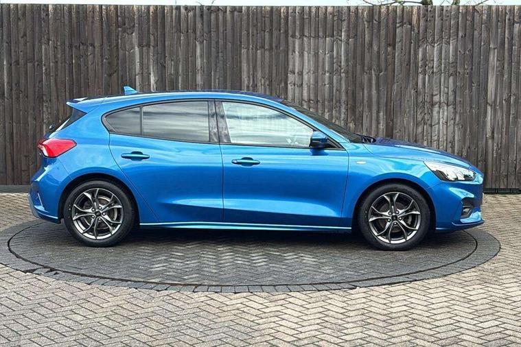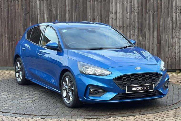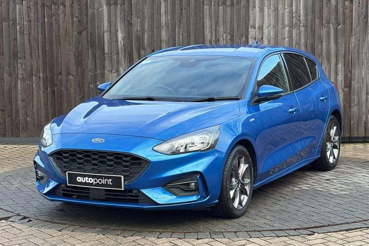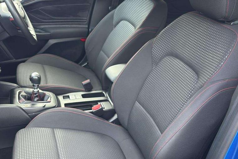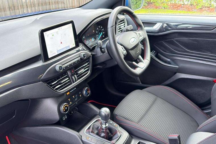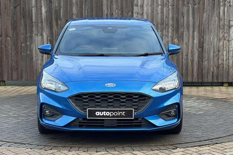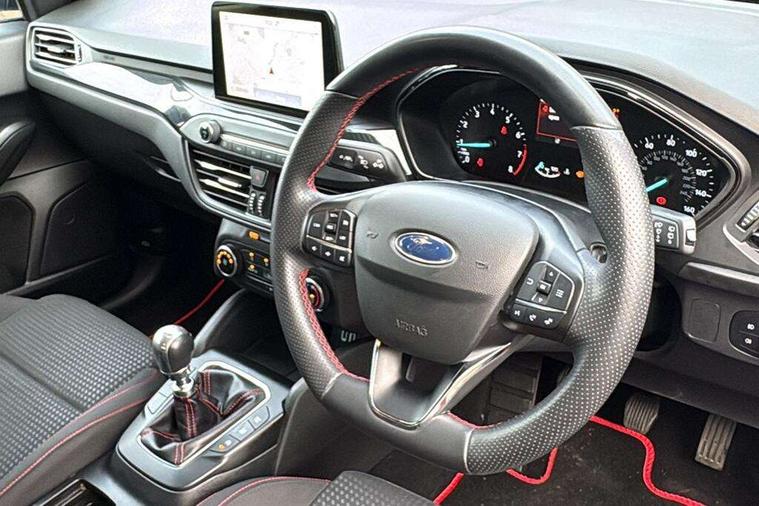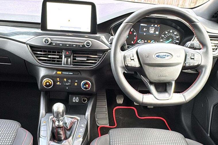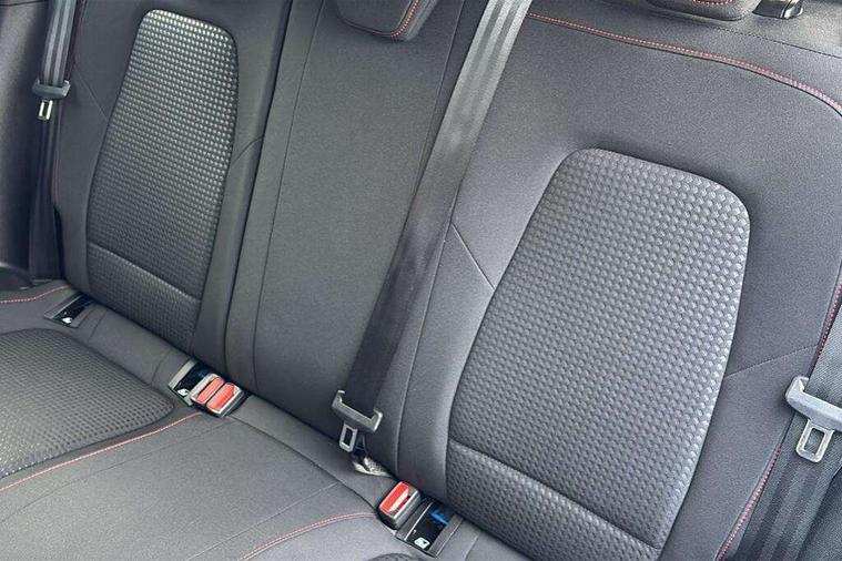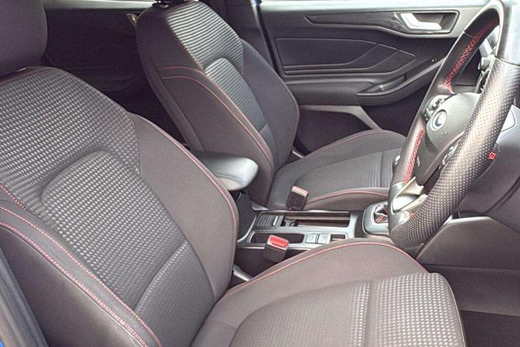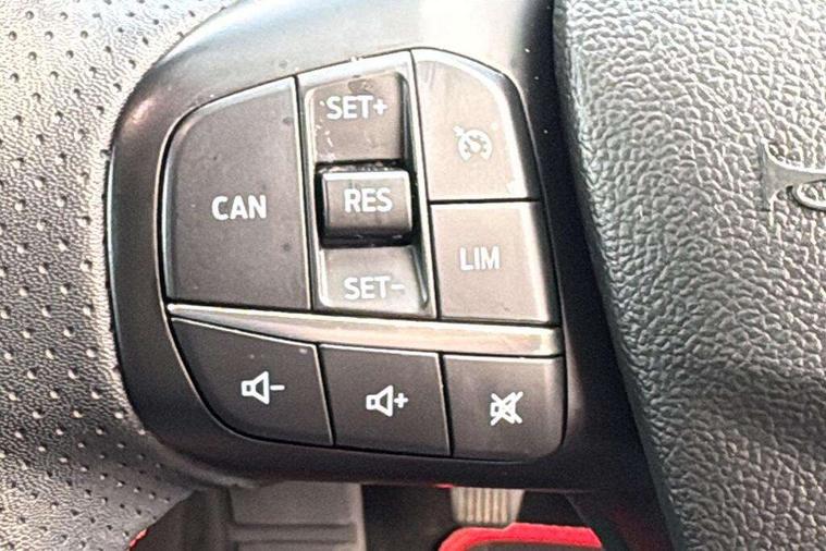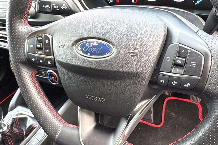 4.2" TFT coloured cluster, Bluetooth system, Digital clock, E-call, Easy fuel capless refuelling system, Eco mode, Ford SYNC 3 navigation with 8" TFT touchscreen, DAB radio and app link Android auto/Apple carplay, Intelligent speed assist, Lane keeping system - lane keeping alert and lane keeping aid, PAS, Selectable drive mode, Trip computer, Sports tuned suspension, 2 USB ports, Aux input, Auto dimming rear view mirror, Auto headlamps (on/off), Automatic rain sensing wipers, Body colour large rear spoiler, Body coloured bumpers, Body coloured door handles, Body coloured electrically operated and heated door mirrors with side indicators, Electrically operated front and rear windows with one touch opening and closing, Front variable intermittent wipers with electric wash, Heated rear window, LED daytime running lamp, LED front fog lamps with cornering function, LED reflector headlamps, Polished twin tailpipe, Power folding door mirrors, Quickclear heated windscreen, Rear privacy glass, Rear side wing doors, ST-Line upper and lower grille with full body styling kit and wing badges, Tailgate wash/wipe, Third brake light, 3 seat bench in 2nd row, 3 spoke flat bottomed Sensico steering wheel with red stitching, Aluminium gear knob, Cloth upholstery, Dark headliner, Driver's lumbar support, Front floor mats, Height adjustable front headrests, Isofix child seat preparation, Manual air conditioning, Reach + rake adjustable steering column, Rear centre headrest, Single front passenger seat, 3x3 point rear seatbelts, ABS+Electronic Brake force Distribution, Auto hold function, Driver airbag, Electronic parking brake, Electronic stability control, Front and rear seatbelt reminder, Front inertia reel height adjustable seatbelts with pre-tensioners, Front passenger airbag, Front side airbags, Hill start assist, Manual rear child locks, Passenger airbag deactivate switch, Post collision braking, Pre collision assist with autonomous emergency braking and pedestrian/cyclist detection, Side curtain airbags, Three rear inertia reel lap/diagonal seatbelts, Tyre pressure monitoring system, Ford keyfree system with Keyless entry and keyless start/sleep mode key fob, MyKey system, Remote central locking & engine immobiliser, Thatcham category 1 alarm, 17" 5x2 spoke alloy wheels with rock metallic finish, Mini steel spare wheel,