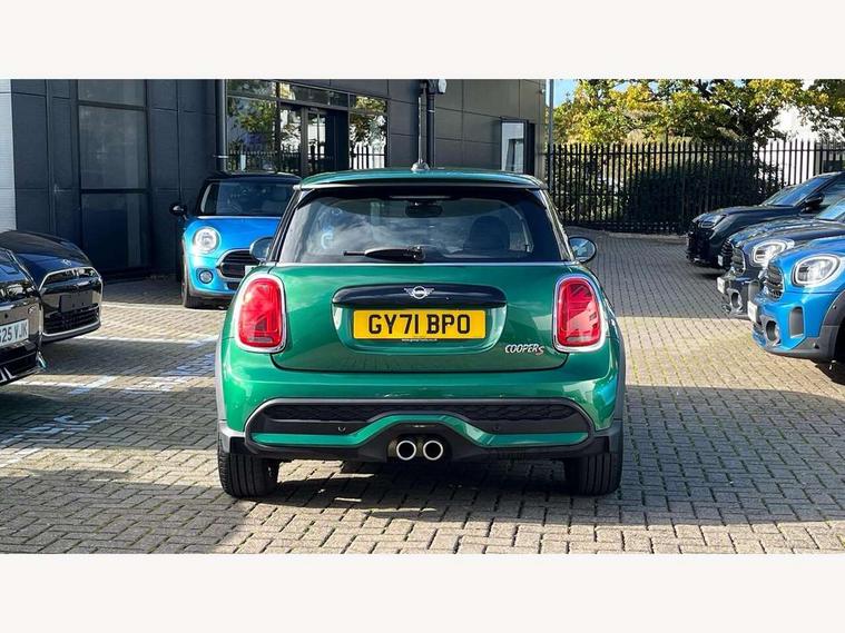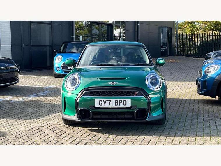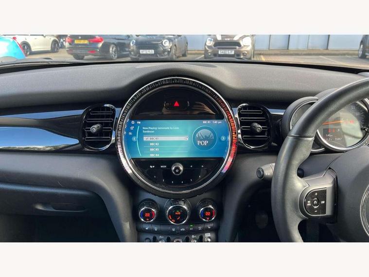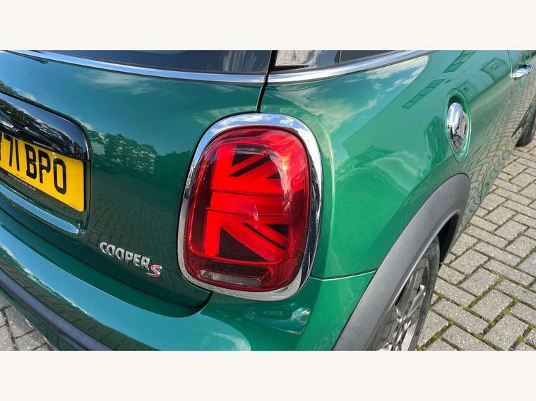 Automatic start/stop function with brake energy recuperation, Compatible mobile phone bluetooth with audio streaming, Cruise control with brake assist, Electro-mechanical speed dependant steering assistance, Flexible car sharing preparation, Instrument cluster, MINI Driving Modes - centre toggle switch to control driving setting (sport, mid and green), Mini E-call, MINI TeleServices, On board computer, Service interval indicator, 6 Speed manual transmission including gear change indicator display, Double Vanos system, Fully variable valve control, High precision injection, Performance Control, 4 speakers in front door trims and underneath front seats, 8.8" touchscreen with LED ring, FM tuner and DAB digital radio, Automatic headlight activation switch, Bonnet scoop, Chrome fuel filler cap, Dynamic brake lights, Electric front windows, Heated rear window, Heated windscreen washer jets, LED headlight with closed ring and daytime driving lights, Metal door sill strips with Cooper S, Model logo Cooper S on right of tailgate, Radiator grille chrome border with honeycomb structure including S Badge, Rain sensor window wipers, Rear fog lights, Rear LED lights with union jack design, Rear window wiper, Side scuttle panel with integrated indicator, Sun/heat protection glass, Two central exhaust tailpipes with chrome finisher, White indicator lenses, 12V Accessory socket in centre console, 4 lashing eyes in luggage compartment, 60/40 split folding rear seat, Carbon black colour line - Knee roll and door armrest, Chrome interior highlights, Cupholders, Front and rear head restraints, Front and rear isofix with front passenger airbag deactivation, Glove compartment, Height and length steering column adjustment, Interior lighting with 12 different colours across the dashboard, underneath door bezel with illuminated laser-engraved design on central display, Leatherette gearshift lever and handbrake gaiters, LED reading lights, vanity mirror lights, front foot well light and spotlight on front seats, Manual air conditioning, Mechanical seat adjustment - forward/back & backrest for front seats and driver seat height adjust, Multifunction steering wheel, Passenger seat height adjuster, Satellite grey headlining including grab handles and clothes hooks, Sport leather steering wheel with speed limiter and audio/communication controls, Storage compartments in doors, Storage pocket on back of front seats, Sunvisors with vanity mirrors, Velour floor mats, 3 point seatbelts on all four seats, 6 Airbags - front, side, head and seat belt tensioners, Anti-lock braking system (ABS), DSC - Dynamic Stability Control, Front and rear disc brakes, Two tone horn, Tyre pressure monitoring system, Alarm system with tilt sensor, monitoring doors, bonnet interior and tailgate, Electronic vehicle immobiliser, Start/stop toggle with keyless go, Piano black interior trim, Tool kit, Tyre repair kit,