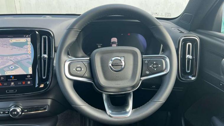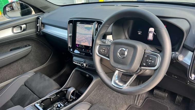 12.3" Progressive Driver Display, 9" centre console portrait touch screen, Adjustable steering wheel force, Android auto (Wired), Apple carplay (wired), Bluetooth handsfree system, Driver alert control, Driver assistance (pilot assist and adaptive cruise control), Driver awareness - Blind spot information system with steer assist, cross traffic alert with autobrake and rear collision warning and mitigation, E-call, Front and rear parking sensors, Front park assist, Google automotive services - Enabled entertainment apps, navigation with google maps, voice recognition with google assistant, Hands free power tailgate, Intelligent speed assistance, Lane keeping aid, Oncoming Lane Mitigation, Speed sensitive steering, Volvo cars services with app - Driving journal, emergency and breakdown call, engine remote start, remote door locking/unlocking and vehicle dashboard, Wireless/Inductive Mobile Phone Charging, Automatic transmission with start/stop and manual change functions, Dynamic chassis, DAB Digital radio, Steering wheel mounted remote controls, Adaptive brake lights with high level LED brake lights, Auto dimming feature for exterior door mirrors, Auto dimming interior mirror, Auto folding and heated power door mirrors, Automatic headlamp levelling, Automatic LED Headlights + Active high beam incorporating daytime running lights, Dark tinted windows - rear side windows and rear screen, Front aluminium tread plates, Front and rear electric windows, High gloss black front and rear skid plate, High gloss black front bumper deco, High gloss black front grille strikethrough and ironmark, High gloss black rear model, engine and volvo logo badges, High gloss black window trim, Home safe and approach lighting, Integrated roof rails in high gloss black, LED front fog lights, Puddle lights, Rain sensor with automatic windscreen wiper activation, Rear side wing doors, Rear wiper, Roof antenna, Roof spoiler, Visible VIN plate, 12V socket in front tunnel console and luggage compartment, 2-Zone electronic climate control with CleanZone air quality system and pollen filter, 3 seat bench in 2nd row, 3 Spoke tailored steering wheel with chrome trim, 60/40 versatile split folding rear seat, Centre console cupholders and storage, Charcoal carpet and floor mats, Charcoal headlining, Connect suede textile/microtech upholstery, Flexible load floor and grocery bag holder, Front headrests, Front seat cushion extensions, Glovebox bag hook, Heated front seats, Height adjustable passenger seat, Height/reach adjustable steering column, High gloss centre tunnel deco, High level illumination - Front door pocket, front side step (under door), tailgate, instrument panel, front door inlay, rear courtesy&reading lights, Integrated waste bin, Isofix attachments on outer rear seats, Load cover, Load protection net, Mid level illumination - Front footwell, luggage & glovebox compartment, front cabin courtesy & reading lights, illuminated vanity mirrors+ticket holder, Multi directional lumbar support for driver and passenger seat, Power driver seat with memory + exterior mirrors memory, Rear armrest with cupholders, Rear headrests, Single front passenger seat, Underfloor luggage compartment storage, Climate pack without heated front seats - XC40, 3x3 point rear seatbelts, City safety with steering support with Pedestrian + cyclist + front collision warning with full auto brake and rear auto brake, Driver and passenger airbags, Drivers knee airbag, Electronic parking brake with auto hold, First aid kit, Front and outer rear seatbelt reminder and pretensioners, Front seats SIPS airbags, Hill descent control - Off-road drive mode, Hill start assist, IC (Inflatable Curtains) - Full Length, Passenger airbag cut-off device, Power child locks on rear doors, Road sign information display, Run off Road Protection, SIPS (Side Impact Protection System), Slippery road and hazard light alert, Stability and Traction Control with Spin control, Engine Drag Control and Corner Traction Control, Tyre pressure monitoring system, Vehicle deceleration control with Anti-lock Brake System, Electronic Brake Distribution and Emergency Brake Assist, Warning triangle, WHIPS whiplash protection system - front, 2 x Key integrated remote control central locking including with deadlocking system and auto open/close windows, Anti-theft alarm including immobiliser/volume sensor + level sensor, Keyless drive includes keyless entry and keyless start, Locking wheel nuts, 20" 5 spoke high gloss black alloy wheels,