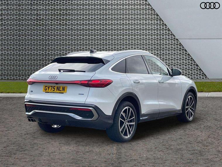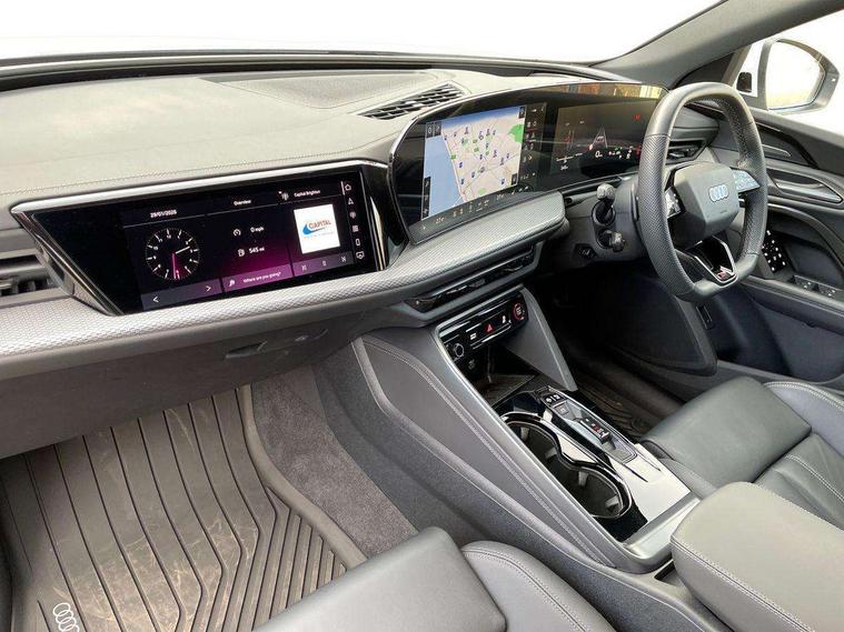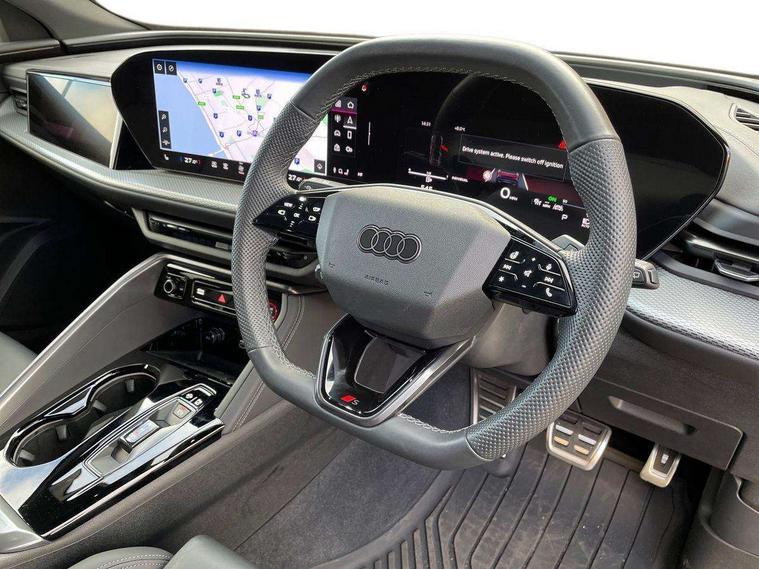 Adaptive cruise assist plus with steering intervention, Advanced driver attention alert, Audi application store, Audi connect emergency call and service, Audi digital key, Audi drive select, Audi smartphone interface, Audi virtual cockpit plus with 11.9" OLED colour display, Camera based traffic sign recognition, Fatigue monitor, Front cross traffic intersection assist, Garage door opener, Lane change assistant with exit warning system, rear cross traffic alert and rear turn assist, Lane departure warning with emergency assist, MMI 10.9" front passenger touch display, MMI navigation plus with high resolution 14.5" OLED touchscreen colour display, Park assist plus, Parking system plus with 360 display, PAS, Reversing camera, Swerve assist and turn assist, Top view camera, Traffic sign based speed limiter, Adaptive air suspension, 2 USB-C ports in both the front and rear, DAB Digital radio, Smartphone compartment with wireless charging, Acoustic glass for front door windows, Active digital light signatures - Six additional combinations of active daytime running light signature, Aluminium roof rails, Auto dimming rear view mirror, Body coloured door mirrors, Coming/leaving home lighting function, Digital OLED tail lights including communication light, Electrically adjustable heated and folding + automatically dimming exterior mirrors, Front and rear electric windows, Front door sill trims with aluminium inlays, illuminated with 'S' logo, Grill frame, inlay and front air inlets in matt anthracite chrome, Headlight cleaning system, Heated rear window, High beam assist, High gloss window surrounds, Logo projection light in exterior mirrors, Matrix LED headlights, Privacy glass, Projection third brake light for rear window in LED, Radiator grille in phantom black, Rear and side windows with heat insulating glass, Rear honeycombe grille in matt black with inlay in matt anthracite chrome, Rear side wing doors, Rear wash/wipe, S Line badge on the front wings, S line bumpers in contrasting Volcano grey metallic paint finish, Towbar preparation, Windscreen with acoustic glazing, 3 rear head restraints, 3 seat bench in 2nd row, 3 spoke leather steering wheel with multi-function buttons with touch control, flattened on top and bottom, with S badging and contrast stitching, 4 way electric lumbar support for driver and front passenger, 40:20:40 split folding rear seat bench with centre armrest and cup holders, Comfort centre armrest front, Deluxe 3 zone electronic climate control, Electric steering wheel adjustment, Electrically adjustable front seats with memory function for driver's side, Front and rear floor mats, Front sport seats with integrated head restraints, Headlining in black cloth, Heated front seats, Heated outer rear seats, Heated steering wheel, i-Size child seat mounting on the front passenger side and outer rear seats, i-Size and top tether on the outer rear seats, Interior trim in aluminium look, Luggage compartment lid, electrically opening and closing, Single front passenger seat, Softwrap in leatherette, Stainless steel pedals and footrest, Steering wheel grips in perforated leather and shift paddles, Twin leather upholstery, Ambient lighting package plus - Q5, Sound and Vision pack - Q5, Storage and luggage compartment pack - Q5, Vanadium pack - Q5, 3x3 point rear seatbelts, ABS, Acoustic vehicle alerting system, Convenience key with safelock, Driver and front passenger airbag with passenger airbag deactivation, Electric child safety locks, First aid kit with warning triangle and high visibility vests, Front emergency brake assist, Front side airbags with head airbag system and front interaction airbag, Hill hold assist, Occupant detection in rear seat area, Proactive passenger protection system for front, sides and rear, Side airbags in front and rear with head airbag system and front interaction airbag, Tyre pressure loss indicator, Anti theft alarm, Anti-theft wheel bolts, Remote control key with SAFELOCK and keyless go, Anthracite matt brushed aluminium inlays with linear embossing, Black dashboard with contrast stitching, Steel grey seat stitching, Upper and lower interior elements in artificial leather, 20" 5 twin spoke black metallic, gloss turned finish Audi Sport alloy wheels, Tyre repair kit,
