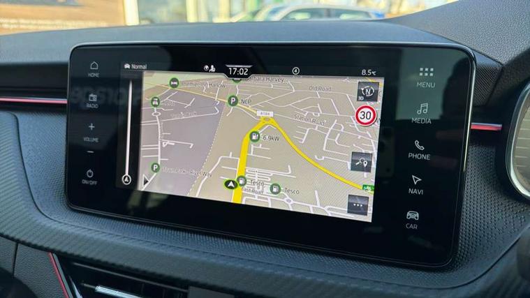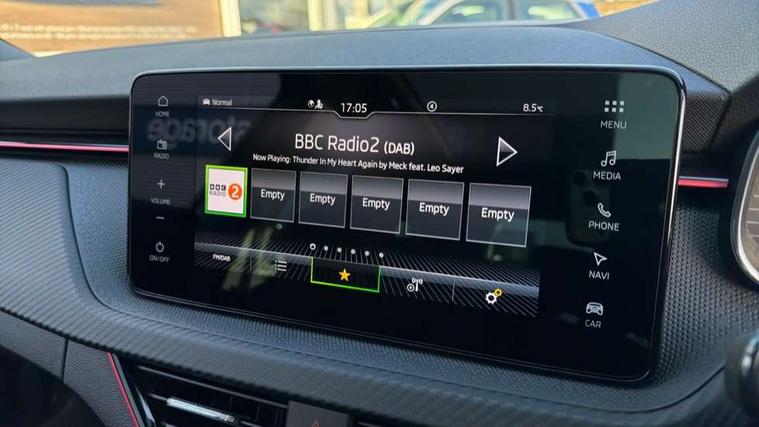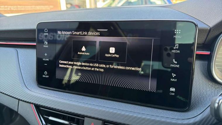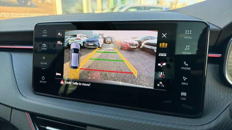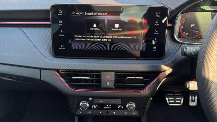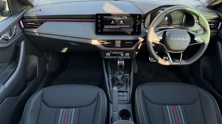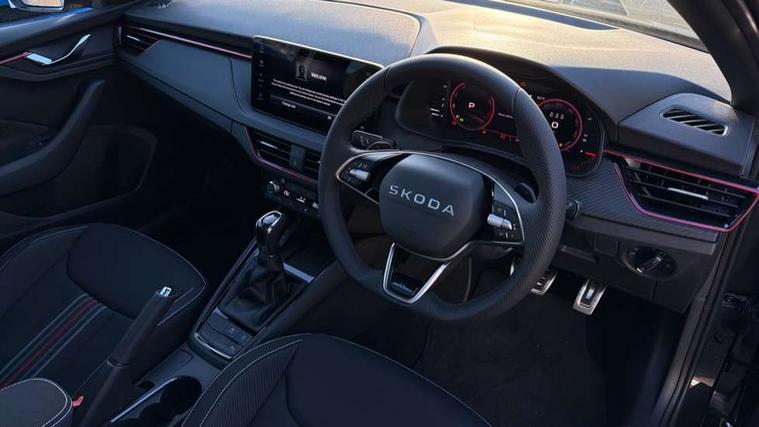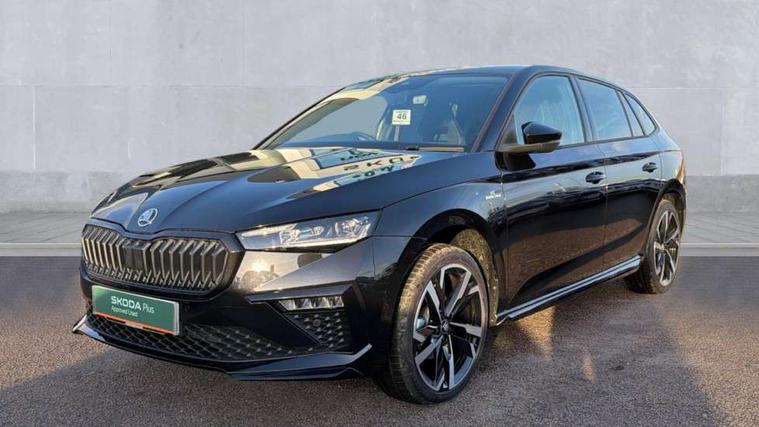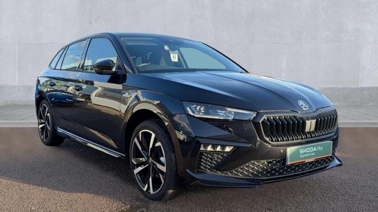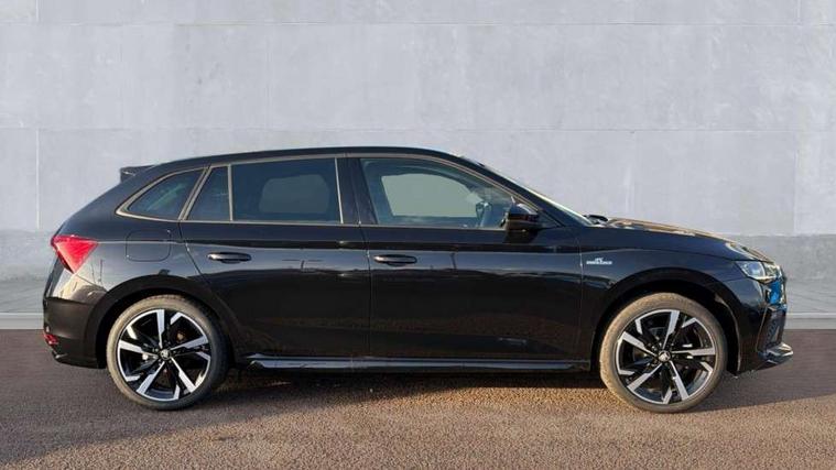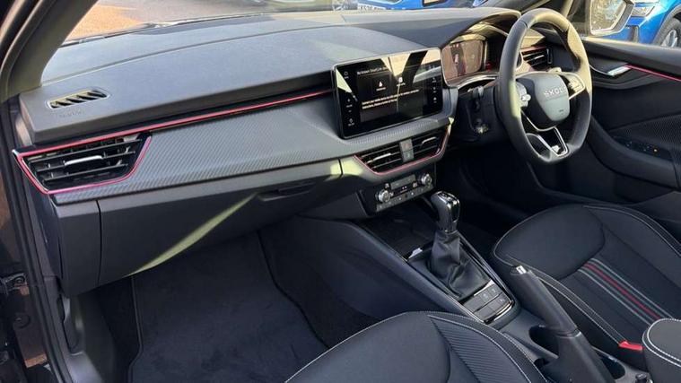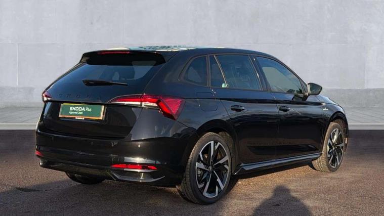 Advanced driver attention and drowsiness monitor, Bluetooth, e-Call (emergency call), Front assist system, PAS, Rear parking sensors, Rear view camera, Speed limiter, Tailgate, Traffic sign recognition, Virtual Cockpit - 10.25" digital display, Voice control system, Wireless smartlink, Drive mode select with Sport Chassis Control and ECO mode, 4 USB C ports, 8 Speakers, 9.2" Skoda navigation display, DAB radio, Auto dimming rear view mirror, Automatic headlight control with manual coming and leaving home feature, Automatic intermittent wipers, Black door mirrors, Black lettering on boot lid, Black radiator grille, Black rear diffuser, Black roof spoiler, Black window frames, Body colour bumpers, Body colour door handles, Extended tailgate glass, Front and rear electric windows, Heated rear window, LED 3rd brake light, LED daytime running lights, LED high beam, LED low beam, Light sensors, Monte carlo plaque, Panoramic glass roof, Privacy glass, Rear LED fog light, Rear side wing doors, Rear wiper, Tinted windows, Unique dark chrome design logo on alloy wheels, 12V socket in luggage compartment, 3 seat bench in 2nd row, Aluminium pedals, Ambient lighting in white/red, Black / White armrest stitching, Black roof headlining, Cargo elements, Chrome inner door handles, Door inserts in art.leather carbon, Driver and passenger sun visors with vanity mirror, Dual zone climate control, Front and rear roof lights, Front centre armrest, Front head restraints, Height adjustable driver seat, Height adjustable passenger seat, Ice scraper, Illuminated glove compartment, Inner circulation control with pollen filter, ISOFIX for front passenger seat, Isofix preparation for back seats, Leather gearknob and handbrake lever, Luggage net under rear parcel shelf, Manual lumbar support for front seats, Monte Carlo cloth upholstery, Net package and top tether hooks in boot space, Pocket on the back of both front seats, incl. mobile phone pockets, Rear centre armrest, Red hotstamping, Single front passenger seat, Skoda lettering on steering wheel, Sport seats, Textile floor mats, Third rear headrest, Ticket holder, Top tether for front passenger seat, Umbrella in driver's door, Light and view plus pack - Scala, 3x3 point rear seatbelts, ABS, Child locks, Curtain airbags and front side airbags, Disc brakes, Driver and front passenger airbags, ESP, Hill hold control, Manual leather parking brake, One tone horn, Passenger airbag switch off function, Seatbelt reminder for driver and front passenger, Tyre pressure monitoring system, Anti theft alarm system with interior monitoring, backup horn and towing protection, Anti-theft wheel bolts, Remote central locking with 2 remote folding keys, SAFE function for remote central locking, Carbon effect decorative inserts, 18" Ursa black diamond cut alloy wheels,