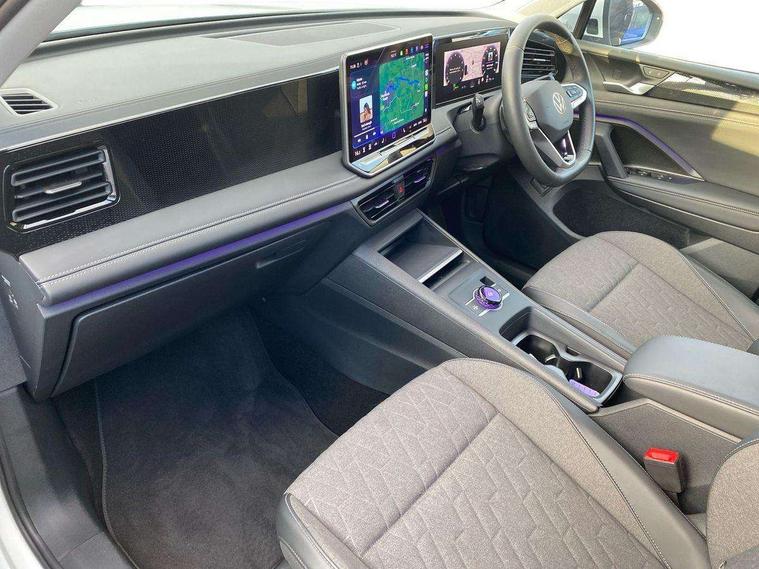 Adaptive cruise control (ACC), Advanced driver attention and drowsiness monitor, Bluetooth mobile phone interface, Car2X technology, Digital Cockpit Pro - 10.25" high resolution dash display screen with customisable menus and information, Dynamic road sign display, E-Sim card for online connectivity, eCall emergency call service, Front Assist - Autonomous emergency braking with pedestrian and cyclist monitoring, Lane change system, Side assist, Rear traffic alert and Exit warning system, Lane keeping system Lane Assist, Multifunction front facing camera, Oncoming vehicle braking when turning including swerve support, Park assistance plus with front and rear parking sensors, Power assisted steering with speed sensitive, Start/stop system with regenerative braking, Warning signal and warning light for front and rear seatbelts not fastened, Wireless App-Connect, Front wheel drive, Digital radio reception (DAB), Diversity antenna for FM reception, Ambient lighting with logo projection, Auto dimming interior rear view mirror, Automatic headlight control system, Body coloured bumpers and air intake with chrome trim, Body coloured door handles, Body-coloured exterior mirror housings, Coming/leaving home lighting function, Heat insulating glass in side and rear windows, Heat insulating windshield, Heated rear window, High level 3rd brake light, Illuminated door handle recesses, Illuminated lightline between headlamps, Rain sensor windscreen wipers, Rear fog light on one side, reversing light on both sides, Rear side wing doors, Rear wiper, 12V outlet in center console rear and in luggage compartment, 12V socket in centre console, 3 bench rear seats in 2nd row, Air care climatronic 3 zone air conditioning system with rear air conditioning control panel, Carpet mats, front and rear, Ceramique headlining, Door and side trim panel in foam film and woven fabric, Front centre armrest, ISOFIX anchors for child seats on outer rear seats and front passenger seat compatible with i-Size, Mechanical rear seat release, Power adjustable lumbar support in front, Rear bench seat, split folding, longitudinally movable and folding with load-through hatch and centre armrest, Safety optimised front head restraints, Single front passenger seat, Sun visors with illuminated vanity mirrors, Three rear head restraints, Variable luggage compartment floor, Comfort package incl. Memory feature for Park assist and Safelock - Tiguan, Design package - Tiguan, 3 point seat belt for centre rear seats, 3 Point seat belts in front with pretensioners, 3 point seatbelts in outer rear with ECE label, Driver and front passenger airbag with front passenger airbag deactivation, Electronic parking brake with auto hold, Front and rear curtain airbags, Front and rear side airbags, Front centre airbag, Front disc brakes, Hill start assist, Manual child proof rear door locks, Rear disc brakes, Two tone horn, Warning triangle, Anti theft wheel bolts, Soul instrument panel,