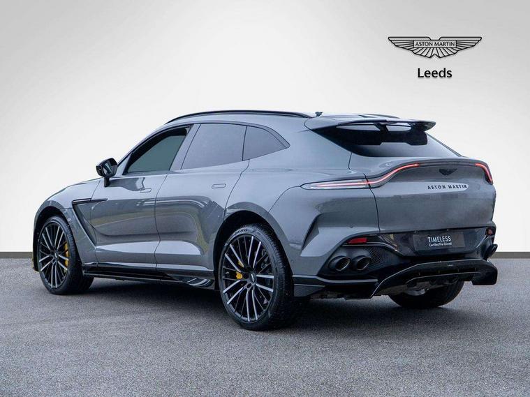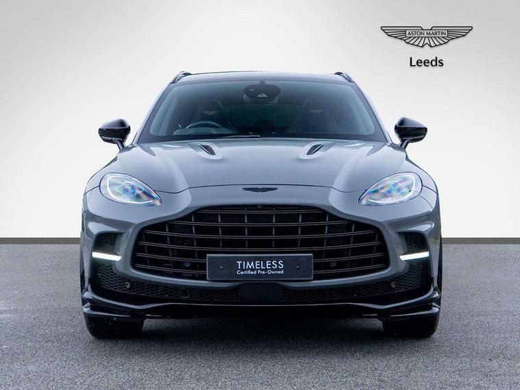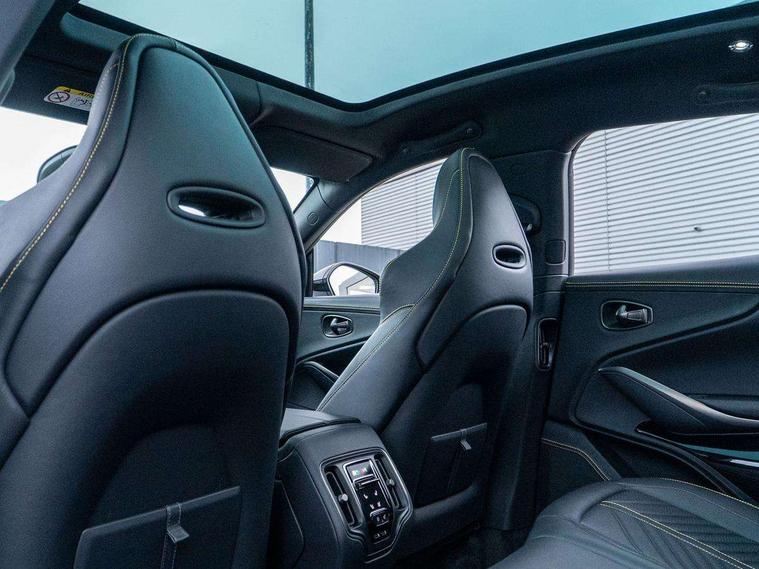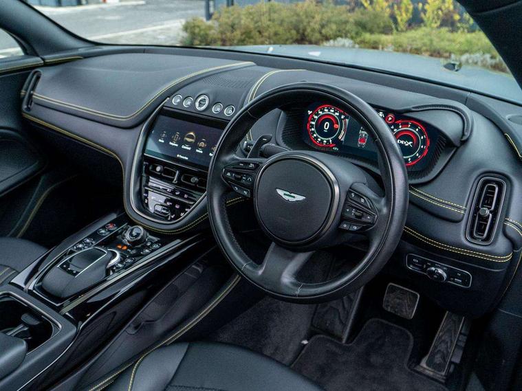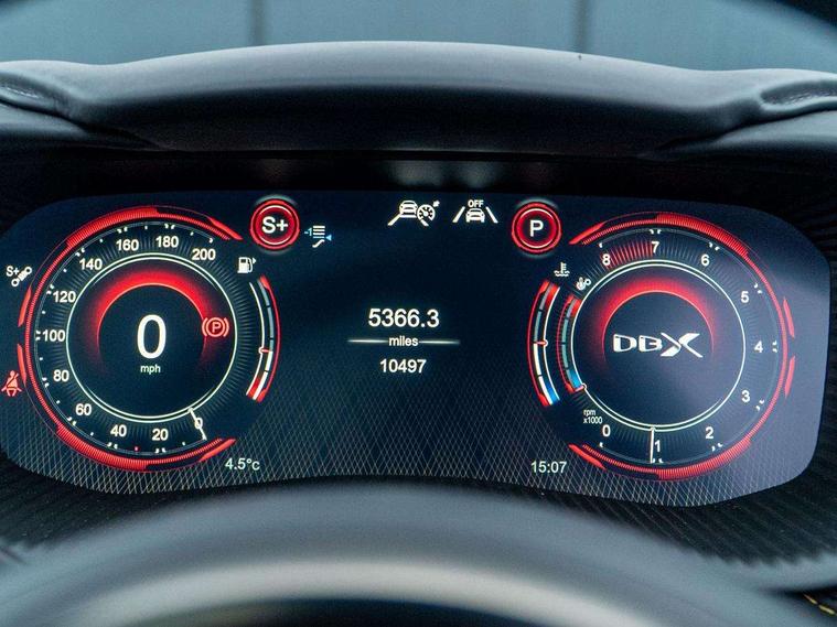 10.25" TFT centre display, 12.3" TFT instrument display, Adaptive cruise control, Apple car play/Android Auto, Aston martin satin chrome designer key, Blind spot monitoring, Bluetooth telephone connectivity, Brake pad wear indicator, Drive modes Terrain, Individual, GT, Sport, Sport + including launch control, eCall emergency call system, Electric power assisted steering (EPAS), Forward collision warning, Front parking aid with visual indicator, Inductive phone charger, Infotainment touchpad and dial, Lane change warning, Lane departure warning system (LDW), Lane keep assist, Outside temperature display, Park assist system, Rear crossing traffic warning, Rear parking aid with visual indicator, Rotary dials, Rotary infotainment system interface, Satellite navigation system, SOS emergency call button, Speed limiter, Standard underbonnet, Stop/start system, Surround camera system with deploying rear camera, Traffic sign recognition, Voice control system, 9 speed automatic transmission, Active centre transfer case, Adaptive triple chamber air suspension, All Wheel Drive (AWD), Battery conditioning connector, Electric active roll control, Electric limited slip rear differential, Electronic adaptive damping system, AM/FM radio, Aston martin premium audio, Bluetooth audio streaming, DAB Digital radio, SD card slot, USB port, 3rd brake light, Acoustic laminated front windows, Active rear brake lights, Approach Illumination, Auto dimming interior rear view mirror, Automatic headlights, Automatic high beam - AHB, Bi LED headlights, Body colour side vent, Carbon fibre rear wing lip spoiler, Electric windows, Fixed panoramic glass sunroof, Heat insulating glass, Heated rear window, Horizontal DRL/turn indicator design with larger air intakes and brake cooling grilles, LED centre high mounted stop light, LED daytime running lights, LED rear fog light, Matte black mesh bonnet vents, Power foldback door mirrors, Rain sensing windscreen wipers, Rear bumper design with integrated quarter panel vents, Rear side wing doors, Rear wiper, Sport exhaust, Standard paint protection film, 12V power sockets, 16 way electric front seats with memory, 3 seat bench in 2nd row, 40:20:40 split folding rear seats, Ambient lighting, Anodised aluminium sill plaques with aston martin wings, Automatic climate control, Black loadspace carpet, Courtesy Light, Embossed - Aston martin wings, Front and rear door pockets, Front centre console storage cover, Front head restraints, Gloss black double layer side sills, Glovebox with electric locking, Heated seats, Isofix/I size rear outer, Load rails in load space, Load tie downs in load space, Lower front console storage, Map pocket on front seat storage, Rear head restraints, Single front passenger seat, Soft close doors, Sports plus seats, Stainless steel sill protector in load space, Twin cupholders in front and rear, Twin front centre armrest, Twin sunvisors with illuminated vanity mirrors, 3x3 point rear seatbelts, Airbags - Driver and front passenger and knee, Anti theft locking wheel bolts, Anti-lock braking system (ABS), Auto vehicle hold function, Autonomous emergency braking, Carbon ceramic disc brakes, Door exit warning, EBD - Electronic brakeforce distribution, Electric parking brake (EPB), Emergency brake assist, ESC (Electronic Stability Control), Front thorax airbags/Side curtain airbags, HDC - Hill descent control, High performance braking system, Hill start assist, Intelligent wet brake control, Rear child proof door locks, Rear thorax airbags, RSC - Roll stability control, Seatbelt pre-tensioners, Seatbelt status indicator, Torque vectoring brake, Traction control, Tyre pressure monitoring system, Warning triangle, Alarm/immobiliser, Keyless entry with start/stop button, Remote central locking, Seat perforaton elegant, Seat quilting elegant,