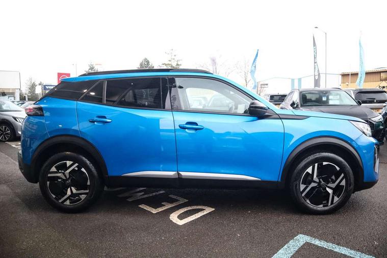 Bluetooth telephone facility, Driver attention warning, E-call, Exterior temperature indicator with ice warning, Front and rear parking sensors, Multi function trip computer, PEUGEOT i-Cockpit with 10" high definition capacitive touchscreen, PEUGEOT i-Cockpit with compact steering wheel, PEUGEOT i-Cockpit with configurable headup instrument panel, Speed limit recognition and recommendation, Wireless mirror screen with apple carplay and android auto, Petrol Particulate Filter, 1x USB-C socket in rear and 1x USB-A socket in rear, 2 USB-C ports in the front, 6 speakers radio with mp3 compatible, DAB Radio (Digital Audio Broadcasting), 2 X Rear number plate lights, Automatic hazard light activation upon heavy brake application, Black front wing trim with gloss black detail, Body coloured exterior door handles, Colour coded rear roof spoiler, Colour coded roof, Dark tinted rear side and tailgate windows, Diamond black mirror shells, Eco LED headlights, Electric, heated, and power folding door mirrors, Electrochrome rear view mirror, Front bumper - Meteor grey lower trim, Gloss black finish on B pillar, Gloss black rear cluster connecting strip, Gloss black roof bars, Headlights left on audible warning, LED daytime running lights with distinctive 3 claw signature, LED side indicator lights integrated into door mirrors, LED third brake light, Model designation badges front and rear, One touch electric front/rear windows with pinch protection, Radiator grille - Body coloured top edge trim, Radiator grille - body coloured vertical chequered grille, Rear full LED 3D peugeot signature claw effect lights with daylight function, Rear reversing lights, Rear side wing doors, Rear windscreen wiper triggered automatically in reverse gear, Tailgate with heated rear windscreen and wiper blade, Twin chromed exhaust pipes, Wheel arch extensions, 1/3 to 2/3 split folding rear seats, 12V socket, 3 seat bench in 2nd row, Automatic air conditioning with pollen and active carbon filter, Central front armrest with storage compartment, Driver and front passenger comfort seats, Driver seat manual adjustment - height, longitudinal and back rest angle, Electric power steering with reach and rake adjustable steering column, Front LED interior light with 2 reading spotlights and rear interior light with timer, Front passenger seat manual adjustment - height, longitudinal and back rest angle, High centre console, Leather steering wheel, Multifunction steering wheel, Piano keys: Gloss black and chrome toggle switches to access main functions of the vehicle and touchscreen functions, Roof lining - Mistral black, Seatbelt unfastened on the move audible and visual alert for front and rear seats, Single front passenger seat, Tri material cloth/leather effect upholstery, Two position modular boot floor, Visibility pack - 2008, 2x 2nd row ISOFIX child seat mountings, ABS (Anti-lock Braking System) with EBD (Electronic Brakeforce Distribution) and EBA (Emergency Braking Assistance), Active safety brake with night function/cyclists/pedestrians, Adaptive driver and front passenger airbags with passenger airbag deactivation function, Child locking functionality on rear doors, Driver/front passenger side airbags, Electric parking brake, ESP (Electronic Stability Program) + Hill Start Assist, Front and rear curtain airbags, Front and rear disc brakes, Front and rear three-point retractable seatbelts, with force limiters, Front optimised safety headrests and rear retractable headrests (x3), height adjustable, Tyre pressure sensor, Automatic door locking when moving off, Deadlocks, Electronic code immobiliser, Thatcham category 1 alarm, Carbon effect Dashboard, front and rear door panel finish, 17" Karakoy diamond cut alloy wheels,
