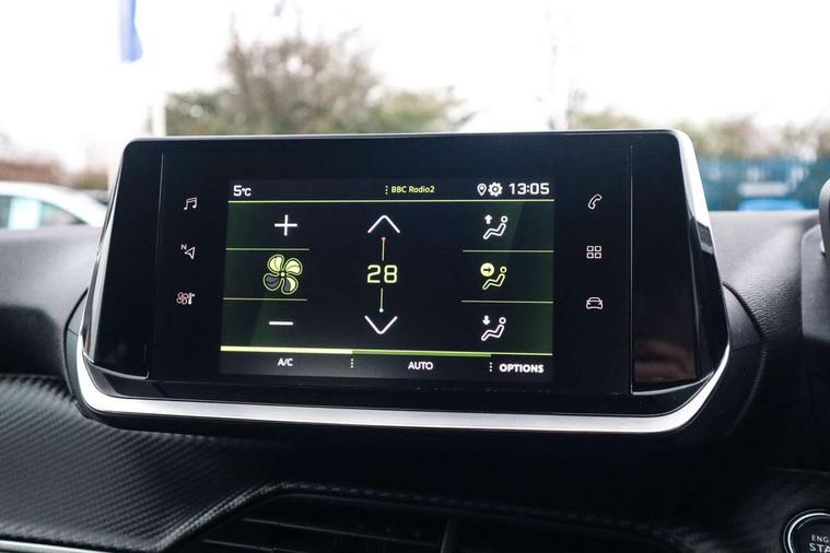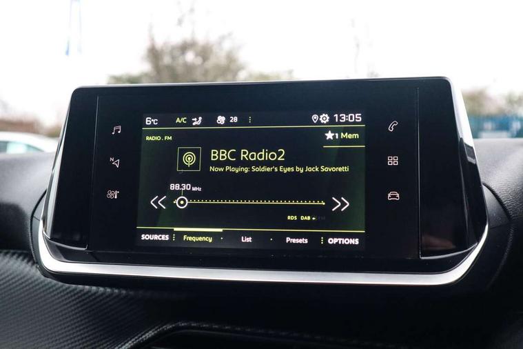 Bluetooth telephone facility, Driver attention warning, Exterior temperature indicator with ice warning, Lane keep assist, Mirror screen with mirror link, apple carplay and android auto, Multi function trip computer, PEUGEOT i-Cockpit with compact steering wheel, PEUGEOT i-Cockpit with configurable 3D headup instrument panel, PEUGEOT SOS and assistance, Push button start, Rear parking sensors, Smart phone docking station, Speed limit recognition and recommendation, Visio Park 1 with 180 degree Colour reversing camera, 2 front USB socket with USB-C, 2x USB sockets in rear, 6 speakers radio with mp3 compatible, DAB Digital radio, Voice recognition for radio, navigation and telephony features, 2 X Rear number plate lights, Automatic hazard light activation upon heavy brake application, Automatic lights, Automatic windscreen wipers, Body coloured exterior door handles, Dark tinted rear side and tailgate windows, Diamond black rear spoiler (roof), Eco LED headlights, Electric front windows + one touch + anti-pinch, Electric rear windows with one touch/anti-pinch, Electrically adjustable, heated and power folding door mirrors, Electrochrome rear view mirror, Follow me home headlights, Gloss black finish on B pillar, Gloss black rear cluster connecting strip, Gloss black window surround, Headlights left on audible warning, LED daytime running lights with 3 claw headlight with distinctive tooth design, LED side indicator lights integrated into door mirrors, Model designation badges front and rear, Nera black door mirror shells, Radiator grille chrome chequered, Rear bumper with gloss black finish, Rear full LED 3D peugeot signature claw effect lights with daylight function, Rear reversing lights, Rear windscreen wiper triggered automatically in reverse gear, Roof mounted aerial, Tailgate with heated rear windscreen and wiper blade, 1/3 to 2/3 split folding rear seats, 12V socket, Automatic air conditioning, Black rods on rear headrests, Black wheel nut covers, Driver and front passenger comfort seats, Driver and front passenger seat manual adjustment in longitudinal and back rest angle, Driver seat mechanical height adjustment, Electric power steering with reach and rake adjustable steering column, Front centre armrest with storage compartment, Front LED interior light with 2 reading spotlights and rear interior light with timer, Gear shift indicator, High centre console with 2 cup holders, Leather steering wheel, Map pockets on the backs of the front seats, Piano keys gloss black plated toggle switches to access main functions of the vehicle, Roof lining - light grey, Satin chrome gear lever, Seatbelt unfastened on the move audible and visual alert for front and rear seats, Tri material cloth/leather upholstery, 2x Isofix child seat fitting on outer rear seats, 3 rear 3 point seatbelts, ABS (Anti-lock Braking System) with EBD (Electronic Brakeforce Distribution) and EBA (Emergency Braking Assistance), Adaptive driver and front passenger airbags with passenger airbag deactivation function, Child locking functionality on rear doors, Driver/front passenger side airbags, Electric parking brake, ESP with Hill Assist, Front and rear curtain airbags, Front and rear disc brakes, Front optimised safety headrests and 3 x rear retractable headrests with height adjustable, Front three point retractable seatbelts with force limiters, Pedestrians active safety brake, Tyre pressure sensor, Acoustic vehicle alert system (AVAS), Automatic door locking when moving off, Deadlock, Electronic code immobiliser, Thatcham cat. 1 alarm with anti lift sensor, Carbon effect Dashboard, front and rear door panel finish, 16" Soho diamond cut alloy wheels, Tyre puncture repair kit,