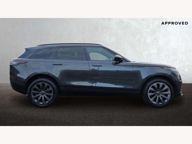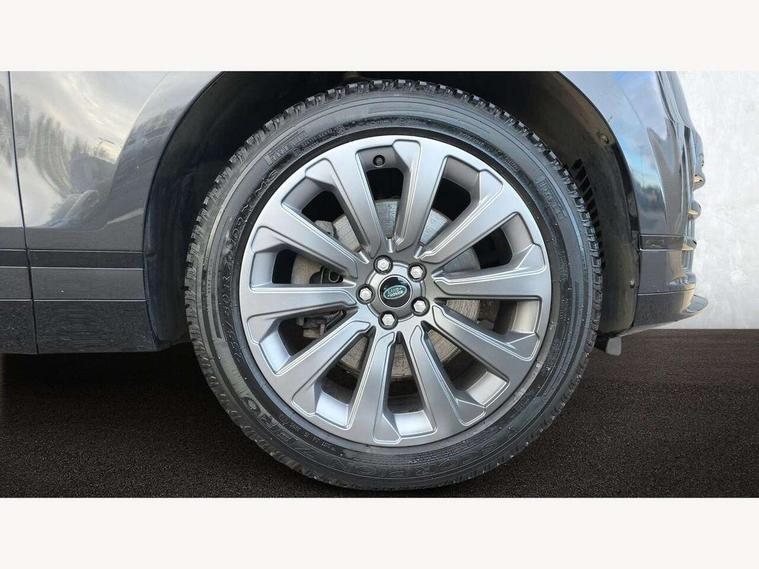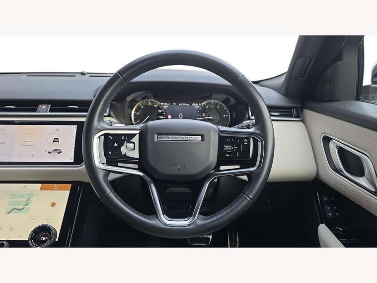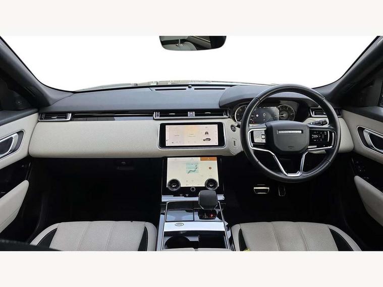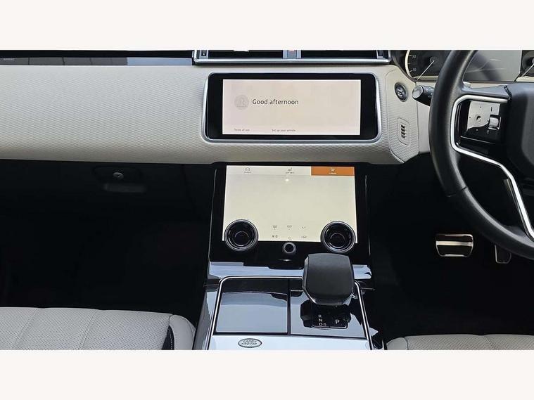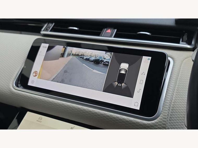 10" deployable touchscreen, Android Auto, Apple car play, Blind spot assist, Bluetooth connectivity, Brake pad wear indicator warning light, Driver condition monitor, eCall emergency call system, InControl remote, Land Rover InControl apps, Lane keep assist, Pivi pro with connected navigation, Push button start, Rear traffic monitor, Service indicator, Speed proportional electronic power assisted steering (EPAS), Traffic sign recognition with adaptive speed limiter, Trip computer, Voice control system, 8 speed automatic transmission, All terrain progress control, Open differential with torque vectoring by braking, Single speed transfer box, Digital Audio Broadcast radio-DAB, Steering wheel mounted controls, Acoustic laminated windscreen, Adaptive front lighting system, Auto dimming interior rear view mirror, Automatic headlamp levelling, Automatic headlights, Body coloured bumpers, Boot protection plate, Electric heated/power fold door mirrors with approach lights and auto dimming driver side, Electric windows with one touch open/close and anti trap, Flush deployable exterior door handles, Follow me home headlights, Heated rear window with timer, Heated washer jets, Heated windscreen, LED 3rd brake light, Metal load space scuff plates, No badge - Removes engine badge, Rain sensor windscreen wipers, Rear animated directional indicators, Rear fog lights, Rear side wing doors, Rear wash/wipe, Tailgate/boot lid spoiler, Trailer stability assist, Velar and R-dynamic badge, 3 seat bench in 2nd row, Ambient lighting, Bright metal pedals, Driver/passenger sunvisors with illuminated vanity mirrors, Isofix system on outer rear seats, Loadspace cover, Overhead lighting console, Overhead stowage for sunglasses, Passive front headrests, Rear air vents, Rear centre headrest, Satin chrome gearshift paddles, Single front passenger seat, Standard interior, Twin front cupholders, Twin sliding front centre armrest, Online pack with data plan - Velar, 355mm front brakes and 325mm rear brakes, 3x3 point rear seatbelts, Anti-lock braking system (ABS), Cornering brake control, Curtain airbags, Customer configurable autolock, Door side intrusion beams, Driver airbag, DSC - Dynamic Stability Control, Electronic brake force distribution, Electronic parking brake, Electronic traction control, Emergency brake assist, Emergency braking, Front and rear seatbelt reminder, Hill descent control, Hill launch assist, Low traction launch, Passenger airbag, Power operated child locks, Rear airbags, Roll stability control, Side airbags, Tyre pressure monitoring system, Unpainted brake calipers, Global lock and unlock switch on driver door, Immobiliser, Intrusion sensor, Keyless entry, Lock only switch on front passenger door, Locking wheel nuts, Perimetric alarm, Remote central locking,