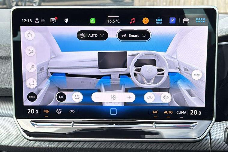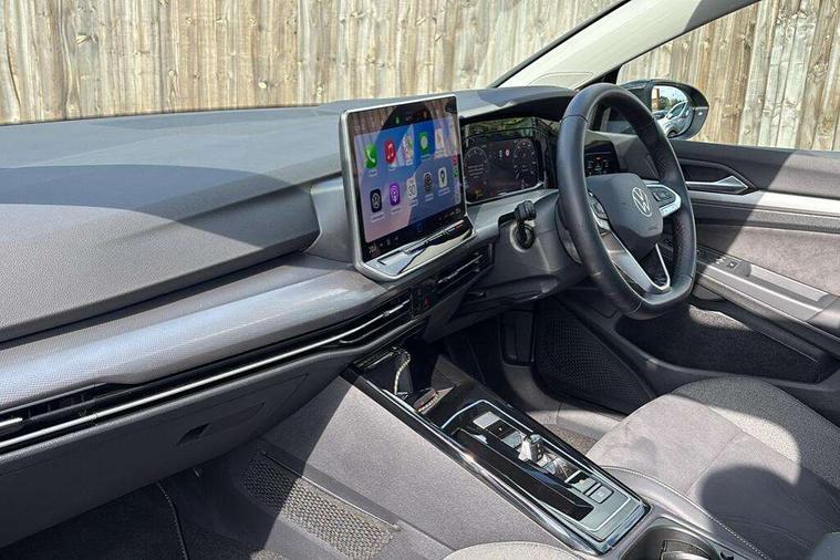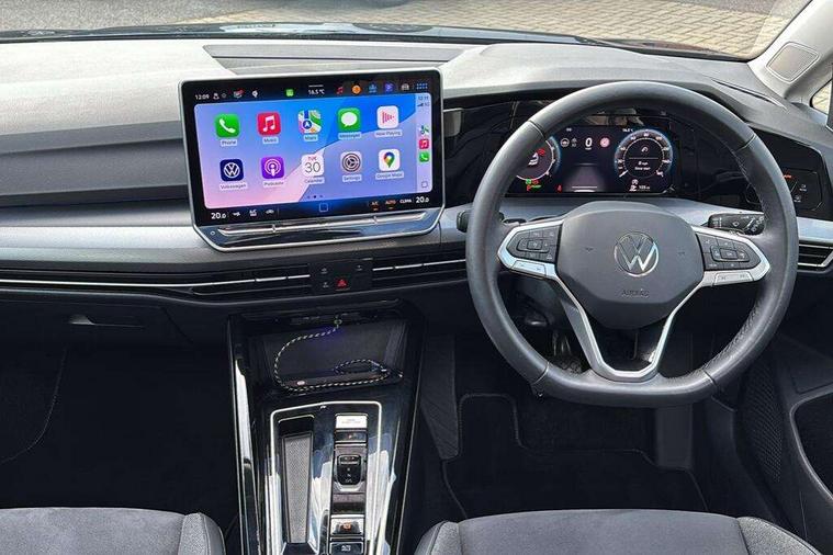 Activated carbon canister, Adaptive cruise control (ACC), Advanced driver attention and drowsiness monitor, Dynamic road sign display, E-Sim card for online connectivity, eCall emergency call system, Multi-color Digital cockpit pro, selection of different info profile possible, Multifunction front facing camera for distance control, Navigation system, Oncoming vehicle braking when turning including swerve support, Preparation for light assist system, Side assist blind spot lane change system, rear traffic alert and exit warning system, Speed limiter, Speedo, rev counter, electronic odometer, trip, service interval display, exterior temperature and fuel gauge, Traffic jam assist, Voice enhancer and voice control, Warning signal and warning light for front and rear seatbelts not fastened, We connect plus preparation, We connect preparation, Wireless app connect, Hybrid propulsion system, Petrol Particulate Filter, Start-stop system with battery regeneration (recuperation - energy recovery during braking), XDS electronic differential lock for improved traction and handling, 2 USB C ports in front, 2 USB charging sockets on the centre console in the rear charging capacity upto 45W, Comfort telephony + wireless charging, without wireless aerial connection, Digital radio reception (DAB), Diversity antenna for FM reception, Gaming platform via car app, Infotainment system with 12.9" display, Mobile phone interface with inductive charging feature, 3rd brake light, Auto dimming rear view mirror, Auto headlights, Automatic headlamp activation with Coming home and Leaving home feature, Body colour bumpers, Body colour door handles, Body colour door mirrors, Chrome trimmed front air intake surrounds, Chrome trims on the side window bottom, Exterior ambient lighting with with illuminated molding between the headlamps and door handle recess, Exterior mirrors convex on the left and aspherical on the right, Front and rear electric windows, Heat insulating windshield made of laminated glass, LED daytime running lights, Rain sensor, Rear exhaust tailpipe, Rear fog light on one side and reversing lights on both sides, Rear side wing doors, Rear windscreen washer and wiper with interval delay, Remote electrically foldable door mirrors, puddle lights and reverse activated passenger's door mirror, Welcome light with surround lighting, 12V socket in front centre console, 12V socket in luggage compartment, 3 rear head restraints, 3 seat bench in 2nd row, Air care climatronic 3 Zone automatic climate control with rear air conditioning control panel, Ambient lighting with 30 colour including LED light unit in front footwell with selectable light colour, Art velours cloth upholstery, Carpet mats, front and rear, Chrome plated radiator grille inserts, air vent surrounds and light switch surrounds, Door insert, side trim panel and arm support in leatherette, Front centre armrest, Front head restraints, Front seat lumbar support adjuster, ISOFIX anchors for child seats on outer rear bench seats and on front passanger seat compatible for i-Size, Luggage compartment lighting, Manual height adjustable front seats, Plastic gear knob, Rear cupholder and loadthough, Single front passenger seat, Soul black instrument panel, Split folding backrest with centre armrest and unsplit rear seat bench, Sports comfort seats in front, Standard pedal cluster, Storm grey roof lining, Sun visors with illuminated vanity mirrors, Driver assistance pack - Golf DSG Estate/Hatchback, 3 point height adj front seatbelts + pretensioners, 3 rear three point seatbelts, ABS, Autonomous emergency braking front assist with pedestrian and cyclist monitoring, Child locks on rear doors, Driver and front passenger airbag with front passenger airbag deactivation, Electronic parking brake with auto hold, ESC (Electronic Stability Control), Extended pedestrian protection measures, Hill start assist, Rear disc brakes, Two tone horn, Tyre pressure loss indicator, Volkswagen roadside assistance, Anti theft wheel bolts, Preparation for alcohol interlock, New brushed dark metal decorative inserts for dashboard and front door panels,