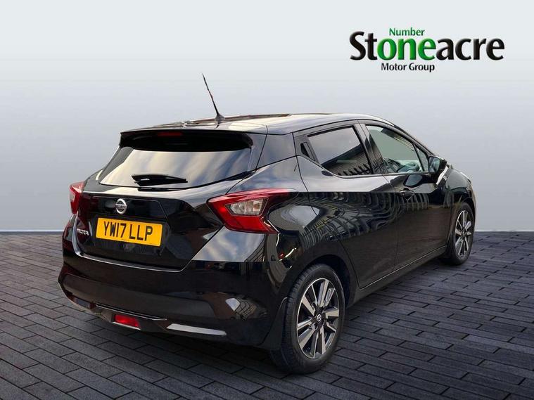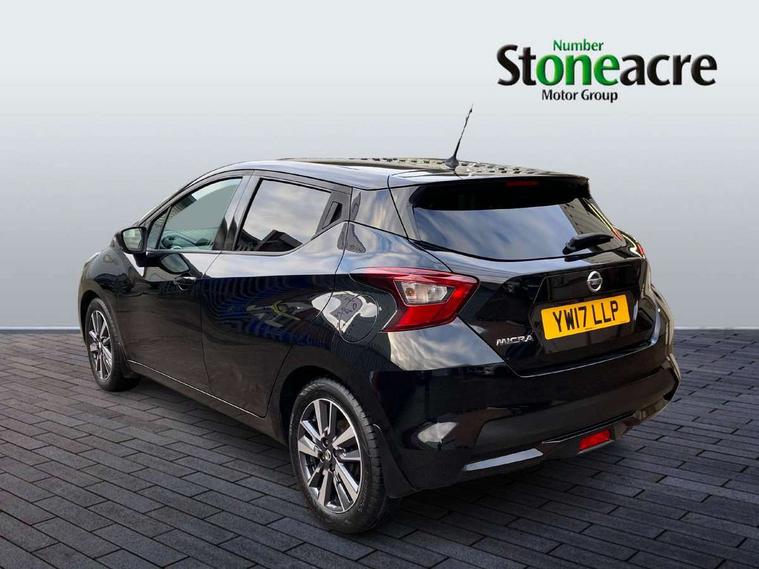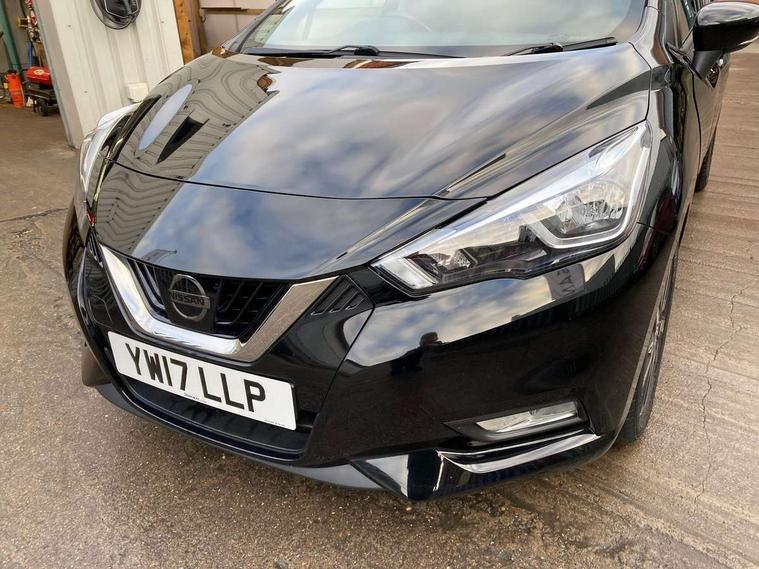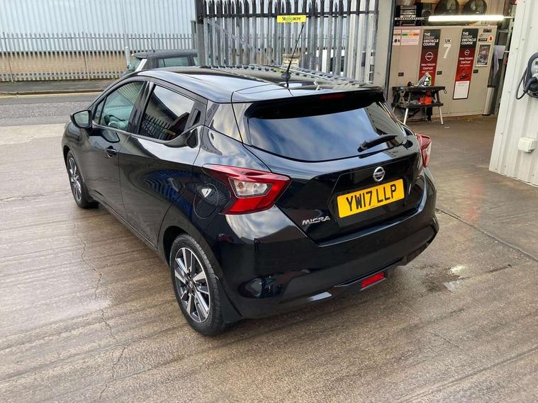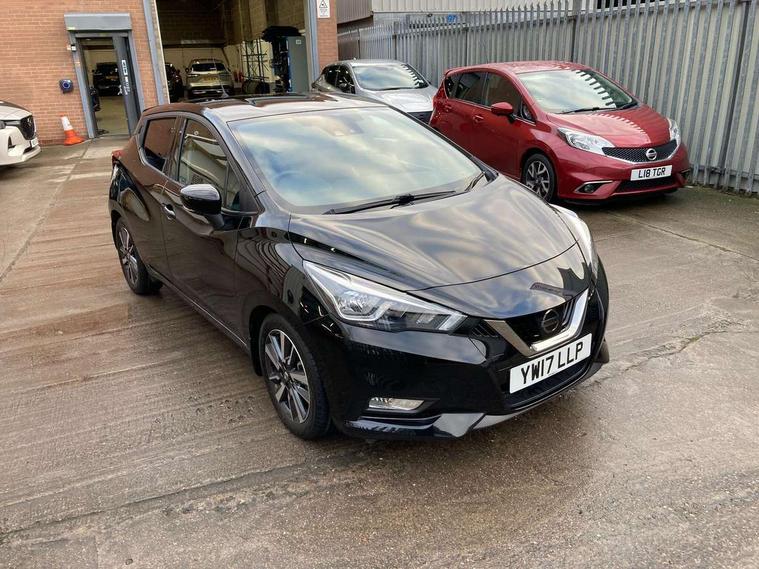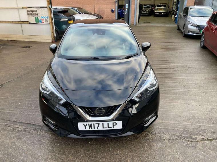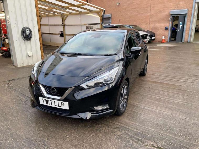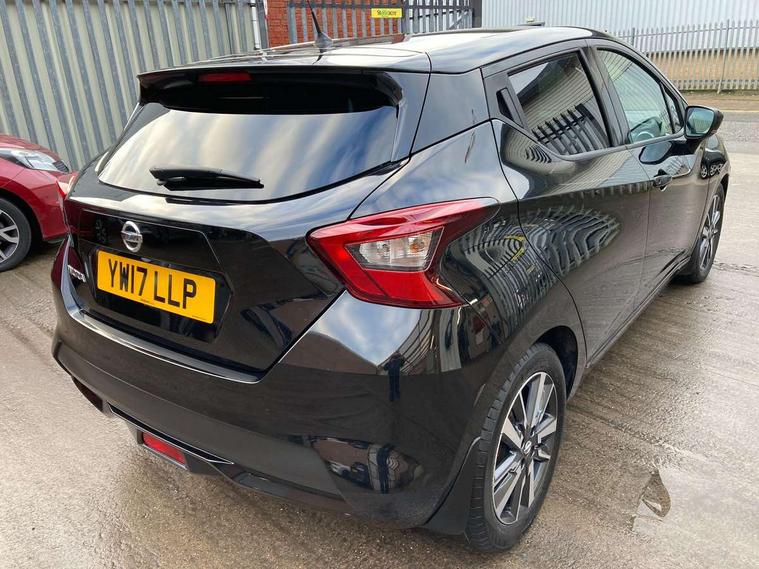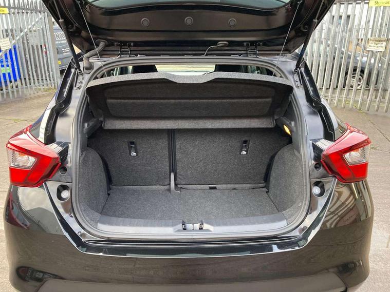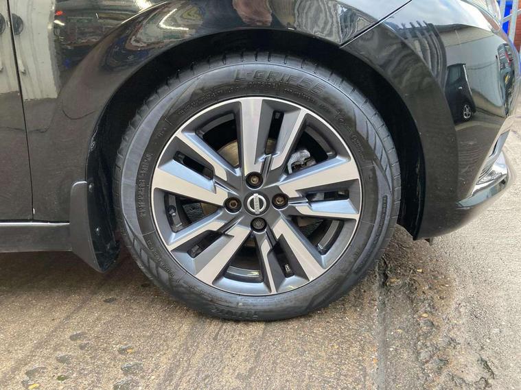 Adjustable speed limiter, Bluetooth system, Cruise control, Driver information module, Lane departure warning system, Nissan connect sat nav system, Outside temperature gauge, Traffic sign recognition, Trip computer, 4 speakers, DAB Digital radio, MP3 player, Radio/single CD player, USB/iPod connection, Automatic headlights with dusk sensor, Body coloured door handle inserts, Chrome door handles, Electric folding door mirrors, Electrically adjustable door mirrors, Front fog lights, Heated door mirrors, High beam assist, High mounted stop lamp, LED daytime running lights, LED indicators in door mirrors, Power front windows, Privacy glass, Rain sensor windscreen wipers, Rear roof spoiler, Rear wiper, 12V power point front, 2 height adjustable rear headrests, 3 cupholders, 60/40 split folding rear seat, Automatic air conditioning, Boot carpet, Boot light, Driver's seat manual height adjust, Driver/passenger sunvisors and vanity mirrors, Front and rear door pockets with bottle holders, Front console storage box, Gear shift indicator, Height adjustable front headrests, Height adjustable steering wheel, Isofix front passenger and rear seat preparation, Leather wrapped steering wheel, LED ambient lighting, Passenger seat back pocket, Satin silver air vents, ABS+EBD+Brake assist, Crash sensor, Driver/Front Passenger airbags, ESP + ASR traction control + CSV understeer control, Forward emergency braking, Front and rear curtain airbags, Front side airbags, Hill start assist, Manual passenger airbag deactivation function, Seatbelt warning, Three 3 point rear seatbelts, Tyre pressure monitoring system, Warning triangle and first aid kit, Anti-theft immobiliser, Remote central locking, 16" alloy wheels, Tyre repair kit,
