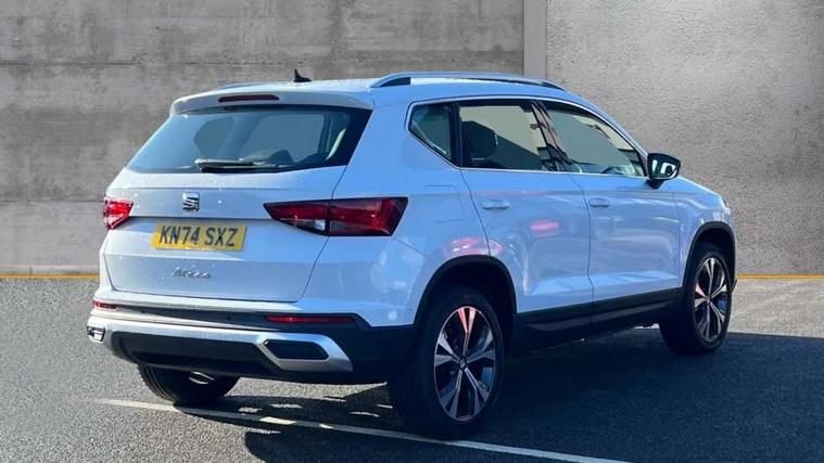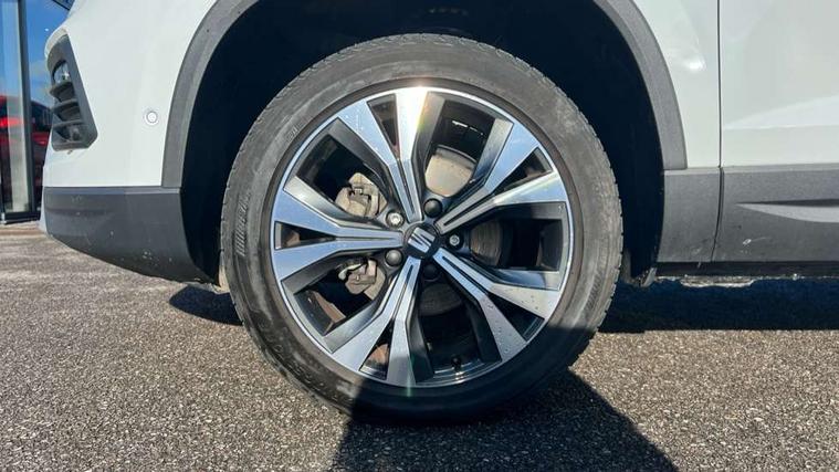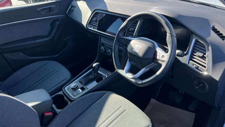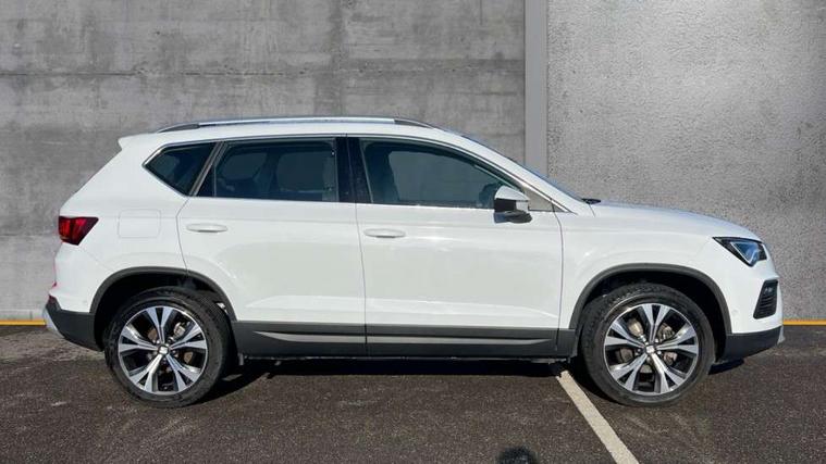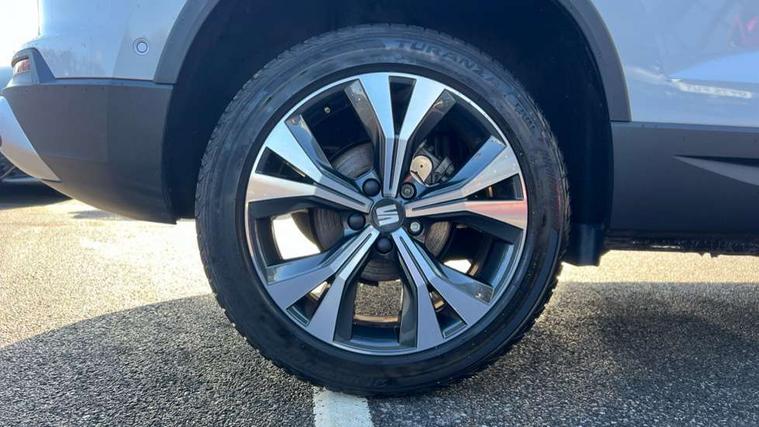 8" Digital cockpit, Colour multi-function on board computer display, Cruise control system with speed limiter, E-call, Outside temperature gauge, PAS, SEAT drive profile with driving experience button - Normal, Sport, Eco and Individual mode, gearshift, steering and throttle response, Self parking functionality (includes front and rear parking sensors), Start/stop system, Tailgate, Trip computer, wired and wireless full link smartphone integration, Wireless phone charger, Steering wheel mounted audio/phone controls, Black wheel arch surrounds, Body colour bumpers, Chrome front grille frame, Chrome roof rails, Chrome side window trim, Daytime running lights, Door mirrors with welcome light silhouette, Dynamic headlight range control with self adjusting whilst driving, Electric adjustable/heated/folding door mirrors, Front and rear electric windows, Full LED headlamps with lens and LED front fog lamps with cornering function, LED 3rd brake light, LED rear tail lights, Rear exhaust tailpipe, Rear fog lights, Rear side wing doors, Rear wash/wipe, Variable front intermittent wipers, 12V socket in front, 3 seat bench in 2nd row, 60/40 split folding rear seat, Cloth upholstery with front comfort seats, Drawer under right front seat, Dual zone climate control, Front and rear head restraints, Front centre armrest, Front seat back storage pockets, Height adjustable driver and passenger seat with lumbar adjustment, ISOFIX points in outer rear seats with top tether anchorage points, Leather sports steering wheel and gear knob, Rear armrest and easy back seat release mechanism from boot, Single front passenger seat, Steering wheel mounted gearshift paddles, Convenience pack - Ateca, Interior lighting pack - Ateca, Navigation system pack with DAB - Ateca, Safety and driving pack with attention and drowsiness assist - Ateca, 3x3 point rear seatbelts, ABS, Traction control system (TCS), Electronic stability control (ESC) and Electronic differential lock system (XDS), Airbags - Driver and front passenger airbag with deactivation, front side, two curtain and driver's knee airbags, Electric parking brake with auto hold function, Front and rear seatbelt reminder, Front assist with autonomous emergency braking, Hill hold control, Manual rear child locks, Single tone horn, Tiredness recognition system, Tyre pressure monitoring system, Alarm, Keyless entry, Locking wheel bolts, Remote central locking, Chrome interior detailing, 18" Performance machined alloy wheels 36/2 in nuclear grey,