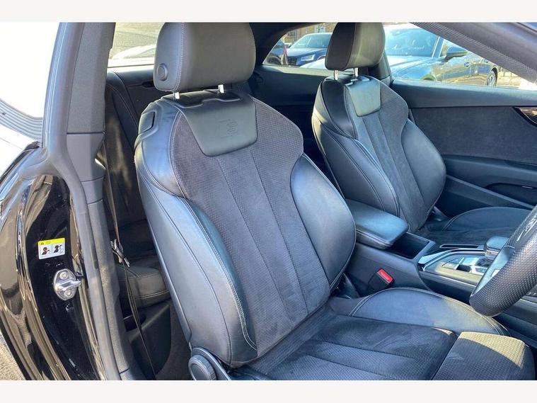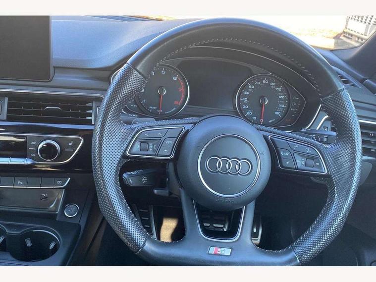 7" Colour driver information system, Audi connect, Audi drive select, Audi parking system plus with front and rear sensors, Audi smartphone interface, Automatic start-stop system with coasting functionality and efficiency programme, Bluetooth interface, Electric boot release, Electro-mechanical power steering, MMI Navigation, Service interval indicator, Voice control system, 2 x USB charging port with aux input socket, CD player, DAB Digital radio, Two SDXC card slots, Air inlets in titanium black with matt aluminium inlay, Auto dimming rear view mirror, Body colour bumpers, Chrome plated exhaust pipe, Electric adjustable heated door mirrors, Electric front windows, Front fog lights, High beam assistant, High gloss black door mirrors, Rain and light sensors, Rear diffuser in Twilight grey matt with honeycomb grille, S Line body styling, S line sill plates, S style high gloss black rear spoiler, Side and rear windows privacy glass, Titanium black frame and radiator grille, Titanium black front and rear air intakes, Titanium black window surround, Windscreen with acoustic glazing, 3 spoke flat bottom high multi-function leather steering wheel, 40/20/40 split folding 2 seater rear seat bench with rear centre armrest, Adjustable steering column, Black headlining, Black perforated leather gearknob, Centre console with cupholders, Contrast stitching on seats, steering wheel and gear lever gaiter, Deluxe 3 zone electronic climate control, Front centre armrest, Front head restraints, Front/rear floor mats, Gearshift paddles, Illuminated door sills, ISOFIX child seat mounting and top tether, Jack and tool kit, Luggage compartment mat, Rear headrests, S embossed logo on front sport seats, Stainless steel pedals and foot rest, Non Smokers pack, 6 airbags - Driver, front passenger, curtain and side airbags, Electromechanical parking brake, Electronic Stabilisation Control (ESC) including ABS, ASR and EDL, Front passenger airbag deactivation, Height adjustable front seatbelts, Hill hold function, Multi-Collision braking, Pop-up bonnet for pedestrian protection, Pre sense city, Seatbelt monitoring, Tyre pressure warning, Variable restraint system, Warning triangle and first aid kit, Anti theft alarm system, Anti theft wheel bolts, Immobiliser, Keyless Go, Remote central locking, Piano black finish inlay, 20" 5 arm rotor alloy design wheels with matt titanium finish, Tyre repair kit,