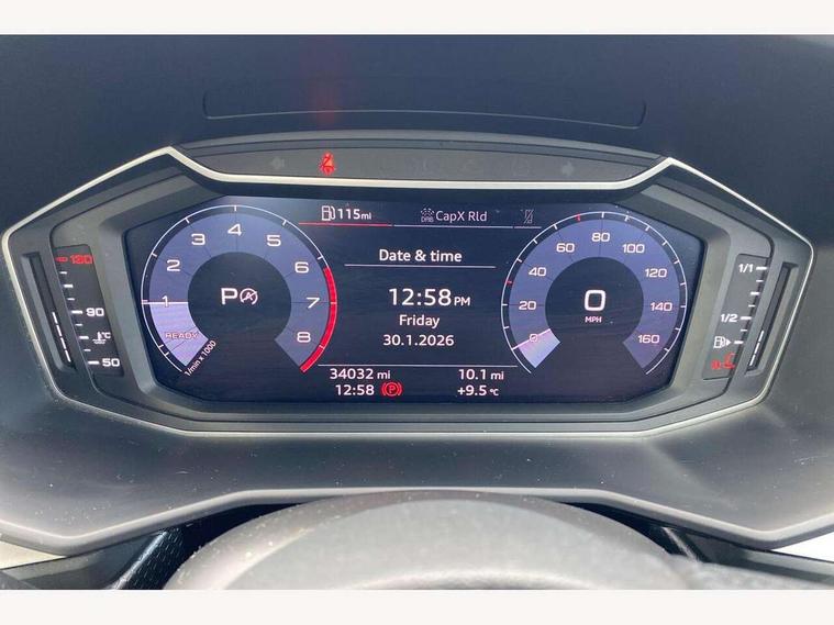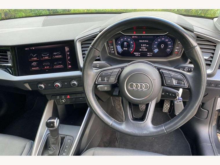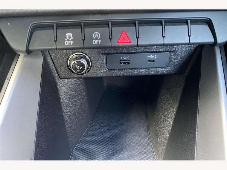 10.25" Digital instrument cluster display classis style instrument dials + speed, odometer, time, outside temperature, telephone menu + fuel level warning, Audi connect safety emergency and service including E-call, Audi smartphone interface with connect compatible smartphone via USB directly MMI display + Nav, music, third party apps controlled via MMI controller, Automatic start/stop system, Bluetooth interface, Cruise control, Driver's information system, Electromechanical power steering, Lane departure warning system, Rear parking sensor, Service interval indicator, Speed limiter, Voice control system, Washer fluid level indicator, Dynamic suspension, 1 x SDXC card reader, 1 x USB type C and 1 USB type A charging points, DAB Digital radio, MMI radio plus with 8.8" colour MMI display screen and MMI touch, Auto dimming rear view mirror, Body coloured bumpers, Body coloured door mirrors, Electric front and rear windows, Electrically adjustable, heated, folding door mirrors with integrated LED side indicator, Front side air inlets in grained matt black and C frame in titanium black, Heat insulating glass windscreen and side windows, Heated rear windscreen, LED headlights with LED rear lights + dynamic rear indicators + headlight adjustment and high beam, turning light + LED daytime running lights, Radiator grille and rear diffuser in matt titanium black, Radiator protective grille frame in matt aluminium silver, Rain and light sensors, Rear fog lights, Rear wiper, Scandium grey tailpipe trim, Side front spoiler lips in grained matt black, 12V socket in centre console with two cup holders, 3 rear seats with headrests, 40:60 Split folding rear seat or folded fully, Door sill trims with aluminium inlay, Driver and passenger seat with manual height adjust with forward and backwards adjustment, Front head restraints, Front/rear floor mats, Height and reach adjustable steering wheel, ISOFIX child seat mounting for front passenger and outer rear seats including top tether attachment point of outer rear seats, Leather gear knob with aluminium trim, Leatherette handbrake grip, Luggage compartment light with front and rear reading lights, Manually adjustable lumbar support in front seats, Novum cloth upholstery with front sport seats, Titanium grey cloth headlining, Luggage compartment pack - A1, 3x3 point rear seatbelts, Audi pre-sense front with pedestrain and cyclist recognition, Brake assist function, Driver and front passenger airbag with front side and head airbags, Electronic Stability Control including ABS, EBD, ASR and EDL, Front and rear seatbelt reminder, Front passenger airbag deactivation switch, Hill hold assist, Seatbelt height adjustment for front seats, Seatbelt monitoring, Tyre pressure warning light, Warning triangle and first aid kit, Anti theft alarm, Anti theft wheel bolts and loose wheel warning, Immobiliser, Remote central locking with 2 foldaway keys, Aluminium trim for control switches, air vents and digital instrument cluster, Silver grey accent areas including air vents, door handle recesses and centre console in diamond paint finish, Slate grey inlays polygon structure in fine paint finish,