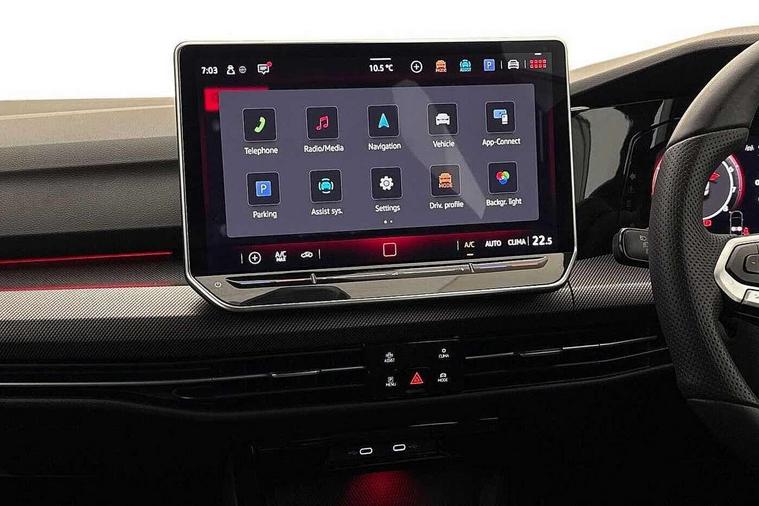 Activated carbon canister, Adaptive cruise control (ACC), Advanced driver attention and drowsiness monitor, Dynamic road sign display, Dynamic steering, E-Sim card for online connectivity, eCall emergency call system, Multi-color Digital cockpit pro, selection of different info profile possible, Multifunction front facing camera for distance control, Navigation system, Oncoming vehicle braking when turning including swerve support, Preparation for light assist system, Speed limiter, Speedo, rev counter, electronic odometer, trip, service interval display, exterior temperature and fuel gauge, Traffic jam assist, Voice enhancer and voice control, Warning signal and warning light for front and rear seatbelts not fastened, We connect plus preparation, We connect preparation, Wireless app connect, Petrol Particulate Filter, Start-stop system with battery regeneration (recuperation - energy recovery during braking), XDS electronic differential lock for improved traction and handling, 2 USB C ports in front, 2 USB charging sockets on the centre console in the rear charging capacity upto 45W, Comfort telephony + wireless charging, without wireless aerial connection, Digital radio reception (DAB), Diversity antenna for FM reception, Gaming platform via car app, Infotainment system with 12.9" display, Mobile phone interface with inductive charging feature, 3rd brake light, Auto headlights, Automatic headlamp activation with Coming home and Leaving home feature, Body colored bumpers in R-Line style, Body colour door handles, Exterior ambient lighting with illuminated door handles, Exterior mirrors convex on the left and aspherical on the right, Front and rear electric windows, Heat insulating windshield made of laminated glass, LED daytime running lights, Rear exhaust tailpipe, Rear fog light on one side and reversing lights on both sides, Rear side wing doors, Rear windscreen washer and wiper with interval delay, Remote electrically foldable door mirrors, puddle lights and reverse activated passenger's door mirror, Welcome light with surround lighting, 12V socket in front centre console, 12V socket in luggage compartment, 3 rear head restraints, 3 seat bench in 2nd row, Ambient lighting with 30 colour including LED light unit in front footwell with selectable light colour, Brushed stainless steel pedals, Carpet mats, front and rear, Chrome plated radiator grille inserts, air vent surrounds and light switch surrounds, Front centre armrest, Integrated front head restraints, ISOFIX anchors for child seats on outer rear bench seats and on front passanger seat compatible for i-Size, Leather gearshift handle, Luggage compartment lighting, Premium sports seats in front, Rear cupholder and loadthough, Single front passenger seat, Soul black instrument panel, Split folding backrest with centre armrest and unsplit rear seat bench, Storm grey roof lining, Sun visors with illuminated vanity mirrors, 3 point height adj front seatbelts + pretensioners, 3 rear three point seatbelts, ABS, Autonomous emergency braking front assist with pedestrian and cyclist monitoring, Child locks on rear doors, Driver and front passenger airbag with front passenger airbag deactivation, Electronic parking brake with auto hold, ESC (Electronic Stability Control), Extended pedestrian protection measures, Rear disc brakes, Two tone horn, Tyre pressure loss indicator, Volkswagen roadside assistance, Anti theft wheel bolts, Preparation for alcohol interlock, Decorative inserts carbon grey for dashboard and front door trim panels,