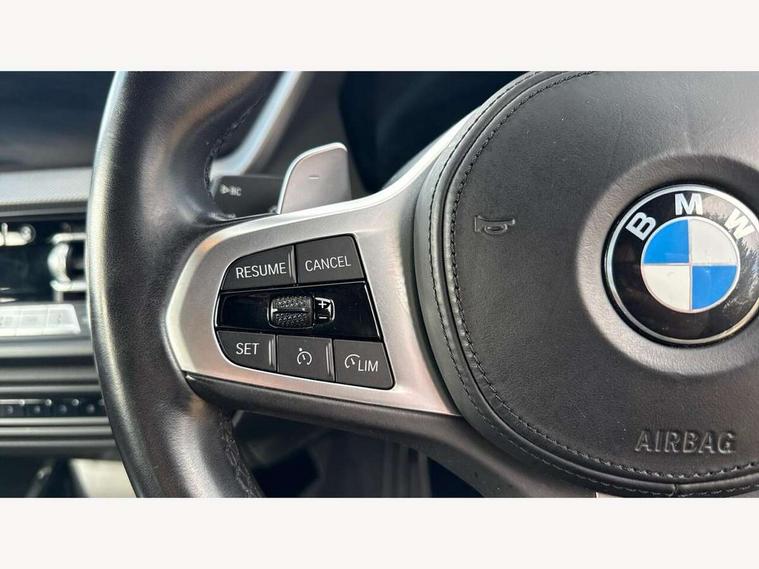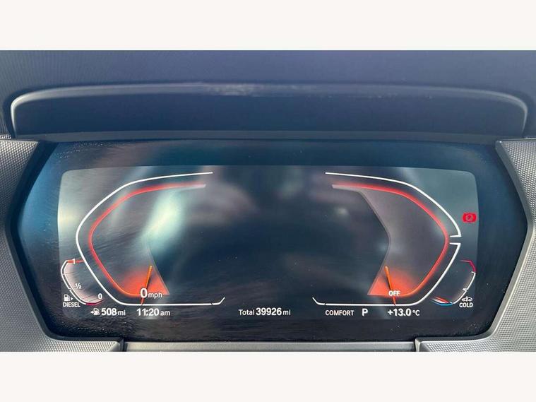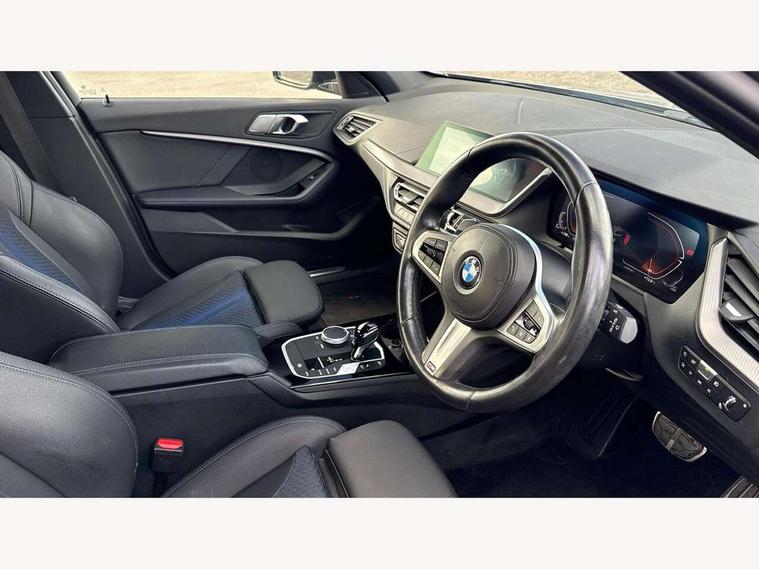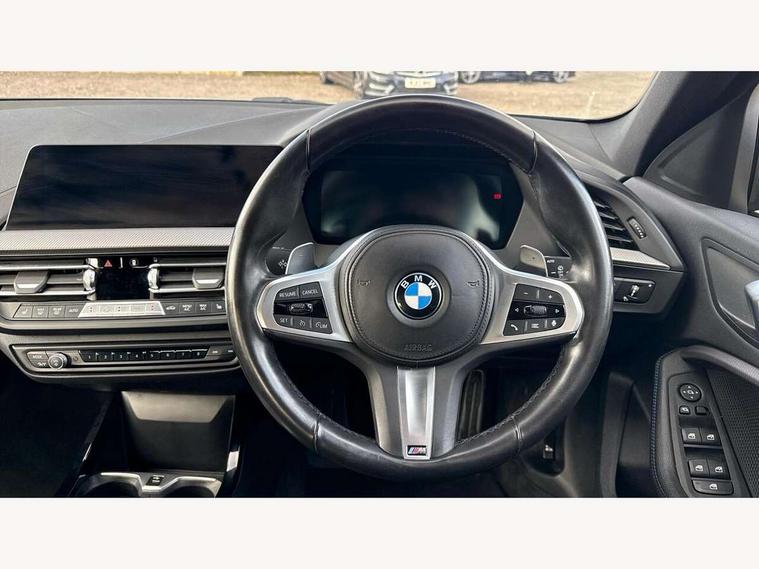 Active guard plus, Attentiveness assist, Bluetooth / WiFi interface for wireless connection of mobile terminal devices and audio streaming, BMW ConnectedDrive online services, BMW Teleservices, Characteristic map controlled oil pump system, Check Control warning system for monitoring of lights and door/luggage compartment open warning, Cruise control with brake assist, Eco pro mode, Electro hydraulically controlled multi-plate clutch transfers drive to rear axle and with power take-off device located on the front differential., Energy efficient operating strategy, Front axle single joint with specific axle kinematics to minimise drive influences on steering + provide increased rigidity agile driving behaviour, Integrated owners handbook, Lane departure warning system, Oil sensor for level and grade, On board computer, Optimum shift indicator, Personal Profile, Pull away assistant, Rigidly mounted rear subframe - Multi link construction with separate spring / damper configuration and excellent driving characteristics, Speed limit Info including no-overtaking indicator, Speed limiter, AdBlue tank, Aluminium lightweight construction, Anti roll bar front and rear, Balancer shaft, Diesel particulate filter, DOHC valve train with two overhead camshafts, Drive Performance Control, Eight speed sport automatic transmission with gearshift paddle switches, Electronic differential lock, Larger fuel tank capacity (50 litres), Single turbo charger with variable vane geometry, Twin tube gas filled shock absorbers with degressive characteristic curve, Two-stage charging, Variable, stepless and infinitely adjustable distribution of drive torque between the front and rear axles, xDrive intelligent all wheel drive, DAB Digital radio, Auto dimming rear view mirror, Automatic headlight beam throw control, Automatic windscreen wipers and automatic headlight, Body colour door handles, Body colour mirror caps, Body colour roof trims, Chrome 'M' logo side designation, Chrome exhaust twin tailpipes round 90mm in left and right split, Chrome kidney grille frame with Satin Aluminium struts, Direction indicator side lights in exterior mirrors, Fading support, Folding side mirrors with auto dimming/folding wing mirrors with auto dimming, Follow me home headlights, Front and rear bumper system with replaceable deformation elements, Front and rear electric windows with open and close fingertip control, anti trap facility and comfort closing, Front door sill finishers in black plastic with M designation in metallic look, Green tinted heat protection glazing, Heated, electrically adjustable exterior mirror aspheric on driver side, convex on passenger side, High gloss shadowline window frame, Recess cover mirror frames and B/C pillar embelisher trim, High level third brake light, Integrated front windscreen with washer jets, LED daytime running lights, LED eyebrow turn indicators, LED front fog lights, Lightweight engineering, Matt black air guide grilles, Matt black wheel arch trim, Model designation on electric bootlid includes xDrive designation for 120d xDrive, Nearside reverse light in rear light cluster, Preparation for high beam assistant, Rear fog lights, Rear side wing doors, Rear window wiper, Shark fin antenna, Trailer stabilisation logic, Visible VIN plate, Welcome lighting, 12V power socket in front centre console with blanking plug, 3 rear seat head restraints, 3 seat bench in 2nd row, 3 spoke sports leather steering wheel with black leather and stitching, pearl chrome decorative finish, specific M Badge, Ambient interior lighting, Anthracite headlining, Child seat ISOFIX attachment for two outer rear seats and front passenger seat with anchorage points, Conditioned based service, Driver and front passenger seat heating, Floor mats in anthracite velour with contrasting colour seam to match contrast stitching on instrument panel, Folding rear clothes hook, Four grab handles integrated in roof lining, Front and rear door pockets with bottle holders, Front and rear side armrest integrated into door trim, Front armrest, Front sports seats, Glove compartment, Height adjustable front head restraints, Luggage compartment for bag hooks on left and right, foldable luggage compartment liner and two lashing eyelets, Manual adjust steering wheel, Multi-function controls for steering wheel, Single front passenger seat, Storage compartment in centre console, Sun visors with vanity mirrors and insert tab, Two front centre console cupholders, Two zone automatic air conditioning, Additional interior lighting pack - 1 Series, Additional storage compartment pack with code 493 -1 series, BMW live cockpit professional pack- 1 Series, Connected pack professional - 1 Series, Interior lights pack - 1 Series, M Sport exterior styling aerodynamics pack - 1 Series, 2 tone horn, 3 point seatbelts on all seats, front pyrotechnic belt tensioners, stopper and belt force limiters, rear coded belt buckles, Airbags - Front driver/passenger, front and rear curtain head protection, front side, manual deactivation of front passenger airbag, Anti lock braking system (ABS) with brake assist, BMW emergency call, Brake drying, Braking readiness, Child proof locking system in rear door, City braking function, Comfort modes, Cornering brake control, Crash sensor activating central locking release, hazard warning lights, fuel cut off, interior lighting + activation of safety battery terminal clamp, Driver and front passenger seat belt security check, Dynamic stability control + (DSC+), Dynamic Traction Control - DTC, Electrically operated hand brake including automatic hold function, Front and rear disc brakes, Seatbelt warning, Side impact protection, Tyre pressure monitoring system, Warning triangle and first aid kit, Central locking switch for all doors, fuel filler cap and luggage compartment, Deadlocking function system to all doors, Drive away locking system on all doors and luggage compartment, Incorrect fuel protection system, Locking wheel bo