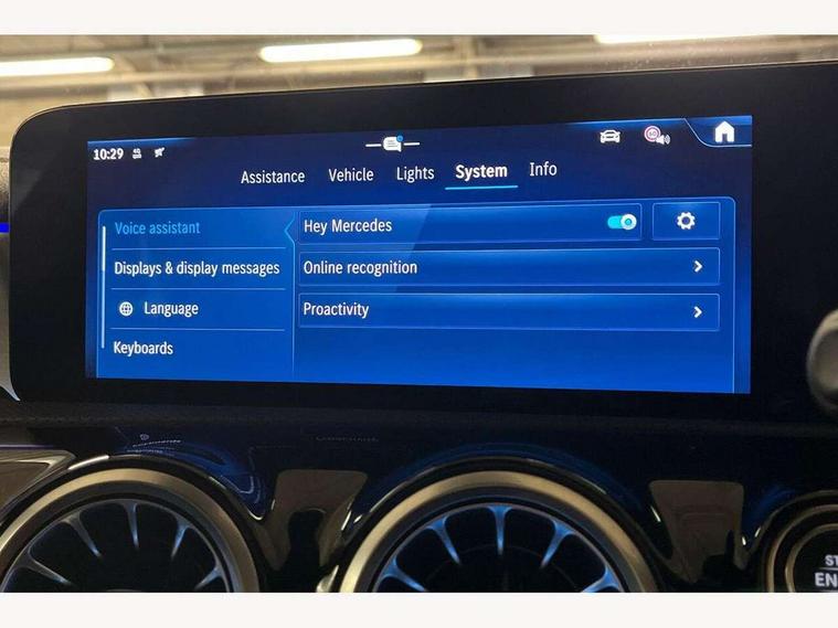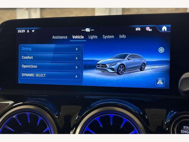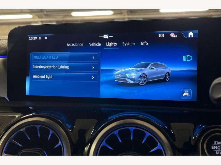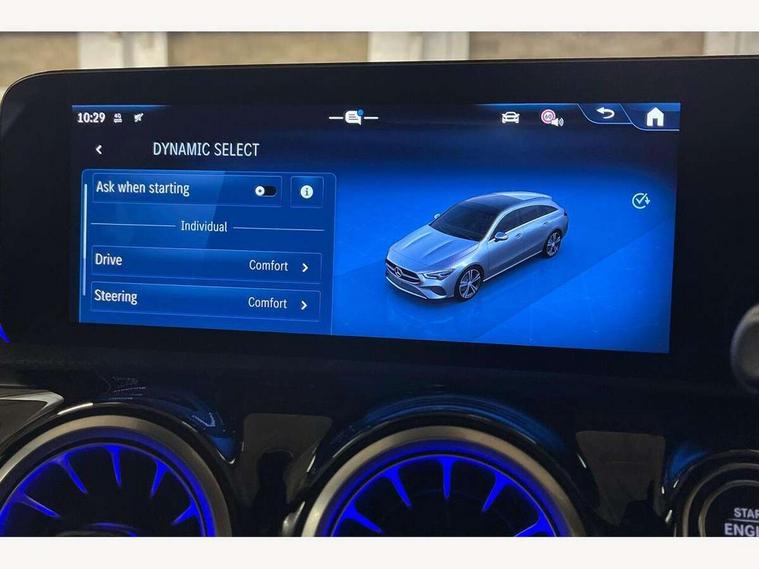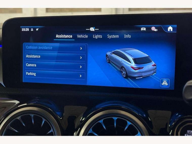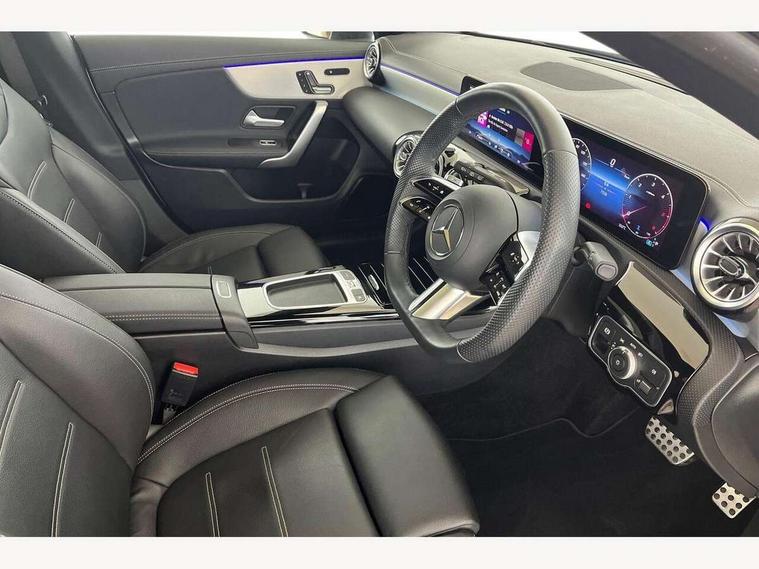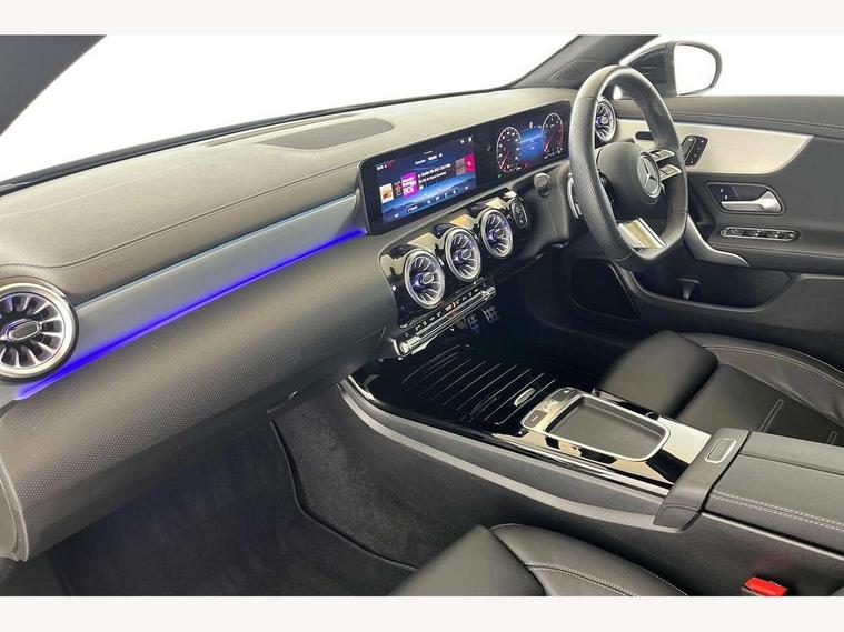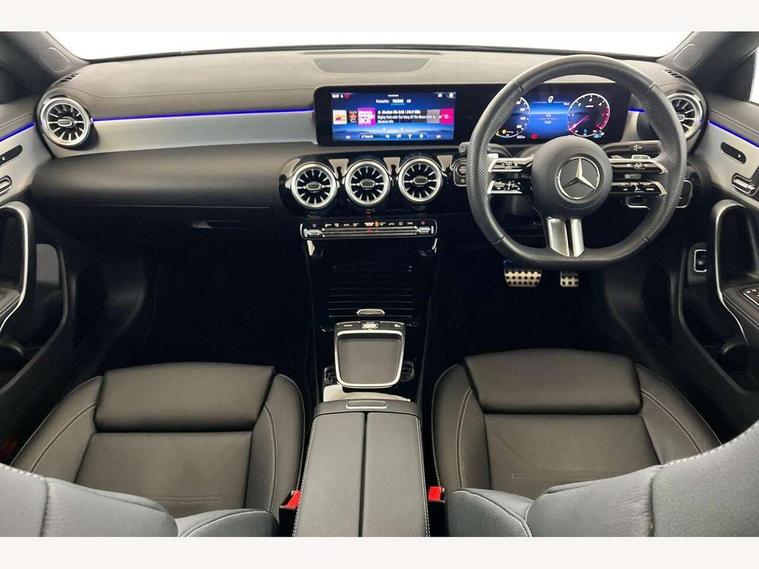 10.25 inch Instrument display with digital cockpit, 10.25 inch touchscreen central media display, Active lane keeping assist, Attention assist - Monitors steering behaviour and long journey fatigue, Bluetooth connection, Car wash mode, Cruise control with limiter, Direct steer system, DYNAMIC SELECT with a choice of driving modes (ECO, Comfort, Sport and Individual), ECO start/stop function, Fluid level warning indicator for fuel, oil, coolant and washer fluid, Hard-disk navigation, Hey Mercedes Voice activation, Lamp failure indicator, MBUX augmented reality for navigation, Mercedes me connect including emergency call system, accident recovery, breakdown and maintenance management, Mercedes me remote services, Outside temperature gauge, Owners manual in English, Pre-installation of private car share, Radio aerial integrated into front and rear windshields, Service indicator (ASSYST), Smartphone integration with Apple CarPlay and Android auto, Tailgate, Traffic sign assist, Trip computer in multifunction display with current consumption indicator, Wireless charging in the front centre console, Comfort suspension with ride height lowering, Rear axle multi-link, DAB digital radio tuner, MBUX multimedia system, Mercedes Benz advanced sound system (225 W) with 10 speakers, 1 central speaker, speakers on doors, a tweeter on door, one sub woofer + boost amplifier, Pre installation for Mercedes Benz Link, Adaptive brake lights, AMG body styling with AMG front apron and rear apron and visible exhaust tailpipe in chrome trim elements, Body colour door handles, Electric panoramic sunroof with automatic tilt and convenience closing fuinctions, rain sensor auto closing and electronic roller sunblind, Electric windows, Electrically adjustable and heated door mirrors with integrated LED indicators, Exhaust system with 2 Visible tailpipe trim elements and rear apron with trim in chrome, Hand free access, Headlamp assist automatic headlamp activation, Heated glass rear windscreen + timer control, High gloss beltline strips, High level LED third brake light, Integrated LED daytime running lights, Interior mirror with black reading lamps and frameless, LED tail lamp, Multibeam LED headlamps with adaptive highbeam assist plus, Privacy glass with dark tinting on rear side windows and rear window, Radiator grille with Mercedes-Benz pattern in chrome and central Mercedes star, single louvre in high-gloss black with chrome inserts, Rain sensing windscreen wipers with two sensitivity settings, Rear fog lamp, Rear side wing doors, Rear wiper, Variable front intermittent wipers, 3 seat bench in 2nd row, 3 twin spoke flattened multifunction steering wheel in nappa leather - horizontal twin spoke in high gloss black, vertical twin spoke in silver chrome, 40:20:40 split folding rear seat backrests, Air conditioning - Two zone thermotronic luxury automatic climate control with display, Air vents with surround in silver chrome, Automatic child seat recognition sensor, Black roof lining, Brushed stainless steel sports pedals with rubber studs, Electrically adjustable front memory seats including 4 way lumbar support, Floor mats with stitched AMG lettering, Fluorescent jacket, Front centre armrest with stowage, Galvanished gear shift paddles in silver chrome, Heated front seats, Illuminated front door sills with Mercedes Benz lettering and changeable cover, Interior lighting - 64 colour Ambient lighting, Luggage net on driver/front passenger seat backrest, Manually height and reach adjustable steering column, Rear armrest with two integral cup holders for drinks, Rear head restraints, Single front passenger seat, Sport seats with fixed head restraints, Stowage compartment in centre console with retractable cover, Sunvisors with illuminated vanity mirrors, Twin front cupholders, Two outer rear seat isofix and top tether child seat fixing points, Keyless go comfort pack - CLA with easy pack tailgate, Light and sight pack - CLA, Mirror pack - CLA, Night package - CLA, Parking pack with 360 degree camera - CLA, Seat comfort pack - CLA, USB package plus - CLA, Active bonnet pedestrain safety measure which detects an impact and raises bonnet by 65mm, Adaptive brake assist with hold function and hill start assist, Anti lock braking system (ABS) with brake assist, Black seat belts, Bonnet with power domes, Brake calipers with Mercedes-Benz lettering, Brake pad wear warning indicator, Childproof locks manually operated for rear doors and electrically operated for rear power windows, Crash responsive emergency lighting, Driver and front passenger head and sidebags, Driver and front passenger windowbags, Drivers knee airbag, Dual stage driver and front passenger airbags, Electric parking brake, Electronic stability programme with acceleration skid control, ESP curve dynamic assist, Exit warning, Front and rear seatbelt reminder, Front passenger seat occupancy sensor, Perforated front brake discs, Sports braking system, Three point rear seat belts, Tyre pressure monitoring system, Warning triangle and first aid kit, Alarm system with immobiliser and interior protection -Thatcham category 1, Guard 360 deg vehicle protection - tow away protection with visual, acoustic warning, interior monitoring, preinstallation for parking damage, Remote central locking and crash sensor with emergency opening function, Light aluminium with longitudinal grain interior trim, 19" AMG multi-spoke black painted light alloy wheels with high sheen rim finish, Summer tyres, Tirefit tyre sealant kit,