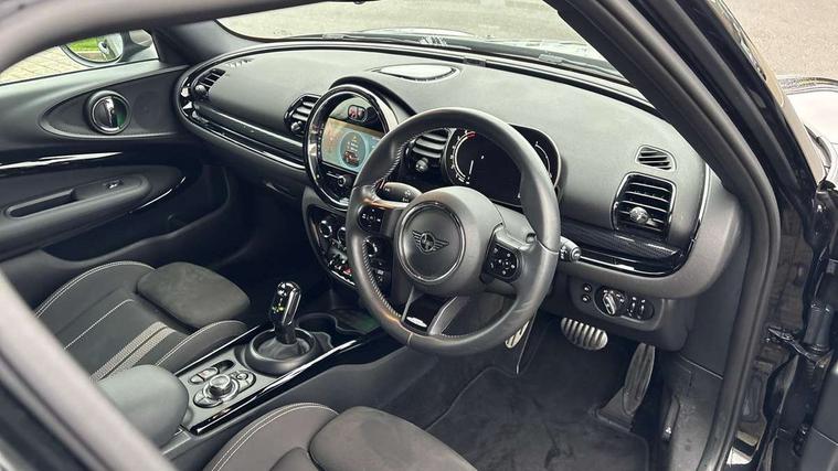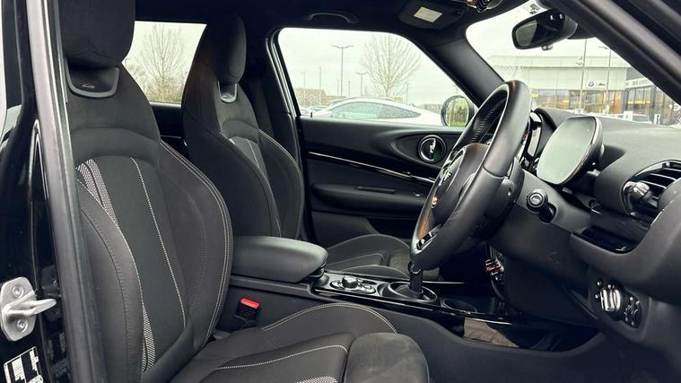 Active Guard incl speed limiting and lane departure functions with auto steering, and front collision warning with brake intervention, Automatic start/stop function with brake energy recuperation, Car sharing preparation, Compatible mobile phone bluetooth with audio streaming, Electro-mechanical speed dependant steering assistance, Instrument cluster, Mini E-call, MINI TeleServices, On board computer, Rear parking distance control, 7 Speed steptronic transmission with double clutch including electronic gear shifter, Double Vanos system, Fully variable valve control, High precision injection, Performance Control, FM tuner and DAB digital radio, A-panel shadow design with integrated scuttle trim, Body colour fuel filler cap, Door sill strips, Dynamic brake lights, Electric windows, Exhaust tailpipe, Heated rear window, Heated windscreen washer jets, John Cooper Works - aerodynamic kit (front and rear apron, spoiler), front and rear sport bumpers and part-painted side sills with door sill finishers, John Cooper Works entry sills, John Cooper Works rear spoiler, LED headlights with closed ring as daytime driving lights, LED rear light with union jack design, Left exhaust tailpipe with chrome finisher, Model logo on rear doors, Piano black exterior, Radiator grille, Rain sensor with auto headlights, Rear fog lights, Rear side wing doors, Rear window wiper, Rear wing door, Shadow design bonnet, Silver roof and mirror caps, Special metallic paint, Split rear doors, Sun/heat protection glass, Third brake light, Variable front intermittent wipers, White indicator lenses, 12V Accessory socket in centre console, 3 seat bench in 2nd row, 360L luggage compartment capacity, 4 lashing eyes in luggage compartment, 60/40 split folding rear seat, Anthracite headlining with grab handles and clothes hooks, Chrome interior highlights, Cupholders, English handbook, Floor mats, Glove compartment, Height and length steering column adjustment, Interior dashboard trim Shadow logo, Interior lighting with 12 basic colours selectable via toggle switch in roof, Interior tread plates in Shadow design, Isofix rear child seat preparation, John Cooper Works leather gearshift lever and handbrake gaiter, John Cooper Works sports seat with integrated headrest, adjustable thigh support and John Cooper Works logo, LED reading lights, vanity mirror lights, front foot well light and spotlight on front seats, Lower roof section Shadow logo, Manual air conditioning, Multifunction steering wheel, Nappa leather steering wheel with JCW badge, Single front passenger seat, Stainless steel pedals, Storage compartments in doors, Sunvisors with vanity mirrors, Toolkit, Excitement pack - Clubman, Extended interior lighting pack - Mini Clubman, Navigation pack - Clubman, 2 tone horn, 3 point seatbelts on all seats, 6 Airbags - front, side, head and seat belt tensioners, Anti-lock braking system (ABS), Child locks on rear doors, DSC - Dynamic Stability Control, Electronic handbrake, Front and rear disc brakes, Tyre pressure monitoring system, Alarm system with tilt sensor, monitoring doors, bonnet interior and tailgate, Auto drive away locking, Deadlocking function, Electronic vehicle immobiliser, Locking wheel bolts, Remote central locking, Start/stop toggle with keyless go, Piano black interior trim, 19" John Cooper Works circuit spoke alloy wheels, Tyre repair kit,