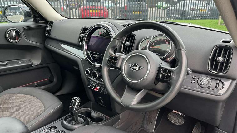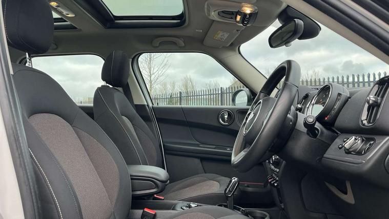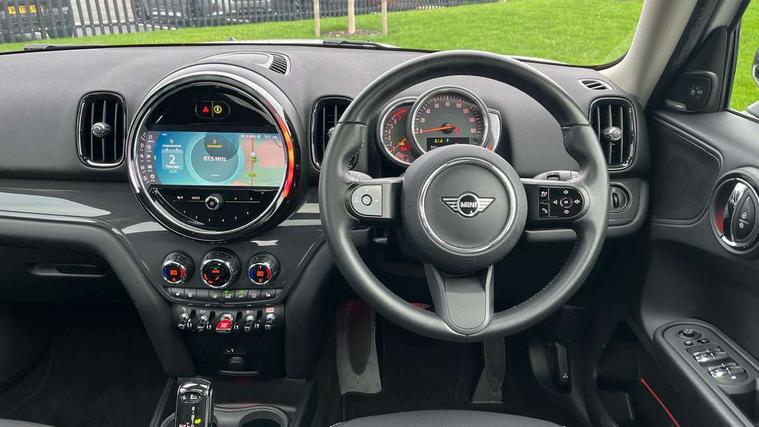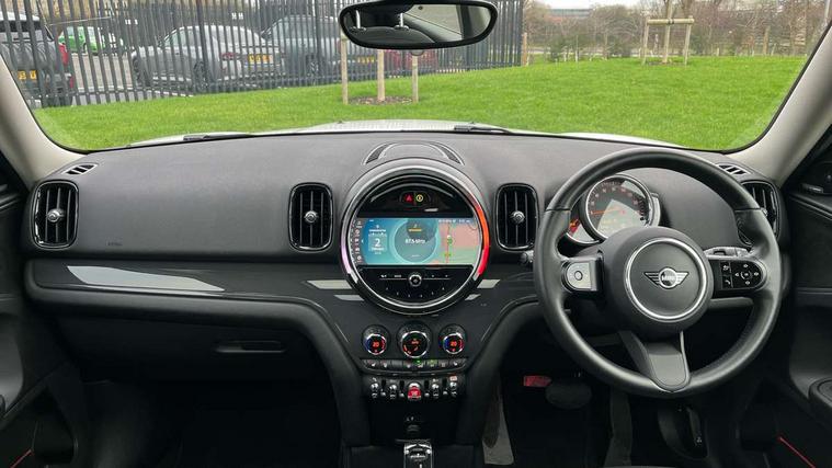 Active Guard incl speed limiting and lane departure functions with auto steering, and front collision warning with brake intervention, Automatic start/stop function with brake energy recuperation, Compatible mobile phone bluetooth with audio streaming, Cruise control with brake assist, Electro-mechanical speed dependant steering assistance, Instrument cluster, Mini E-call, On board computer, Rear parking distance control, 51 Litre fuel tank, Double Vanos system, Fully variable valve control, High precision injection, Performance Control, Steptronic transmission with double clutch, FM tuner and DAB digital radio, 3rd brake light, Body colour fuel filler cap, Day time driving lights, Door sill strips, Dynamic brake lights, Electric windows, Heated rear window, Heated windscreen washer jets, LED fog lights, LED Headlights, Left exhaust tailpipe with chrome finisher, Model logo, Model logo on Tailgate, Radiator grille, Rain sensor with auto headlights, Rear fog lights, Rear side wing doors, Rear window wiper, Side scuttle panel with integrated indicator, Split rear doors, Sun/heat protection glass, White indicator lenses, 12V socket in centre console, 3 seat bench in 2nd row, 3 spoke sport leather steering wheel + limiter function and audio controls, 360L luggage compartment capacity, 4 lashing eyes in luggage compartment, 40:20:40 split folding rear seats, Chrome interior highlights, Colour line - Carbon black, Cupholders, English handbook, Floor mats, Front headrests, Glove compartment, Headliner with grab handles and clothes hooks, Height and length steering column adjustment, Interior lighting with 12 basic colours selectable via toggle switch in roof, Isofix rear child seat preparation, Leather gearshift lever and handbrake gaiters, LED reading lights, vanity mirror lights, front foot well light and spotlight on front seats, Manual air conditioning, Mechanical seat adjustment, driver seat height adjust, forward/back and front seats backrest, Multifunction steering wheel, Passenger seat height adjuster, Rear headrests, Single front passenger seat, Storage compartments in doors, Sunvisors with vanity mirrors, Excitement pack - Countryman, Navigation pack - Countryman, 2 tone horn, 3 point seatbelts on all seats, 6 Airbags - front, side, head and seat belt tensioners, Anti-lock braking system (ABS), DSC - Dynamic Stability Control, Electronic handbrake, Front and rear disc brakes, Hill start assist, Manual rear child locks, Tyre pressure monitoring system, Alarm system with tilt sensor, monitoring doors, bonnet interior and tailgate, Auto drive away locking, Deadlocking function, Electronic vehicle immobiliser, Locking wheel bolts, Start/stop toggle with keyless go, Tool kit,