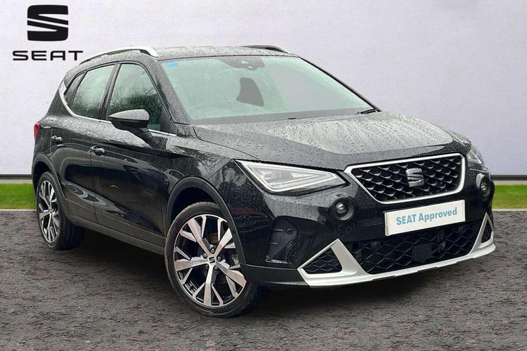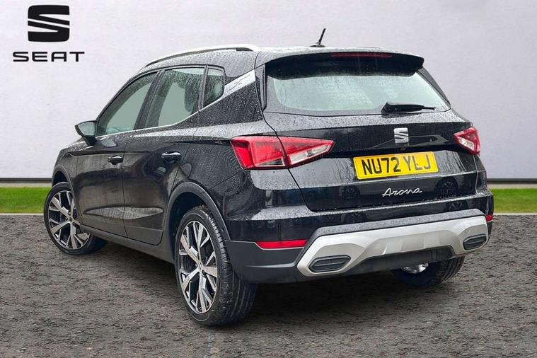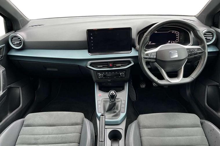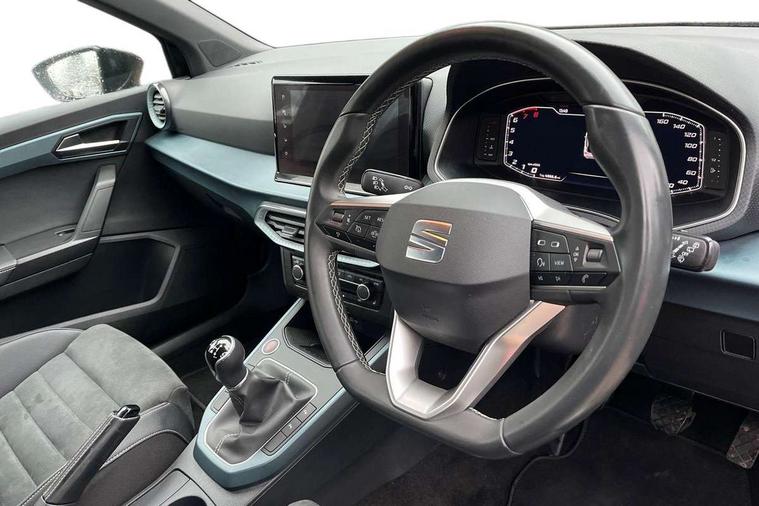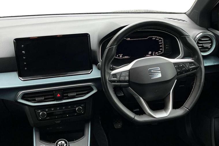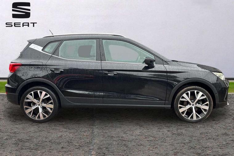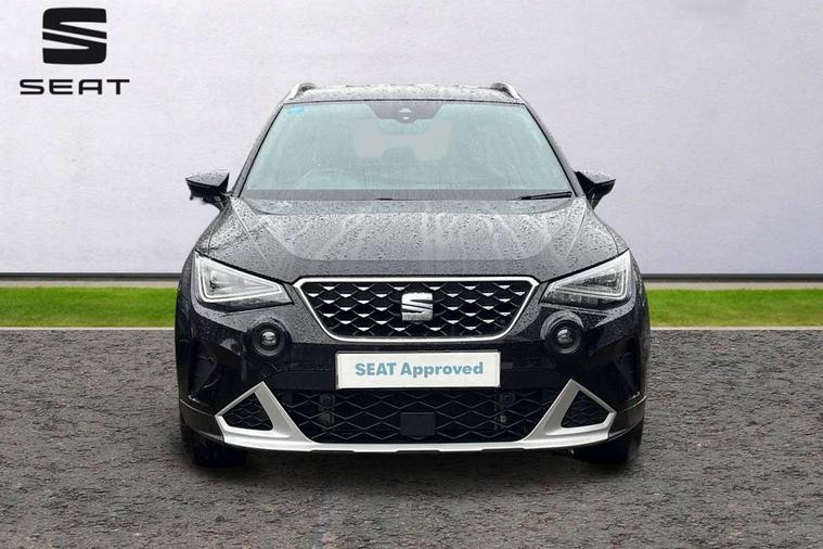 'Lights On' Reminder warning buzzer, 10" Digital cockpit, Digital clock, E-call, Electric speed sensitive power steering, Front parking sensor, Full Link Smartphone Integration with Mirror Link, Apple Car Play, Google Android Auto with USB Type C cable for Apple and Android compatibility, Low fuel warning light, Outside temperature display, Park assist system, Rear parking sensor, Rear view camera, RPM counter, Seat connect with safety, service, remote and online, Trip computer, Wireless phone charger, 9.2" colour touchscreen with navigation system, voice control and USB port (type c), Bluetooth interface for hands free and audio streaming, DAB digital radio and AM/FM radio, Steering wheel mounted audio controls, Anti theft roof antenna, Auto dimming interior rear view mirror, Automatic activation of hazard warning lights, Body coloured bumpers, Body coloured door handle inserts, Chrome roof rails and window surrounds, Electric front/rear windows, Electrically adjustable, heated and folding door mirrors, Front fog lights with cornering function and rear fog light, FULL LED automatic headlights with dynamic headlight range control, coming and leaving home, LED daytime running lights, Hidden exhaust pipe, LED rear tail lights and licence plate lights, Protective side mouldings, Rain sensing wipers, Rear side wing doors, Rear spoiler, Rear window wash/wipe, Roof colour door mirrors, Third brake light, Visible VIN plate, Windshield wiper with intermittent control and potentiometer, 2 cupholders, 3 seat bench in 2nd row, 60/40 split folding rear seat, Aircare filter, Black interior roof, Double boot floor, Driver sunvisor with covered mirror + card holder, Dual zone climate control, Flat bottomed leather steering wheel/gear knob/handbrake, Front comfort seats, Front courtesy light with 2x front and 2x rear reading lights, Front seat back storage pockets, Gear shift indicator, Heated front seats, Height adjustable front seats, Height/reach adjustable steering column, Illuminated boot, Instrument lighting with brightness control, Interior ambient lighting, Interior light in footwell, central console and door panel, ISOFIX points in outer rear seats with top tether anchorage points, Leather steering wheel/gear knob/handbrake, Microsuede cloth upholstery, Passenger sunvisor with vanity mirror, Single front passenger seat, Storage net on centre console, Two front and three rear height adjustable headrests, Interior chrome pack - Arona, Storage pack - Arona, 3 point seatbelts on all rear seats, ABS, Active front headrests, Child locks on rear doors, Driver and front passenger airbags with front passenger airbag de activation, front side and curtain airbags, Electronic stability control, Emergency Brake Assist (EBA) and front assist, Front and rear seatbelt reminder, Hill hold control, Multi-Collision braking, Tiredness recognition system, Traction control, Tyre pressure monitoring system, Alarm with back-up horn, Electronic engine immobiliser, KESSY Keyless entry and go, Locking wheel bolts, Remote central locking + deadlocks, Tow away protection, Titan black dashboard, 18" Performance Nuclear grey alloy wheels,