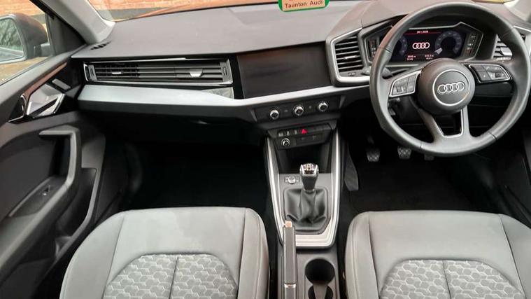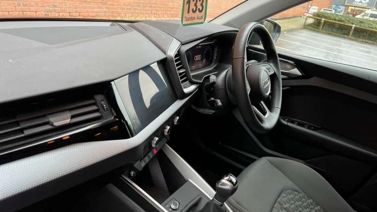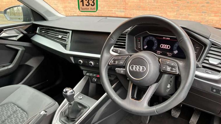 10.25" Digital instrument cluster display classis style instrument dials + speed, odometer, time, outside temperature, telephone menu + fuel level warning, Audi drive select - power steering assistance + engine, Audi smartphone interface with connect compatible smartphone via USB directly MMI display + Nav, music, third party apps controlled via MMI controller, Automatic start/stop system, Bluetooth interface, Cruise control, Driver's information system, Electromechanical power steering, Emergency e-call, Lane departure warning system, Rear parking sensor, Service interval indicator, Speed limiter, Voice control system, Washer fluid level indicator, Dynamic suspension, 2 x USB type C connection points, 6 passive loudspeakers, DAB Digital radio, MMI radio plus with 10.1" colour MMI display screen and MMI touch, Auto dimming rear view mirror, Body coloured bumpers, Body coloured door mirrors, Electric front and rear windows, Electrically adjustable, heated, folding door mirrors with integrated LED side indicator, Front side air inlets in grained matt black and C frame in anthracite black, Heat insulating glass windscreen and side windows, Heated rear windscreen, High level LED brake light, LED headlights with LED rear lights + dynamic rear indicators + headlight adjustment and high beam, turning light + LED daytime running lights, Radiator grille and rear diffuser in matt anthracite black, Radiator protective grille frame in matt aluminium silver, Rain and light sensors, Rear fog lights, Rear side wing doors, Rear wiper, Side front spoiler lips in grained matt black, 12V socket in centre console with two cup holders, 3 rear seats with headrests, 3 seat bench in 2nd row, 3 spoke leather multifunction plus steering wheel, 40:60 Split folding rear seat or folded fully, Black front and rear floor mats, Door sill trims with aluminium inlay, Driver and passenger seat with manual height adjust with forward and backwards adjustment, Front head restraints, Front passenger seat, Grey cloth headlining, Height and reach adjustable steering wheel, ISOFIX child seat mounting for front passenger and outer rear seats including top tether attachment point of outer rear seats, Leather gear knob with aluminium trim, Leatherette handbrake grip, Luggage compartment light with front and rear reading lights, Manual air conditioning, Manually adjustable lumbar support in front seats, Novum cloth upholstery with front sport seats, Luggage compartment pack - A1, 3x3 point rear seatbelts, Audi pre-sense front with pedestrain and cyclist recognition, Brake assist function, Driver and front passenger airbag with front side and head airbags, Electronic Stability Control including ABS, EBD, ASR and EDL, Front passenger airbag deactivation switch, Hill hold assist, Manual rear child locks, Seatbelt height adjustment for front seats, Seatbelt monitoring, Tyre pressure warning light, Warning triangle and first aid kit, Anti theft alarm, Anti theft wheel bolts and loose wheel warning, Immobiliser, Remote central locking with 2 foldaway keys, Aluminium trim for control switches, air vents and digital instrument cluster, Black dashboard, Silver grey accent areas including air vents, door handle recesses and centre console in diamond paint finish, Slate grey inlays polygon structure in fine paint finish,