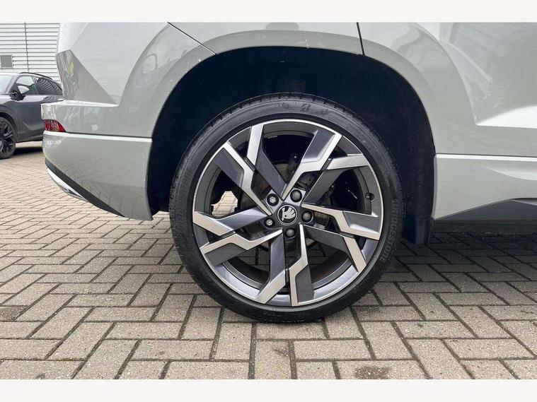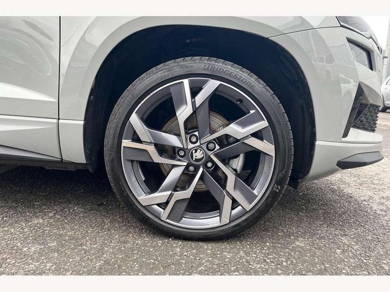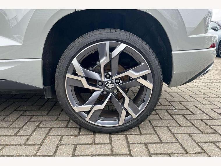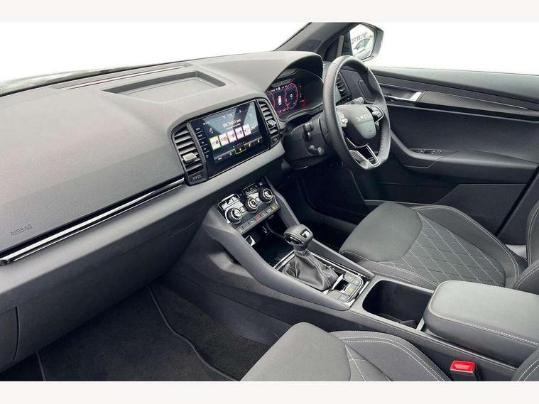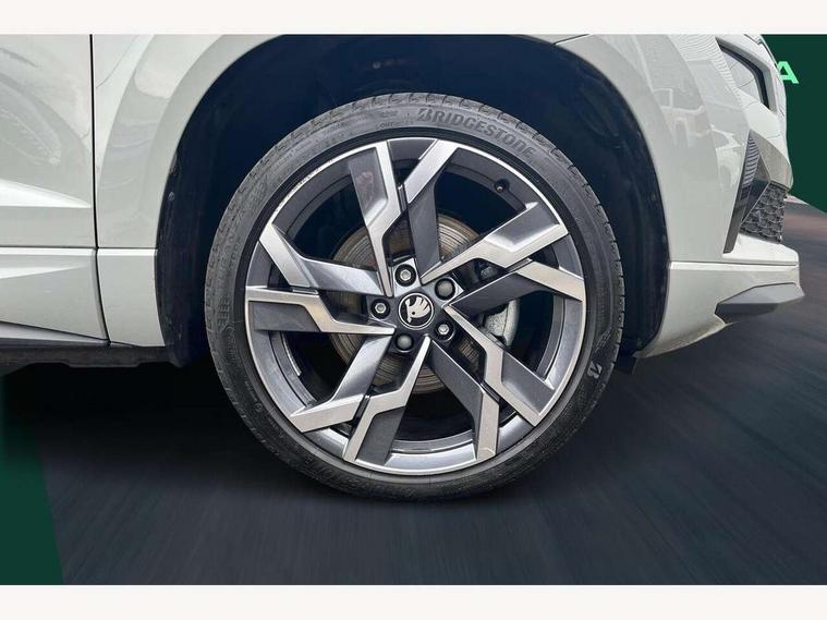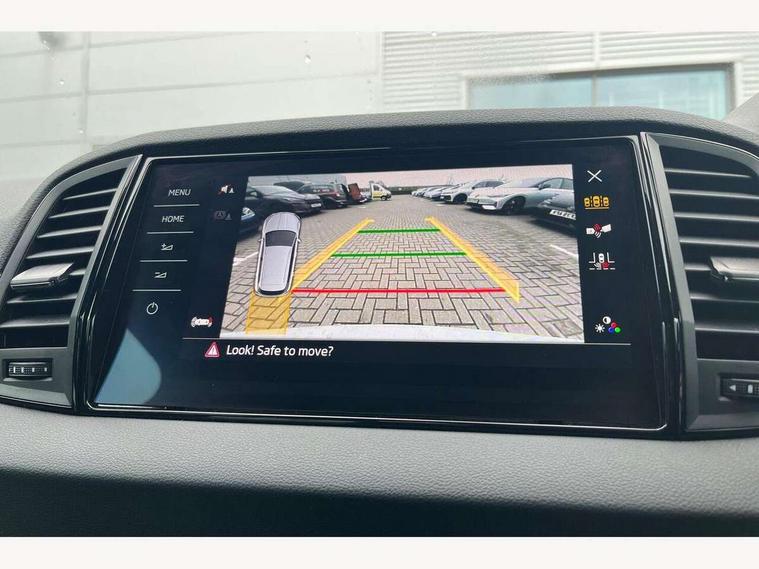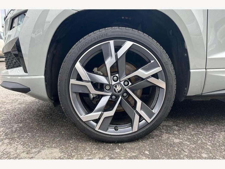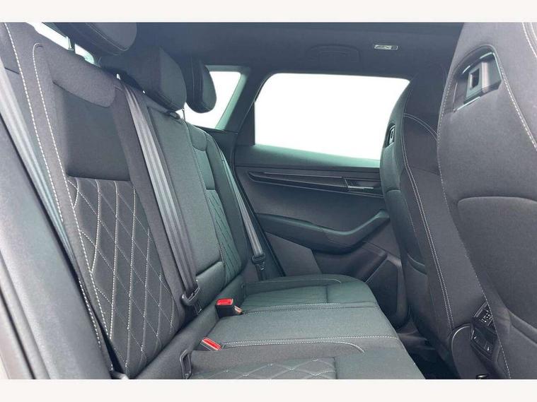 Advanced driver attention and drowsiness monitor, Emergency services call system, Outside temperature gauge, Sensor for driver assistance systems, Service interval indicator, SmartLink wireless for Apple and wired for Android, Start/stop system with regenerative braking, Traffic sign recognition, USB C Port x 2 in front centre console, Virtual Cockpit - 10.25" digital display, Virtual pedal with electrically operated boot door, Wireless smartphone charging, DAB radio with Bluetooth, USB connection, Acoustic glass, Aero front windscreen wipers with intermittent function, Auto dimming rear view mirror with light and rain sensors, Black door mirrors, Black electric window control buttons, Black radiator grille, Black roof rails, Body colour door handles, Electric front and rear windows with child proof lock, Extended rear roof spoiler, Front door steps with SportLine logo, Heated rear windscreen, LED daytime running lights, LED rear lights with high functionality welcome effect and dynamic indicators, Light assistant (coming/leaving home/tunnel light), Panoramic sliding sunroof, Plastic scuff plates in door apertures, Privacy glass, Protective door side sills in body colour, Rear diffuser, Rear side wing doors, Rear window wiper with washer system and intermittent control, Safety reflectors on front doors, Skoda lettering on tailgate in black, Sportline badge on front fender, Sports front and rear bumpers, Third brake light, Unique dark chrome design logo on alloy wheels, 1.5 litre bottle holders in driver and front passenger door panels, 12V socket in boot, 12v socket in front centre armrest with storage compartment and rear air vents, 2 x Tablet holder, 3 rear height adjustable headrests, 3 seat bench in 2nd row, 3 spoke sports leather heated multifunction steering wheel with DSG paddles, 4 foldable roof handles with rear coat hooks, Black floor carpet, Cargo elements in boot, Chrome inner door handles, Foldable hooks in the boot, Front head restraints, Height adjustable front three point seats belts with tensioners, Height/reach adjust steering wheel, Ice scraper, Illuminated glovebox, Illuminated luggage compartment, Isofix child seat preparation for front passenger seat, Isofix child seat preparation outer rear, Manual lumbar support for front seats, Pen holder, Pollen filter, Rear backrest release from boot, Rear boot cover, Rear package tray, Rear reading lights, Rear seats fixed folding and divided 60:40, Rubbish bin door, Safety vest holder, Single front passenger seat, Skoda lettering on steering wheel, Sportline decorative inserts, Storage box in upper central dashboard closed, Sunvisors with illuminated vanity mirrors, Textile floor mats, Ticket holder, Titan black interior ceiling, Umbrella under passenger seat, Under passenger seat storage compartment, Columbus pack - Karoq, LED Interior lighting pack with Skoda welcome logo - Karoq, Light Pack - Karoq, Non Smokers pack, Performance pack - Karoq, Winter plus pack with heated front and rear seats - Karoq, Automatic door unlocking in case of crash, Automatic fuel cut off in case of crash, Driver airbag, Electronic parking brake with auto hold function, Emergency rear braking signal, ESC (incl. ABS+MSR+ASR+EDS+HBA+DSR+RBS+MKB), Front side airbags, Head airbags, Hill hold control, Knee airbags, Passenger airbag with switch-off function, Pedestrian monitor, Seatbelt reminder signalisation and pretensioner for all seats, Three point seatbelts rear, Two tone horn, Tyre pressure monitor, Alarm with interior monitoring, back up horn and tilt sensor with safe function, Electronic engine immobiliser, Keyless entry and start/stop, Remote central locking with 2 remote folding keys, Black air vent surround, Black centre console, carbon door decor, Satin black dashboard, Satin black door trim, 19" Sagittarius anthracite alloy wheels, Anti-theft wheel bolts protection, Breakdown and tool kit,