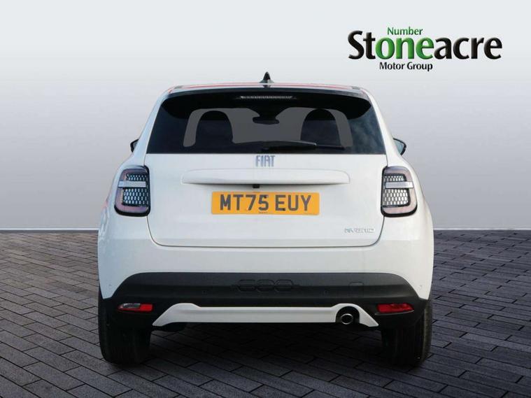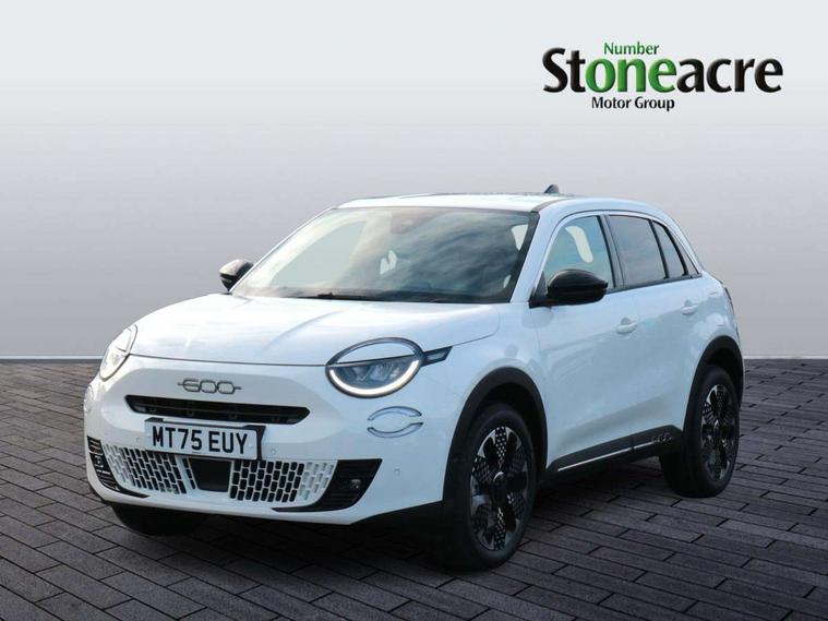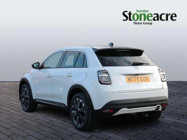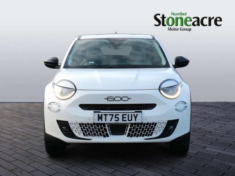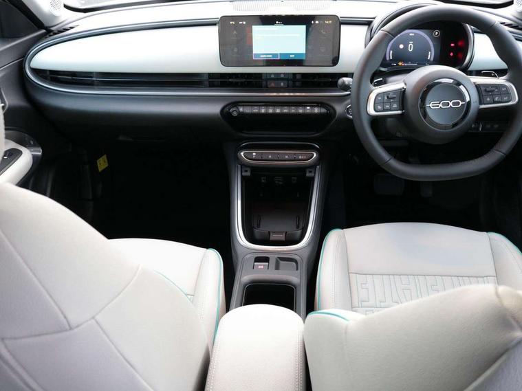 360 degree parking sensors with 180 degree rear view camera, 7" TFT digital cluster, Autonomous driving level 2: Adaptive cruise control with stop & go and lane centering, Blind spot detection, Bluetooth connectivity, BSRF connectivity box, Connected services, Drowsy driver detection, Emergency E-call assist, Engine emission level default, GSR II step 1, Hands free power liftgate, Intelligent speed assist, Lane keeping assistant (LKA), Odometer, Power assist steering, Rain and dusk sensors, Semi-automatic parking with Visiopark 1 system, Traffic sign recognition, Wireless apple car play/android Auto, Wireless charging pad for smartphones, Without drive mode selector, L2-AGM 12V battery, 1st Row USB type-A and USB type-C, 2nd Row USB type-C, 6 speaker audio system, Radio, Uconnect infotainment 10.25" touchscreen with integrated navigation system and DAB, All power windows express Up/Down, Auto dimming frameless rear view mirror, Automatic headlights, Automatic high/low beam, Body coloured door handles, Chrome day light openings, Chromed exhaust tip, Electric adjustable/heated/folding door mirrors, Exterior chrome accents, Front and rear Chromed 600 logo, Gloss black finish B pillar, Gloss black shark fin antenna, Glossy black door mirrors, Heated windscreen wiper blade area, LED 3rd brake light, LED daytime running lights, LED Fog lamps with cornering function, LED front signature lighting, LED front turn indicators and position lights, LED rear lights, LED rear signature lighting, LED reflector headlamps, Matt black side skirts with 600 chromed logo, Privacy glass, Puddle lights, Rear bumper embossed 600 logo, Rear roof spoiler, Rear side wing doors, Rear wiper, 2 Spoke synthetic leather steering wheel with audio control, 3 rear headrests, 3 seat bench in 2nd row, 6 way manually adjustable front passenger seat, 6 way power adjustable driver seat with lumbar support and massage function, Adjustable trunk floor, Automatic climate control, Auxilliary 12V power socket, Cargo flex fit, Chrome interior door handles, Dark metachrome dashboard ring, English handbook, Front centre armrest, Front headrests, Front passenger grab handle, Front seatback pockets, Heated front seats, ISOFIX attachment on front passenger and rear passenger seats, Matt Ivory painted dashboard fascia, Metachrome central compartment bezel, Monogram Synthetic leather upholstery, Paddle shifts, Partial body cover for shipment, Predisposal for accessory upgrade to default tunnel pad cover (dedicated prnd bezel), Rear seat 40/60 split, Single front passenger seat, Smart 15L storage central tunnel with La prima tunnel pad cover, Sunvisor label ciao Fiat, Sunvisors with vanity mirrors, Velour floor mats, 3x3 point rear seatbelts, 6 airbags, ABS, Autonomous Emergency Brake (AEB) & Vulnerable Road User (VRU) Protection, Child locks on rear doors, Electronic parking brake with auto hold, ESC (Electronic Stability Control), Front passenger airbag deactivation, Seatbelt reminder and pretensioners for all seats, Anti-theft volumetric alarm, Anti-theft wheel bolts, Passive entry and keyless go, 18" Diamond cut alloy wheels, Fix and go puncture repair kit,