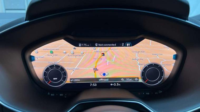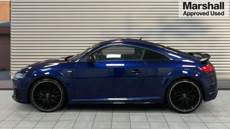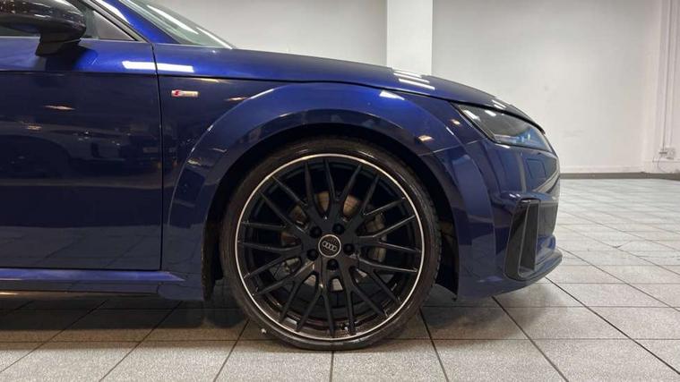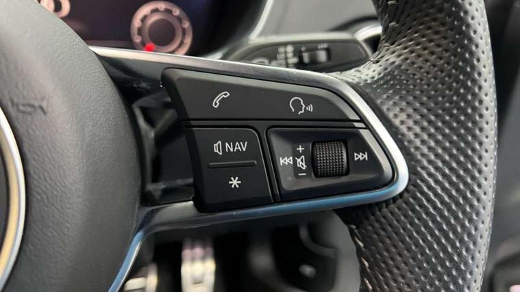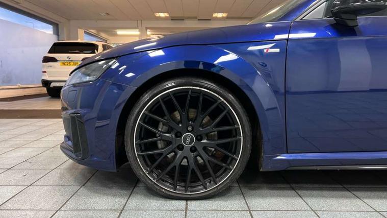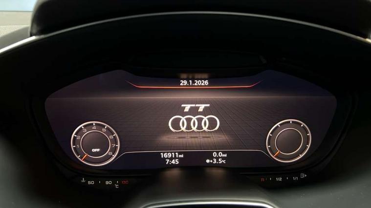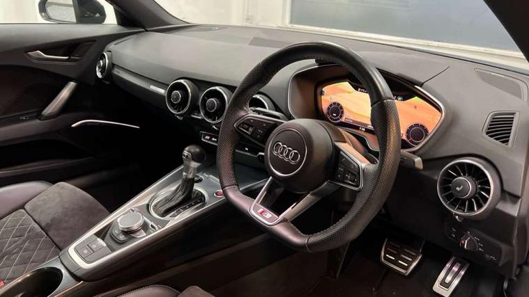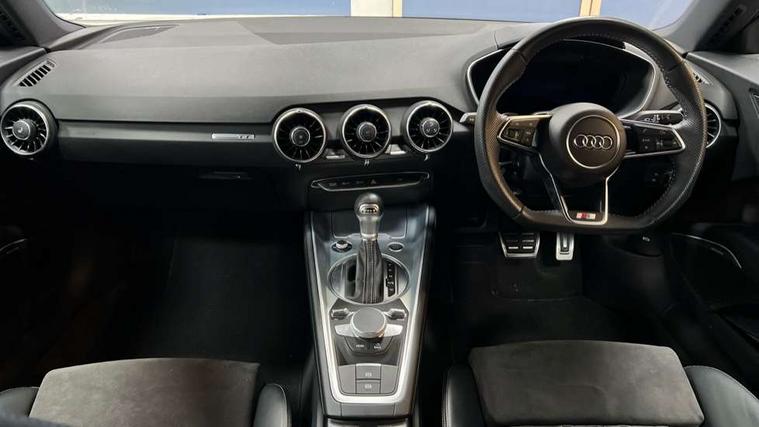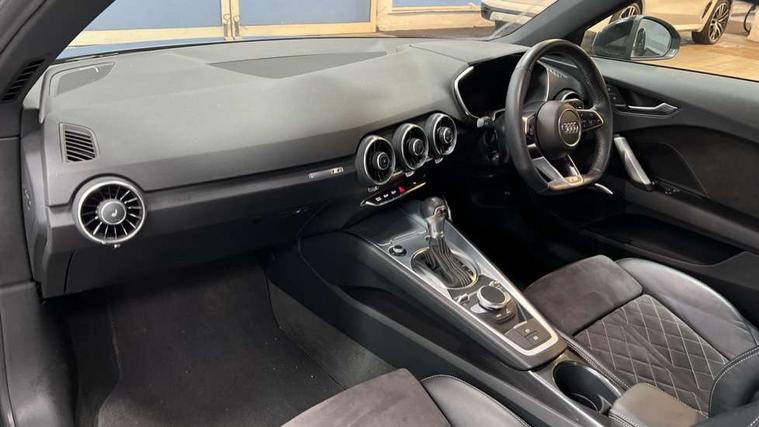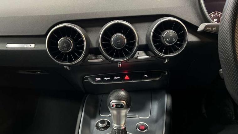 Audi drive select with 4 Pre configured modes, Audi smartphone interface, Audi virtual cockpit - 12.3" high-resolution LCD display with fully customisable instrument cluster, Cruise control + speed limiter, MMI touch panel, Mobile phone preparation with bluetooth interface, Progressive power assisted steering, Service interval indicator, Start/Stop system with energy recuperation, TP memo, Sports suspension, AM/FM radio, Bluetooth audio streaming, DAB Digital radio, MMI Radio with CD player and SD/XC card slot, Auto dimming rear view mirror, Auto headlight range control, Black chrome tailpipe, Dark privacy glass from B-pillar backwards, Electric folding door mirrors, Electric front windows, Electrically adjustable and heated door mirrors with integrated LED side indicators, Front fog lights, Green tinted heat insulating glass, LED daytime running lights, LED headlights with LED rear lights + dynamic rear indicators, Light and rain sensors, Sunband for windscreen, 12V socket, 3 spoke flat bottomed high multi-function leather sport steering wheel with gearshift paddles, 4 way electric lumbar support for driver and front passenger, Black headlining, Contrasting silver stitching in steering wheel, Door sill trims, Extended aluminium look with stainless steel pedals, Front centre armrest, Front super sports seats, Heated front seats, Height adjustable driver's seat, Height adjustable front head restraints, Height/reach adjust steering wheel, ISOFIX child seat mounting for front passenger seat with airbag deactivation, Manual adjustment of seat height, fore/aft position, seat angle, seat depth and backrest angle, Perforated leather gearknob in black, Rear head restraints, Rear top tether child seat ISOFIX attachment, Split folding rear seat, Tool kit, Black styling pack - TT, Non smoking pack - TT/TT RS, 3 point front seat belts, ABS, ASR traction control, Curtain airbags, Driver and front passenger airbag with front passenger airbag deactivation, EDL traction control, Electromechanical parking brake, ESP, First aid kit, Front side airbags, Head airbags, Hill hold assist, Seatbelt warning, Tyre pressure loss indicator, Warning triangle, Anti theft alarm, Anti theft wheel bolts, Immobiliser, Keyless Go, Remote central locking, Matt brushed aluminium inlays, Tyre repair kit,