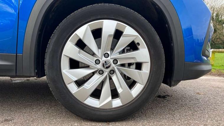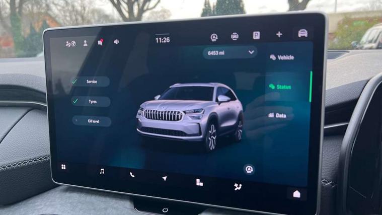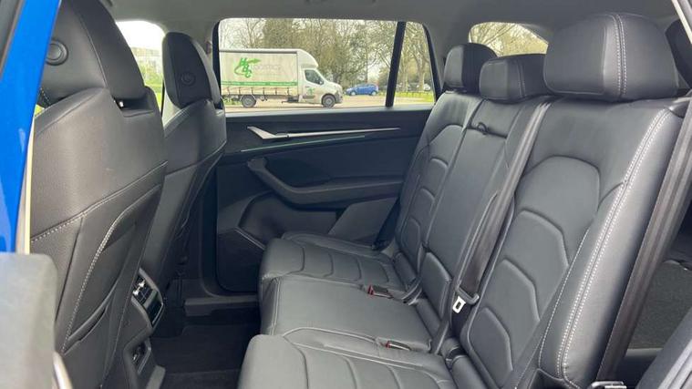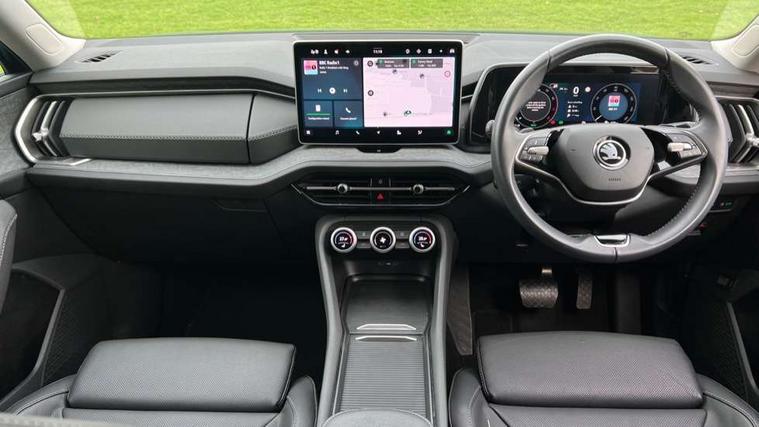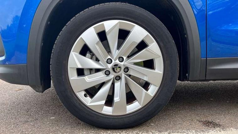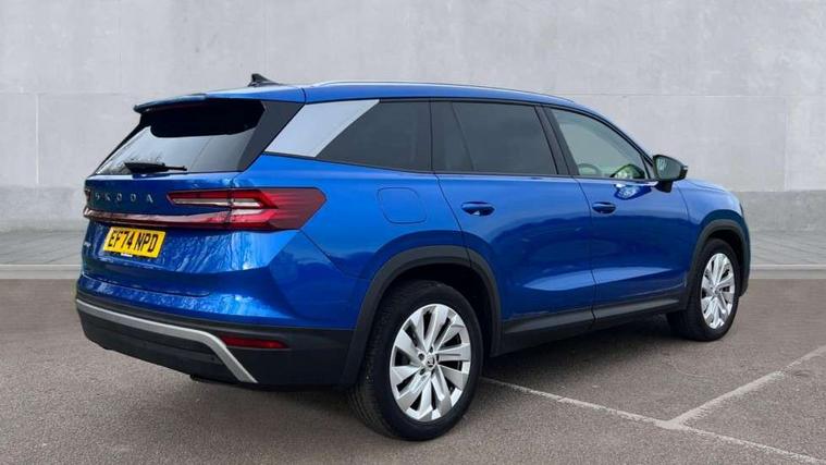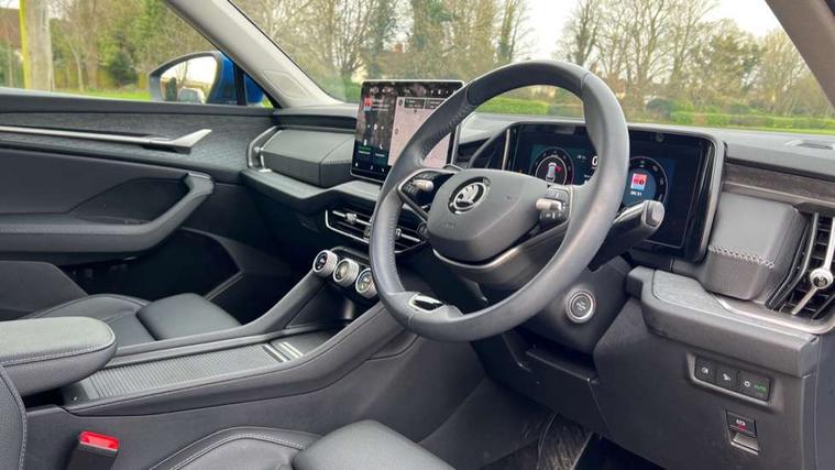 13" satellite navigation touchscreen display, Blind spot detection with door exit warning, Bluetooth system, ChatGPT functionality, Drive mode selector, Driver alert with fatigue sensor, Driver drowsiness alert system, Dry display cleaner, e call+, Front cross traffic assist, Lane assist, PAS, Rear traffic assist, Tailgate unlocking from outside, Traffic sign recognition, USB C Port x 2 in front centre console, Virtual Cockpit - 10.25" digital display, Voice control system, Wireless charging for two smartphones (15W) with cooling function, Wireless SmartLink for Apple CarPlay and Android Auto, Stop/start function, 2x USB-C in the rear, DAB Digital radio, Aero front windscreen wipers with intermittent function, Auto dimming rear view mirror, AWL (all weather lighting) and all weather light with cornering function, Black wheel arch surrounds, Body colour bumpers, Body colour door mirrors and handles, Cornering light and poor weather light, Electric folding /adjustable/separted heated/folding door mirrors, auto dimming with boarding sports and memory function, Electric front and rear windows, Exterior black decorative trims, Heat insulating glass in windshield, Heated rear window, Ice scraper in fuel tank cap, Invisible tailpipe, LED daytime running lights, LED third brake light in rear spoiler, Light assistant with automatic headlight control and coming home feature, Logo projection in door mirrors, Privacy glass, Rear side wing doors, Rear spoiler, Rear window wiper, Red decorative strip between rear LED lights, Safety reflectors on front and rear doors, Unique dark chrome design logo on alloy wheels, Window control switches with black trim, Windscreen wipers with rain sensor, Without engine designation, 1.5l bottle holder points in all door, 12V socket in boot, 1x centre rear reading light, 2 seat bench in 3rd row, 3 configurable smart dials with 32mm coloured display, 3 seat bench in 2nd row, 4 foldable roof handles with rear coat hooks, Ambient interior lighting - Dashboard, front-door stowage compartments, front and rear door panels and footwell lighting, Automatic gear selector on steering wheel, Chrome interior door handles, Driver/front passenger reading lights, Fabric headlining, Fixed bench 40:60:40 split folding backrests, Front and rear floor mats, Front centre armrest with jumbo box storage compartment, cup holder and 12V socket, Front courtesy lights, Height adjustable front headrests, Isofix child seat fittings in outer middle row rear seats and front passenger with top tether, Manually adjustable steering column, Pollen filter, Rear centre armrest with cupholders, Rear seat boot backrest release, Retractable luggage compartment cover, Single front passenger seat, Skoda lettering on steering wheel, Sliding trunk cover, Small Bags on the inner sides of the front backrests, Storage pocket including mobile phone pockets on the backs of the front seats, Sunvisors with illuminated vanity mirrors, Three rear height adjustable headrests, Ticket holder on A Pillar, Tri zone climate control, Umbrella in door panel x1 made from sustainable materials, Upper and lower glovebox with card holder and coin compartment, USB C port by rear view mirror for charging only (15W), Exterior styling pack - Kodiaq, Auto door release and activation of warning lights in the event of an accident, Driver and front passenger airbag with knee airbag and front passenger airbag deactivation, Electric child locks, Electronic parking brake, ESC (incl. ABS+EMD+MSR+ASR+EDL+HBA+DSR+RBS+ESBS+MCB+TSA+XDS), Front assist with braking reaction to vehicles, pedestrians and cyclists, Front disc brakes, Fuel cut off safety device, Height adjustable front 3 point seatbelts + pretensioners, Hill hold control, Junction assist with automatic emergency braking, Rear disc brakes, Safety vest holder in door, Seat belt reminder for all seats, Three point rear seat belts, Two tone horn, Tyre pressure monitor, Anti-theft wheel bolts, Immobiliser, Remote central locking with 2 keys, Breakdown kit,