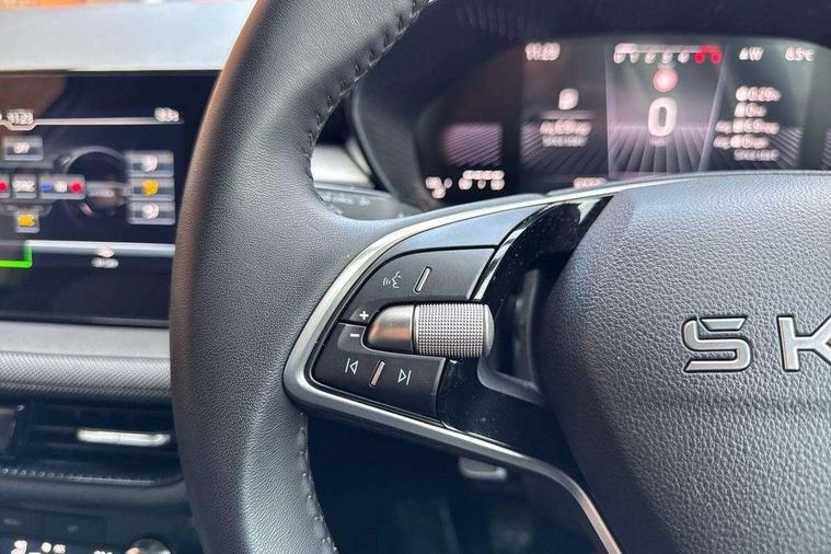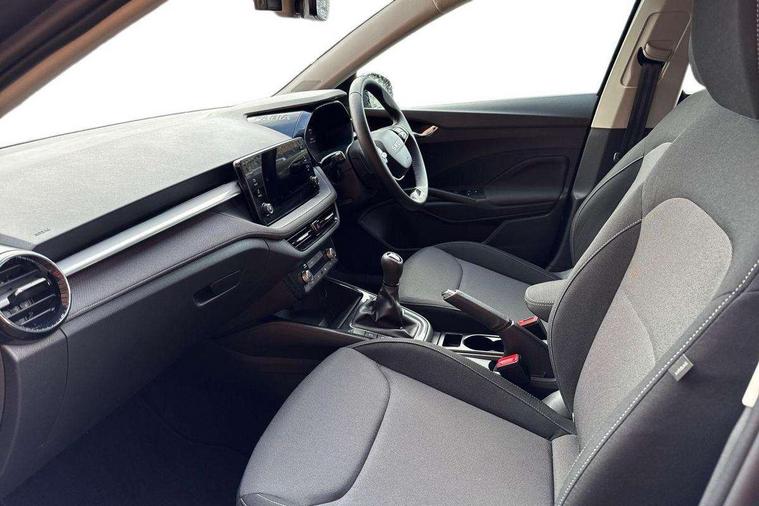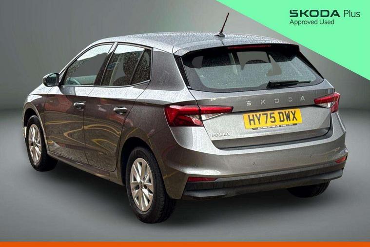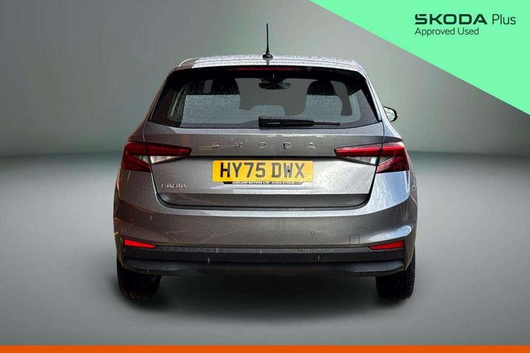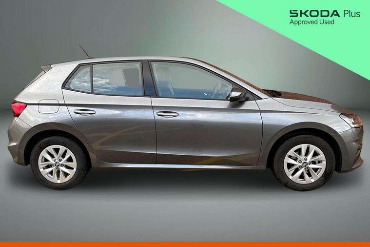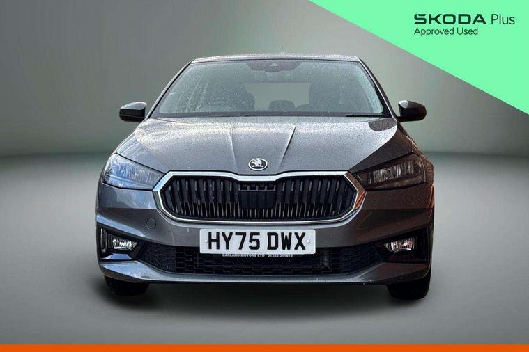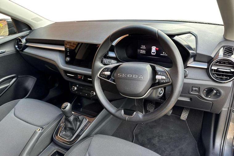 8" Digital instrument display, Advanced driver attention and drowsiness monitor, Bluetooth connection, Cruise control with speed limiter, Driver alert system, Electromechanical power steering, Exterior temperature gauge, Lane assist including road edge detection, Rear parking sensors, Service interval indicator, Traffic sign recognition, Wireless SmartLink for Apple CarPlay and Android Auto, 6 Speakers (4 in front and 2 in rear), 8.25" Skoda infotainment touchscreen display, Auxiliary socket for external MP3 player, DAB digital radio reception, Auto dimming rear view mirror, Body colour door mirrors, Body coloured bumpers, Door mirror integrated indicators, Front and rear electric windows, Front window wiper intermittent control, Headlight range control - Automatic, Ice scraper in fuel cap, LED 3rd brake light, LED daytime running lights with coming and leaving home feature, LED rear lights, Rear LED fog light, Rear side wing doors, Rear window wiper with washing nozzles, Roof mounted spoiler, SKODA tailgate lettering in chrome, Unique dark chrome design logo on alloy wheels, 2 reading lights in front and 2 reading lights in rear, 3 rear headrests, Backrest split and folding, Central console with removable cup holder and storage box, Chrome handbrake release button, Dual zone air conditioning with climatronic electronic control, Fabric upholstery, Front centre armrest, Gearshift knob/handle in leather, Grain satin black interior door handles, Hand brake lever handle in leather, Height adjustable front headrests, Height adjustable front seats, Height adjustable steering wheel, ISOFIX and TopTether anchorage points to the outer rear seats, ISOFIX and TopTether on the front passenger seat, Luggage compartment lighting, Manually adjustable lumbar support in front seats, Pollen filter, Rear seat bench unsplit, Single front passenger seat, Skoda lettering on steering wheel, Storm grey headlining, Sun visors with mirror and airbag label on passenger side, Textile floor mats, Ticket holder, Umbrella in drivers door, Ambient lighting pack - Fabia Hatchback, 3-point height adjustable front seats belts with pretensioner and force limiter, Automatic warning lights in case of crash, Driver and passengers airbag with switch off function, e-Call+, ESC including ABS, MSR, ASR, EDS, HBA and XDS, Front and rear seat belt warning, FRONT ASSIST (AEB City and AEB Inter Urban), Front side airbags, Head airbags, One tone horn, Pedestrian protection, Three rear 3-points safety seat belts with pretensioner and force limiter including stop function for outer rear seat belts, Tyre pressure monitoring system, Anti-theft alarm system including immobiliser, interior monitoring, backup horn, and towing protection, Central locking with radio remote control, interior controls, SAFE function and 2 foldable keys, KESSY - Keyless engine start/stop, Black painted air vents, Grain satin black central console cover, Metallic grey upper decorative trim, Satin black door and side trim panel in front, Textile Kota grey lower decorative inserts, Anti-theft wheel bolts protection, Super-low rolling resistance tyres,
