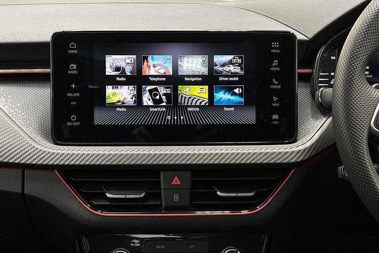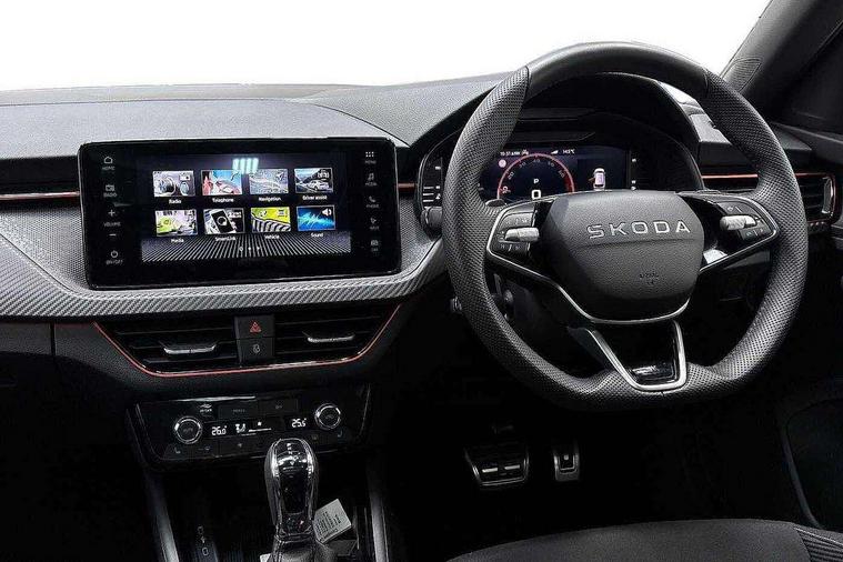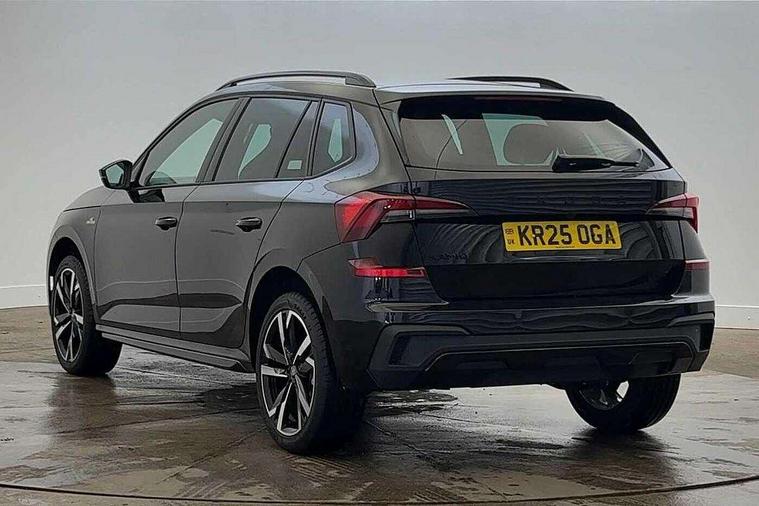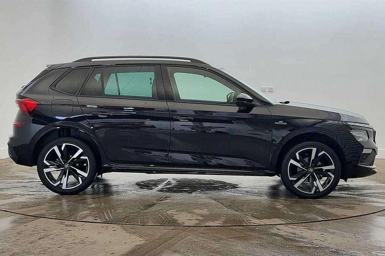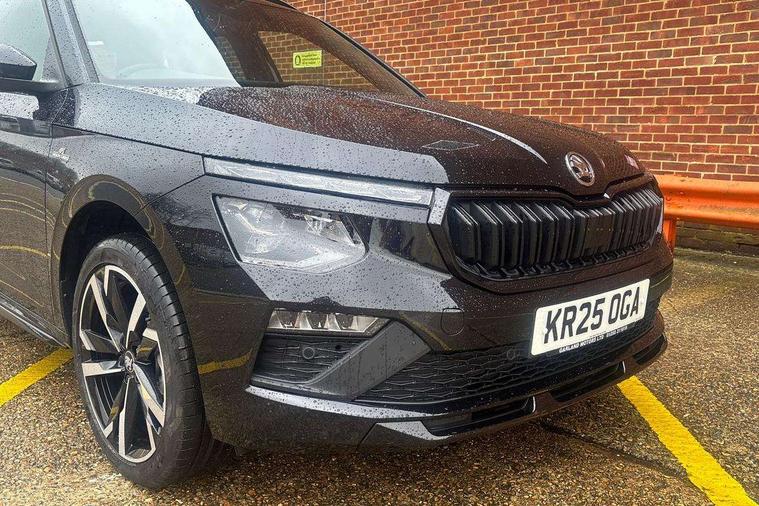 Advanced driver attention and drowsiness monitor, Bluetooth system, E-call, Front assist system, PAS, Rear parking sensors, Rear view camera, Service indicator, Speed limiter, Traffic sign recognition, Virtual cockpit with 10.25" display, Voice control system, Wireless smartlink, 4 USB C ports, 8 Speakers, 9.2" Skoda navigation display, DAB Digital radio, Auto dimming rear view mirror, Automatic headlight control with coming home and leaving home feature, Black door mirrors, Black radiator grille, Black rear diffuser, Black roof spoiler, Body colour bumpers, Body colour door handles, Boot lettering in black, Extended tailgate glass, Fixed panoramic sunroof with black roof rails, Front and rear electric windows, Heated rear window, LED daytime running lights, LED high beam, LED low beam, LED third brake light, Light sensors, Monte carlo plaque, Privacy glass, Rear side wing doors, Rear wiper, Ticket holder inside windscreen, 12V socket in luggage compartment, 3 seat bench in 2nd row, Aluminium pedals, Ambient lighting in white/red, Art leather carbon decor inserts, Art leather carbon door inserts, Black roof lining, Cargo elements, Chrome inner door handles, Driver and passenger sun visors with vanity mirror, Dual zone climate control, Front and rear roof lights, Front centre armrest, Front head restraints, Glove compartment with illumination, Height adjustable driver seat, Height adjustable front passenger seat, Ice scraper, Inner circulation control with pollen filter, ISOFIX on front passenger seat, Isofix preparation for back seats, Leather gearknob and handbrake lever, Manual lumbar support for front seats, Monte Carlo cloth upholstery, Net package and top tether hooks in boot space, Net under rear shelf, Pocket on the back of both front seats include mobile phone pockets, Rake/reach adjustable steering wheel, Reading lights, Rear centre armrests, Red hotstamping, Single front passenger seat, Sports seats, Textile floor mats, Third rear headrest, Top tether for front passenger seat, Umbrella in driver's door, Light and view plus package - Kamiq, 3x3 point rear seatbelts, Airbags - driver and front passenger, Disc brakes, ESP, Extended and predictive pedestrian/cyclist protection, Front passenger airbag deactivation switch, Front side airbags with curtain airbags, Hill hold control, Manual leather parking brake, Manual rear child locks, One tone horn, Seatbelt reminder for driver an co-driver, Traction control, Tyre pressure monitor, Anti-theft alarm system with interior monitoring, backup horn, towing protection and remote central locking with SAFE system, Anti-theft wheel bolts, Electronic engine immobilizer, 18" Ursa black diamond cut alloy wheels,
