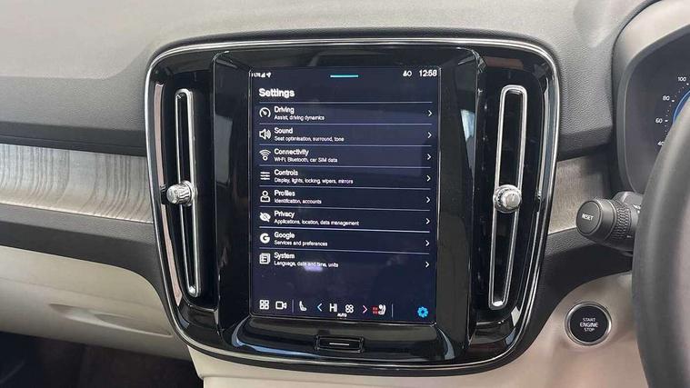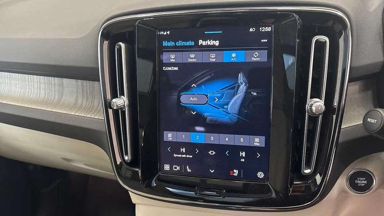 12.3" Progressive Driver Display, 360 degree surround view parking camera with side proximity sensors, 9" centre console portrait touch screen, Adjustable steering wheel force, Bluetooth hands free telephone kit, E-call, Front park assist, Google automatic services - Nav with google maps, apple carplay/android auto, voice recognition with google assistant, Hands free power tailgate, Lane keep assist with driver alert control, Oncoming Lane Mitigation, Rear park assist, Speed limiter, Speed sensitive steering, Wireless/Inductive Mobile Phone Charging, Dynamic chassis, DAB Digital radio, Premium Sound by Harman Kardon, Dolby Pro Logic II Surround Sound, Dirac Unison, 12 speakers/600W and subwoofer, Steering wheel mounted remote controls, Active bending pixel LED headlights with adaptive shadow technology, Active high beam incorporating daytime running lights, Adaptive brake lights with high level LED brake lights, Auto dimming interior mirror, Automatic headlamp levelling, Dark tinted windows for rear door side windows and cargo compartment, Front aluminium tread plates, Front and rear electric windows, Headlight cleaning system, High gloss black front and rear skid plate, High gloss black mesh front grille with high gloss black surround, High gloss black window trim, Home safe and approach lighting, Integrated roof rails in high gloss black, LED front fog lights, Power glass tilt and slide panoramic sunroof with sun curtain, Puddle lights, Rain sensor with automatic windscreen wiper activation, Rear side wing doors, Rear wiper, Roof antenna, Roof spoiler, Visible VIN plate, 12V socket in front tunnel console and luggage compartment, 2-Zone electronic climate control with CleanZone air quality system and pollen filter, 3 seat bench in 2nd row, 3 Spoke tailored steering wheel with chrome trim, 60/40 versatile split folding rear seat, A-pillar parking ticket holder, Ambient front door and instrumental panel lighting, Centre console cupholders and storage, Flexible load floor and grocery bag holder, Floor mats, Front door pocket and front cupholder illumination, Front footwell illumination, Front headrests, Front reading light and theatre lighting, Front seat cushion extensions, Front tunnel pocket, Glovebox bag hook, Heated front seats, Height adjustable passenger seat, Height/reach adjustable steering column, High gloss centre tunnel deco, Illuminated glovebox, Illuminated luggage compartment, Illuminated tailgate, Illuminated vanity mirrors, Integrated waste bin, Isofix attachments on outer rear seats, Load protection net, Multi directional lumbar support, Power driver seat with memory + exterior mirrors memory, Power folding rear headrests, Power passenger seat, Rear armrest / integral cup holders / storage tray, Rear reading and courtesy lights, Single front passenger seat, Underfloor cargo storage, Climate pack without heated front seats - XC40, Driver assist pack - XC40, 3x3 point rear seatbelts, City safety with steering support with Pedestrian + cyclist + front collision warning with full auto brake and rear auto brake, Drivers knee airbag, Dual stage driver/passenger airbags, Electronic parking brake with auto hold, First aid kit, Front and outer rear seatbelt reminder and pretensioners, Front seats SIPS airbags, Hill descent control, Hill start assist, Inflatable curtain, Passenger airbag cut-off device, Power child locks on rear doors, Road sign information display, Run off Road Mitigation, Run off Road Protection, SIPS (Side Impact Protection System), Slippery road and hazard light alert, Stability and Traction Control with Spin control, Engine Drag Control and Corner Traction Control, Tyre pressure monitoring system, Vehicle deceleration control with Anti-lock Brake System, Electronic Brake Distribution and Emergency Brake Assist, Warning triangle, WHIPS whiplash protection system - front, Anti-theft alarm including immobiliser/volume sensor + level sensor, Key integrated remote control central locking + fuel flap with deadlocking system and auto open/close power windows, Keyless drive includes keyless entry and keyless start, Locking wheel nuts,