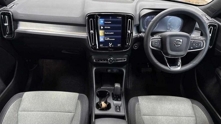 12.3" Active TFT crystal driver's instrument display, 9" centre console portrait touch screen, Adjustable steering wheel force, Bluetooth hands free telephone kit, Drive mode selector, E-call, eCall emergency call system, Lane keep assist with driver alert control, Oncoming Lane Mitigation, Power operated tailgate, Rear park assist, Sensus navigation with European mapping and traffic information, Speed limiter, Speed sensitive steering, Voice activated control for key functions, Wireless Smartphone Integration includes Apple CarPlay and Android auto, Wireless/Inductive Mobile Phone Charging, 3.7 kW monophase on board charger, 7m 10amp charge cable with 3 pin plug and 7m 1 phase 16amp type 2/mode 3 charge cable, Dynamic chassis, Electric front axle drive, Recharging port located in nearside front wing, DAB Digital radio, Low speed exterior sound speaker, Sensus connect with high performance sound, 8 speakers/250W, front USB and 2 rear type C USB, Steering wheel mounted remote controls, Adaptive brake lights with high level LED brake lights, Auto dimming interior mirror, Automatic headlamp levelling, Automatic LED Headlights + Active high beam incorporating daytime running lights, Chrome window trim, Colour coordinated auto folding and heated power door mirrors, Front and rear electric windows, Front recharge aluminium tread plates, High gloss black front grille with chrome inserts, High Gloss silver front and rear skid plate, Home safe and approach lighting, Integrated roof rails in silver, Rain sensor with automatic windscreen wiper activation, Rear side wing doors, Rear wiper, Roof antenna, Roof spoiler, Visible VIN plate, 12V socket in front tunnel console and luggage compartment, 2-Zone electronic climate control with CleanZone air quality system and pollen filter, 3 seat bench in 2nd row, 3 Spoke tailored steering wheel with chrome trim, 60/40 versatile split folding rear seat, A-pillar parking ticket holder, C-pillar Recharge logo, Centre console cupholders and storage, Charcoal headlining, City block textile upholstery, Floor mats, Front footwell illumination, Front headrests, Front reading light and theatre lighting, Front tunnel pocket, Glovebox bag hook, Height adjustable passenger seat, Height/reach adjustable steering column, High gloss black centre screen surround deco, Illuminated glovebox, Illuminated luggage compartment, Illuminated vanity mirrors, Isofix attachments on outer rear seats, Leather gearknob, Load protection net, Multi directional lumbar support, Rear armrest / integral cup holders / storage tray, Rear headrests, Single front passenger seat, Sports steering wheel, Underfloor cargo storage, 3x3 point rear seatbelts, City safety includes pedestrian, cyclist and large animal detection and front collision warning with full auto brake, Drivers knee airbag, Dual stage driver/passenger airbags, Electronic parking brake with auto hold, First aid kit, Front and outer rear seatbelt reminder and pretensioners, Front seats SIPS airbags, Hill descent control, Hill start assist, Inflatable curtain, Passenger airbag cut-off device, Power child locks on rear doors, Road sign information display, Run off Road Mitigation, Run off Road Protection, SIPS (Side Impact Protection System), Slippery road and hazard light alert, Stability and Traction Control with Spin control, Engine Drag Control and Corner Traction Control, Tyre pressure monitoring system, Vehicle deceleration control with Anti-lock Brake System, Electronic Brake Distribution and Emergency Brake Assist, Warning triangle, WHIPS whiplash protection system - front, Anti-theft alarm including immobiliser/volume sensor + level sensor, Care key with user defined top speed, Key integrated remote control central locking + fuel flap with deadlocking system and auto open/close power windows, Keyless start, Locking wheel nuts, Private locking for tailgate,