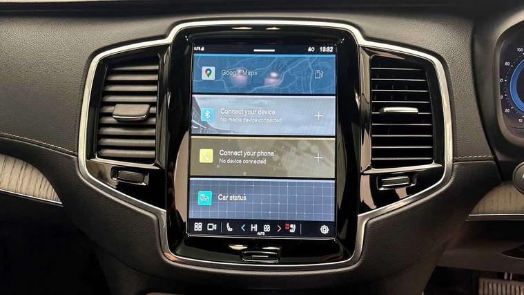 12.3" Progressive Driver Display, 360 degree surround view parking camera with side proximity sensors, 9" centre console portrait touch screen, Adjustable steering wheel force, Bluetooth hands free telephone connection, Driver alert control with lane keeping aid, Driver assistance (pilot assist and adaptive cruise control), Driver awareness - Blind spot information system with steer assist, cross traffic alert with autobrake and rear collision warning and mitigation, Emergency call service, Front and rear park assist, Google Automotive Services - Navigation with Voice recoginition and google assistant, Handsfree power tailgate opening and closing, Oncoming Lane Mitigation, Power operated tailgate, Service interval indicator, Speed limiter, Speed sensitive steering, Trip computer, Volvo on call, Wireless Mobile Phone Charger, 8 speed automatic transmission with start/stop + manual change functions, Active four C chassis - four corner adaptive dampers with electronic air suspension, DAB Radio (Digital Audio Broadcasting), Premium Sound by Bowers and Wilkins, dirac live, dolby pro logic II surround sound, 18 speakers/1400W output and fresh air subwoofer, Steering wheel remote infotainment controls, Active bending headlights with adaptive shadow technology, Adaptive brake lights with high level LED brake lights, Auto dimming interior + exterior mirrors, Auto folding and heated power door mirrors, Automatic headlight levelling system, Automatic LED Headlights + Active high beam incorporating daytime running lights, Body colour bumpers, Dark tinted windows - rear side windows and rear screen, Front and rear power windows, Headlight cleaning system, High gloss black door mirrors and window surround, High gloss black front and rear bumper deco, High gloss black mesh front grille with surround, Home safe and approach lighting, Integrated roof rails in high gloss black, LED front fog lights with cornering light function, Power glass tilt and slide panoramic sunroof with sun curtain, Puddle lights, Rain sensor with automatic windscreen wiper activation, Rear side wing doors, Rear wash/wipe with intermittent wipe setting, Roof antenna, Roof spoiler, Visible VIN plate, 12V socket front tunnel console, rear passenger compartment and cargo area, 2 seat bench in 3rd row, 2nd Row centre armrest with and cupholders, 3 seat bench in 2nd row, 4 zone electronic climate control with Clean zone air quality system + pollen filter, A-pillar parking ticket holder, Advanced interior air cleaner PM2.5, Air conditioning for 3rd row of seats, Ambient door and instrument panel lighting, B Pillar ventilation, Bright metal luggage threshold, Centre console cupholders and storage, Floor mats, Front and rear door pocket and front cupholder illumination, Front and rear reading lights, Theatre lighting and centre armrest storage illumination, Front footwell and side step illumination, Front headrests, Front seat cushion extensions, Heated front seats, Heated rear seats, Heated steering wheel, Height/reach adjustable steering column, Illuminated front and rear tread plates, Illuminated luggage compartment, Illuminated tailgate, Illuminated vanity mirrors + ticket holder, Illumination lockable glovebox compartment, Integrated sun curtains in rear doors, Isofix outer rear child seat preparation in 2nd row, Load protection net, Luggage compartment divider with grocery bag holder, Outboard armrest with cupholder and storage for third row passengers, Power driver seat with multi directional lumbar support and memory for seat and exterior mirrors, Power folding 2nd row headrests, Power passenger seat with multi directional lumbar support and memory, Rear footwell and side step illumination, Rear headrests, Semi automatic load cover, Single front passenger seat, Underfloor luggage compartment storage, 7 three point seatbelts, City safety with steering support includes pedestrian, cyclist and large animal detection and front collision warning with full auto brake, Drivers knee airbag, Dual stage driver/passenger airbags, First aid kit, Front seats SIPS airbags, Hill descent control - off drive mode, Hill start assist, IC (Inflatable Curtains) - Full Length, Passenger airbag cut-off switch, Power child locks on rear doors, Power parking brake with auto hold function, Road sign information display, Run off Road Mitigation, Run off Road Protection, Seatbelt reminder and pretensioners for all seats, SIPS (Side Impact Protection System), Slippery road and hazard light alert, Stability and Traction Control with Spin control, Engine Drag Control and Corner Traction Control, Tyre pressure monitoring system, Vehicle deceleration control with Anti-lock Brake System, Electronic Brake Distribution and Emergency Brake Assist, Warning triangle, WHIPS whiplash protection system - front, Anti-theft alarm including immobiliser/volume sensor + level sensor, Care key with user defined top speed, Key integrated remote control central locking + fuel flap with deadlocking system and auto open/close power windows, Keyless drive includes keyless entry and keyless start, Locking wheel nuts, Private locking for glovebox and tailgate, Tailored Instrument Panel and Door Tops with Contrast Stitching, Tempa spare wheel and jack,