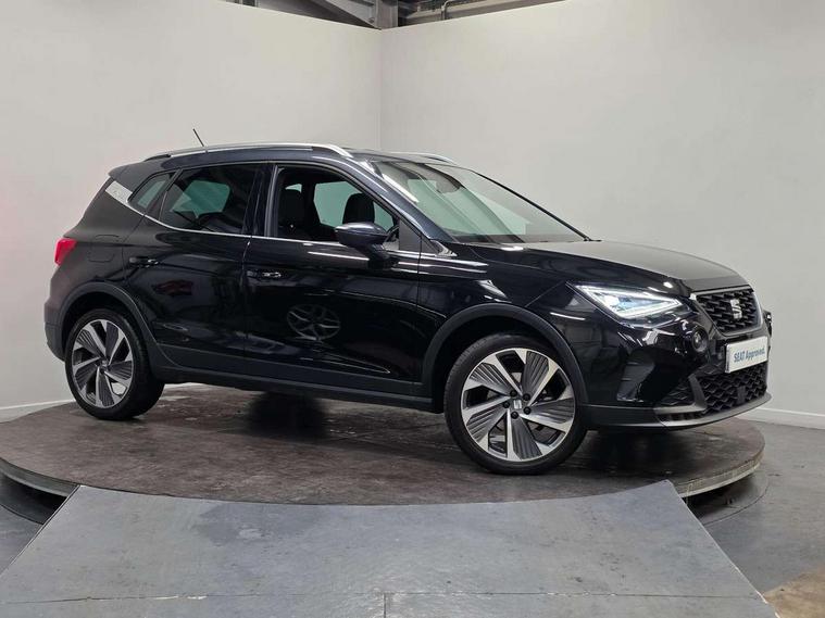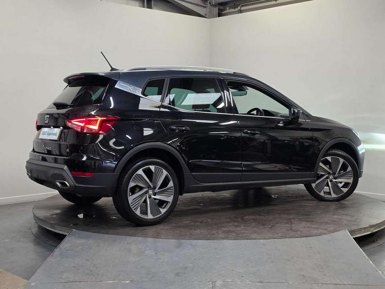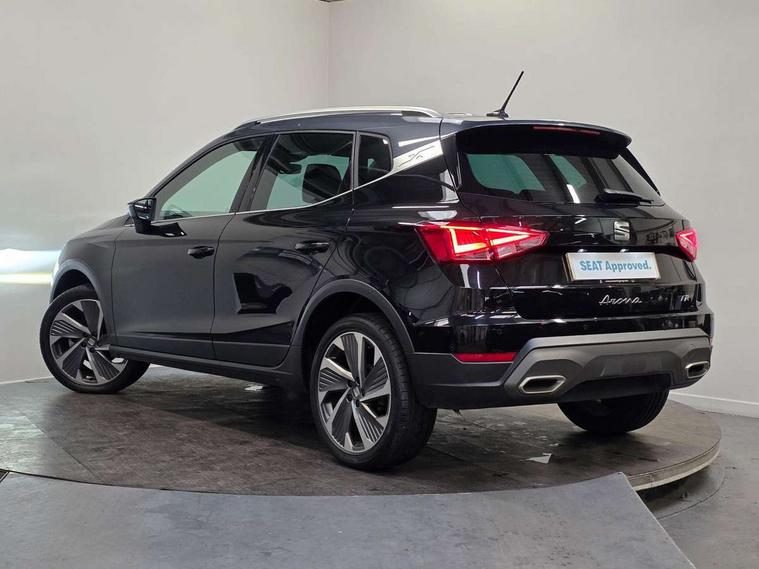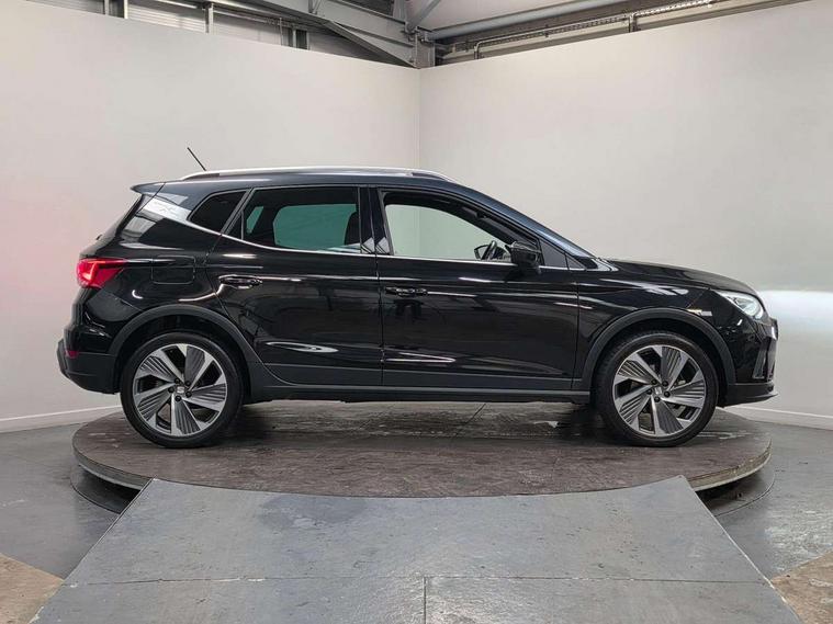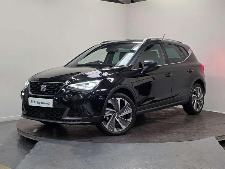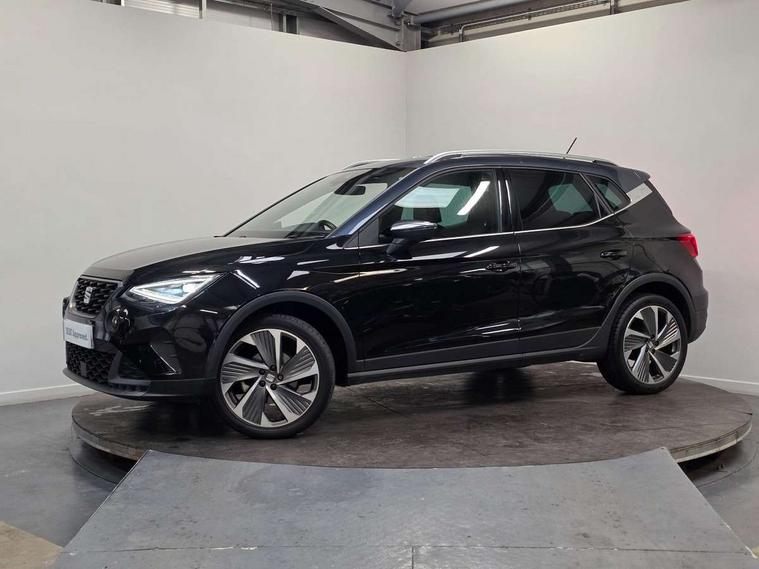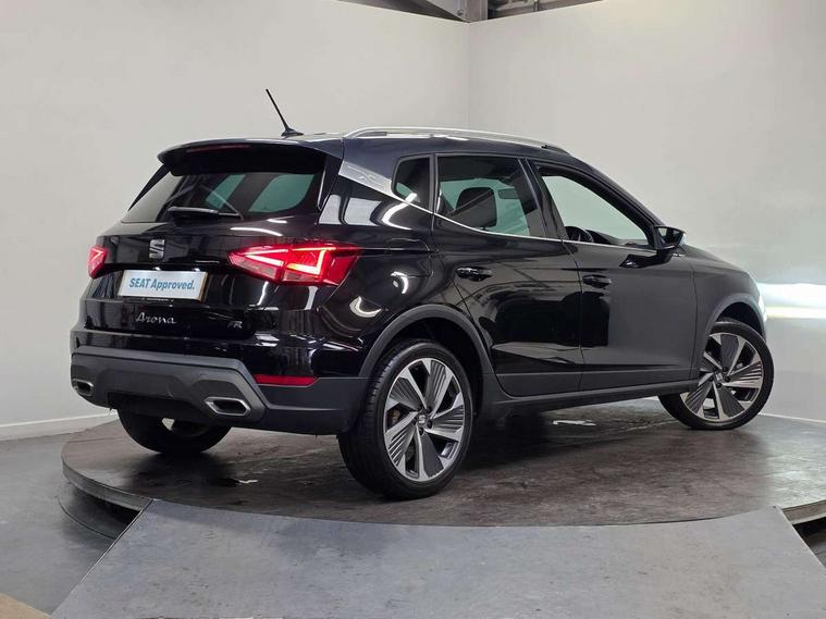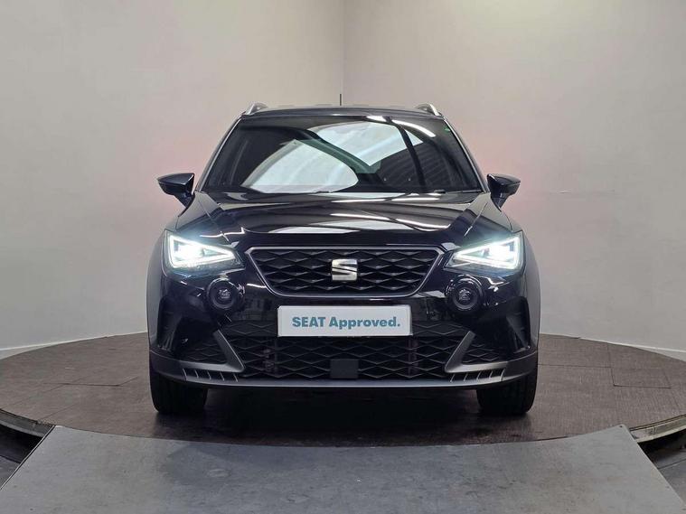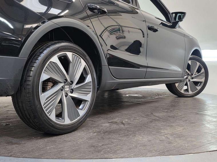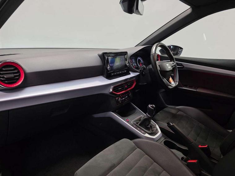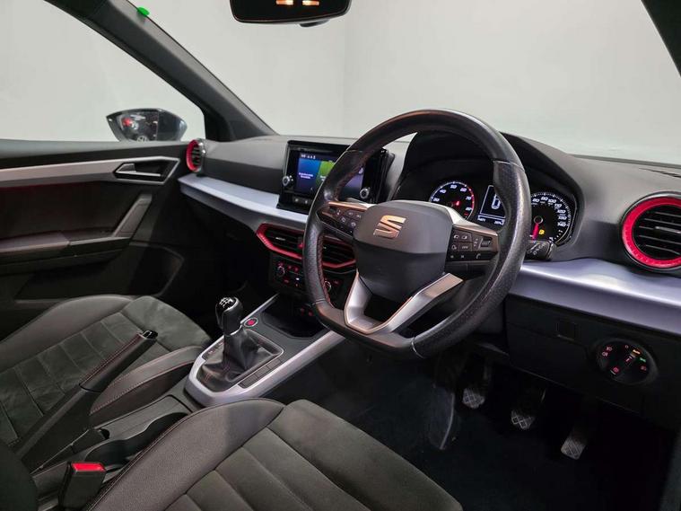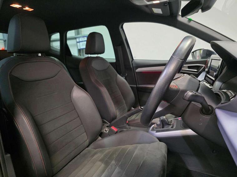 'Lights On' Reminder warning buzzer, Analogue cockpit with physical dials, Digital clock, E-call, Electric speed sensitive power steering, Full Link Smartphone Integration with Mirror Link, Apple Car Play, Google Android Auto with USB Type C cable for Apple and Android compatibility, Lane keeping system, Low fuel warning light, Outside temperature display, Rear parking sensor, RPM counter, Seat connect with safety, service and remote, SEAT Drive profile - Four different models normal-sport-eco-individual, steering response, throttle response, Trip computer, Wireless phone charger, Bluetooth interface for hands free and audio streaming, DAB digital radio and AM/FM radio, Media system with 8.25" colour touchscreen with USB port (type c), Steering wheel mounted audio controls, Anti theft roof antenna, Automatic activation of hazard warning lights, Body coloured bumpers, Body coloured door handle inserts, Chrome roof rails and window surrounds, Dark tinted rear windows, Dimming rear view mirror, Electric front/rear windows, Electrically adjustable and heated door mirrors, Front fog lights with cornering function and rear fog light, FULL LED automatic headlights with dynamic headlight range control, coming and leaving home, LED daytime running lights, LED rear tail lights and licence plate lights, Protective side mouldings, Rear side wing doors, Rear spoiler, Rear window wash/wipe, Roof colour door mirrors, Third brake light, Twin exhaust pipe styling hidden exhaust pipe, Visible VIN plate, Windshield wiper with intermittent control and potentiometer, 2 cupholders, 3 seat bench in 2nd row, 60/40 split folding rear seat, Aircare filter, Black interior roof, Double boot floor, Driver sunvisor with covered mirror + card holder, Dual zone climate control, Front comfort seats, Front courtesy light with 2x front and 2x rear reading lights, Gear shift indicator, Height adjustable front seats, Height/reach adjustable steering column, Illuminated boot, Instrument lighting with brightness control, Interior ambient lighting, Interior light in footwell, central console and door panel, ISOFIX points in outer rear seats with top tether anchorage points, Microsuede cloth upholstery, Passenger sunvisor with vanity mirror, Perforated flat bottomed leather steering wheel/gear knob/handbrake with red stitching and FR logo, Single front passenger seat, Two front and three rear height adjustable headrests, Interior chrome pack - Arona, 3 point seatbelts on all rear seats, ABS, Active front headrests, Child locks on rear doors, Driver and front passenger airbags with front passenger airbag de activation, front side and curtain airbags, Electronic stability control, Emergency Brake Assist (EBA) and front assist, Front and rear seatbelt reminder, Hill hold control, Multi-Collision braking, Tiredness recognition system, Traction control, Tyre pressure monitoring system, Alarm with back-up horn, Electronic engine immobiliser, KESSY Keyless entry and go, Locking wheel bolts, Remote central locking + deadlocks, Tow away protection, Titan black dashboard,