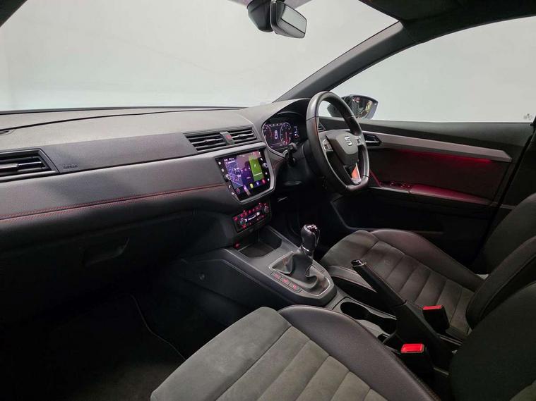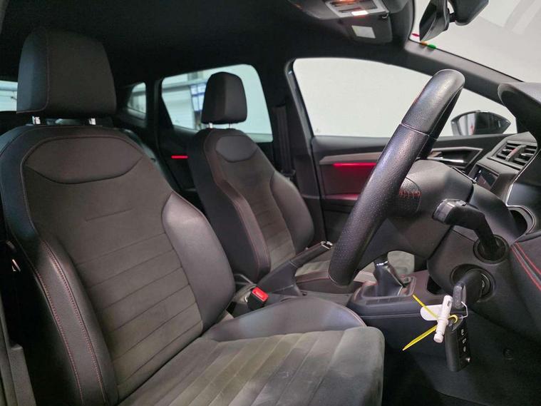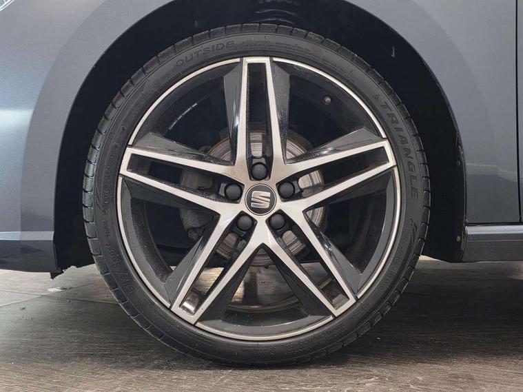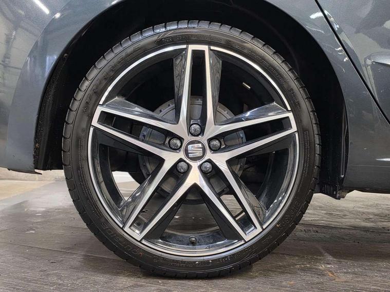 'Lights On' Reminder warning buzzer, Bluetooth audio streaming with handsfree system, Cruise control, Digital clock, Digital cockpit, Full Link Smartphone Integration with Mirror Link, Apple Car Play, Google Android Auto, Low fuel warning light, Navigation system with 8" touch screen + proximity sensor, voice control and USB type C sockets, Outside temperature gauge, Power Steering, Seat connect with safety, service, remote and online, SEAT Drive profile, SEAT logo boot release, Speed limiter, Trip computer, Sports suspension, 6 speakers, Auxiliary input socket, CD player, Digital Audio Broadcast (DAB) Tuner, Radio/MP3 player, SD card slot, Steering wheel mounted controls, USB (type C) cable for Apple and Android compatibility, Anti theft roof antenna, Auto dimming rear view mirror, Automatic headlights, Automatic rain sensing wipers, Body colour bumpers, Body colour door handles, Brilliant black door mirrors, Brilliant black window surrounds, Chrome front grille frame, Coming/leaving home lighting function, Dark tinted rear windows, Electric folding door mirrors, Electric front windows, Electric headlight adjustment, Electric rear windows, Electrically adjustable and heated door mirrors, Exclusive FR rear bumper, Front/rear fog lights, LED daytime running lights, LED headlights with dynamic headlight range control, LED tail lights, Rear spoiler with twin exhausts, 60/40 split folding rear seat, Ambient interior lighting, Chrome detailing, pearl grey headlining and leather effect door trim panels, Driver's sunvisor with ticket holder/vanity mirror, Dual zone climate control with combination filter, Front courtesy lights, Front cupholders x 2, Front reading lights, Gear shift indicator, Glovebox, Height adjustable driver's seat, Height adjustable passenger seat, Height/reach adjust steering wheel, Illuminated boot, Instrument lighting with brightness control, Leather multifunction flat bottomed steering wheel with FR logo, leather gear knob and handbrake, Microsuede cloth upholstery, Passenger sunvisor, Rear top tether child seat ISOFIX attachment, Storage pockets on back of front seats, Two height adjustable front and rear headrests (three in rear), 3 point seatbelts on all 3 rear seats, ABS, Active front headrests, Child locks on rear doors, Curtain airbags, Driver/Front Passenger airbags, ESP+EBA, Front assist (AEB), Front passenger airbag deactivation, Front side airbags, Hill hold control, Multi-Collision braking, Seat belt reminder for front and rear seats, Tiredness recognition system, Tyre pressure monitoring system, Anti theft wheel bolts, Electronic engine immobiliser, Perimeter alarm and interior monitoring with backup horn and tow away protection, Remote central locking + deadlocks, Leather dashboard, 18" Performance machined bi-colour alloy wheels,