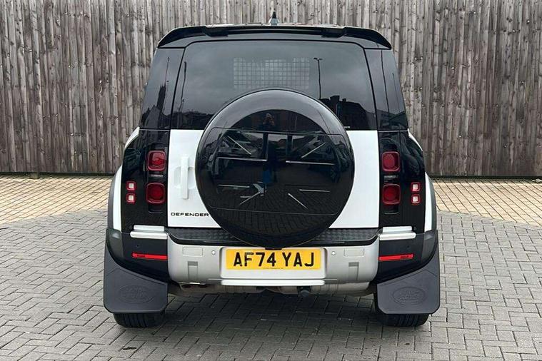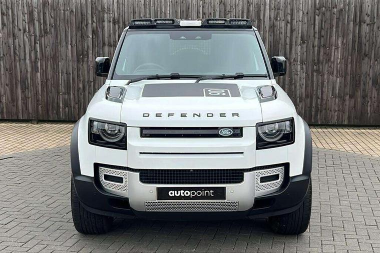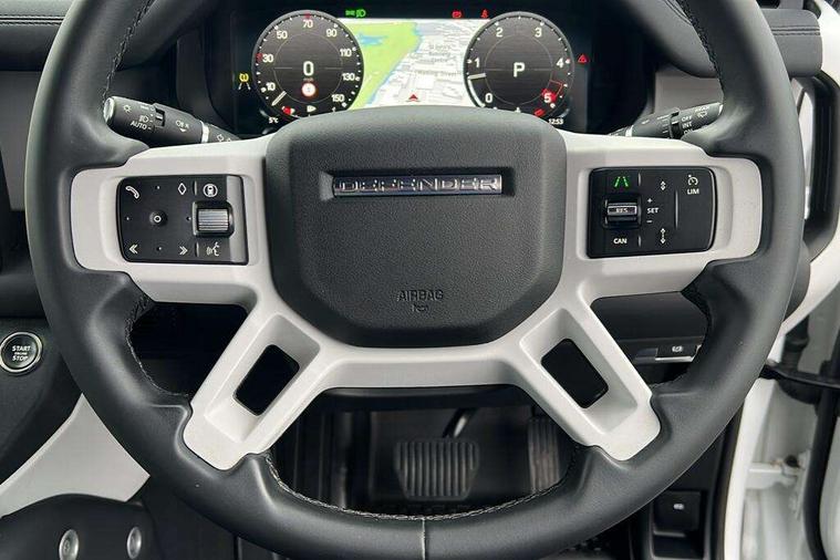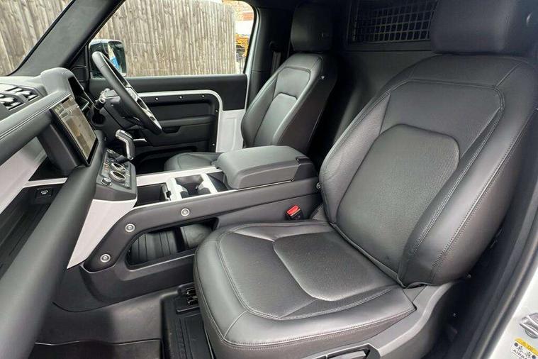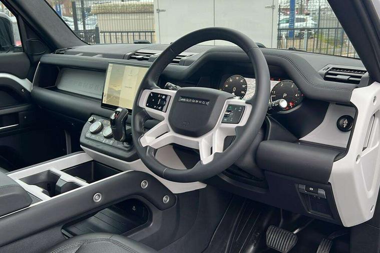 Customer Configurable Autolock, 11.4" touchscreen, 360 parking aid, 3D Surround Camera with 360 View, 180 Rear View, Front Traffic Detection, Forward Vehicle Guidance, Tow Hitch Assist and clear sight Ground View, Adaptive cruise control, Brake Hold, Driver condition monitor, Electric power assisted steering (EPAS), Lane keep assist, Low traction launch, Pivi pro connected, Traffic sign recognition adaptive speed limiter, Trip computer, Tyre pressure monitor, Android Auto, Apple CarPlay, DAB Radio (Digital Audio Broadcasting), Alpine lights, Assisted tailgate, Auto High Beam Assist, Automatic headlight levelling, Automatic headlights and rain sensitive front wipers, Body coloured bonnet, Centre high mounted stop light, Electric heated/power fold door mirrors with approach lights and auto dimming driver side, Electric windows with one touch open/close and anti-trap, Exterior signage panel, Follow me home lighting, Heated rear window with timer, Heated windscreen, LED tail light, Premium LED headlights with signature DRL, Privacy glass, Puddle lights, Rear fog lights, Rear wash wiper, Side-hinged tailgate, Standard roof, Standard tail door, Standard tread plates, 12 way heated semi powered front seats including rear centre armrest, Additional lashing points, Dual zone climate control, Durable rubber cabin flooring, Footwell lights, Full height bulkhead behind row 1 seats, Glovebox storage, High sided rubber mats, Loadspace cover, Loadspace hooks, Loadspace rubber mat, Overhead stowage for sunglasses, Rear centre headrest, Rear reading light, Resist gearshift, Standard interior, Standard Non-Leather steering wheel, Standard seating configuration, Sunvisors with illuminated vanity mirrors, Upgraded loadspace LED lighting, Online pack - Defender with data plan, Brake pad wear indicator, Cross car beam in Light cloud Powder Coat finish, Electronic traction control, Emergency braking, Front airbags, with passenger seat occupant detector, Power operated child locks, Remote for (e-Call, Optimised assistance call, InControl app, Climate, beep and flash and door), Seat belt reminder, Intrusion sensor, Keyless entry system, Locking wheel nuts, Spare wheel lock, 8 speed automatic transmission, ABS and EBA, All wheel drive, CBC - (Cornering brake control), Dynamic stability control, Electronic brake force distribution, Electronic park brake, Gradient acceleration control, Hill Descent Control, Hill start assist, Particulate filter (DPF), Push button start, Roll stability control, Trailer stability assist, Twin speed transfer box (high/low range),