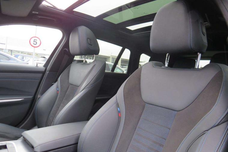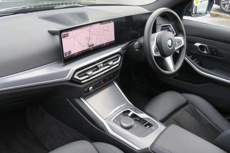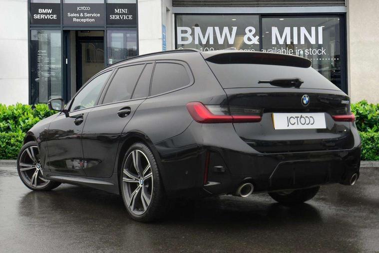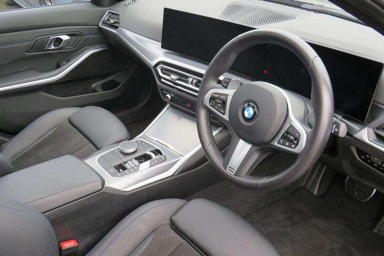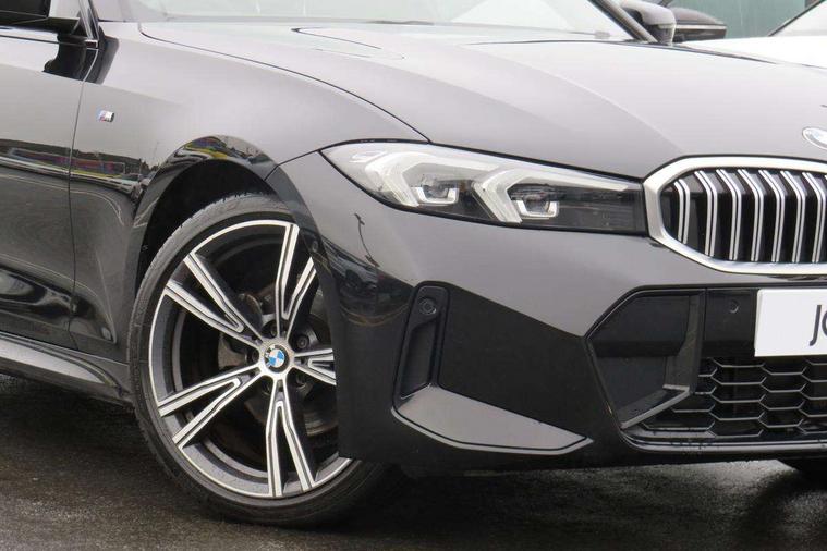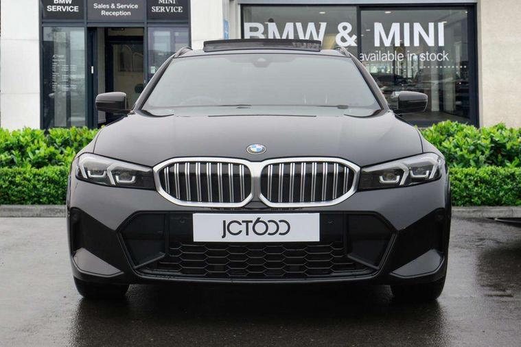 Active guard plus, Attentiveness assist, Automatic Start/stop button, Bluetooth Wi-Fi interface, BMW iDrive, BMW Teleservices, ConnectedDrive Services - last state call, Electric bootlid, Live cockpit plus with Navigation + 12.3" instrument display + 14.9" display, Intelligent voice assist, 2 USB, 4G LTE connect, Oil sensor for level and grade, Personal e-SIM, Shifting point display, Variable sport steering, Double joint spring strut front axle, Electronic differential lock control (EDLC), Fuel tank breather system, Sport automatic transmission with steering-wheel mounted gearshift paddles and launch control, DAB tuner, 3rd brake light, Auto dimming rear view mirror, Automatic headlight beam throw control with load dependent regulating reaction, dynamic compensation of braking dive and acceleration squat, Bi-LED Low and high beam headlights, BMW emblem, engine compartment lid and tailgate, Body colour roof fin, Door sill strips, Electric windows - front and rear, with open/close fingertip control, anti-trap facility and comfort closing, Fading support, Follow me home headlight function, Front and rear bumper system with replaceable deformation elements, Front apron plastic in body colour, Fuel filler flap - right rear in body colour, Heat protection glazing on front windows and windscreen, Heated washer jets, High gloss chrome kidney frame with high gloss black kidney struts, High gloss shadow line roof rails, LED daytime running lights, LED rear lights, LED turn indicator, Licence plate panel integrated into front bumper and tailgate, M high gloss shadow line exterior trim, Matt black B-pillar finsher, Matt black window recess cover, One piece front bumper cover including towing eye cover in body colour, Rain sensor with automatic headlight activation, Rear side wing doors, Rear wiper, Reversing lights, Side frame decorative moulding black matt, Trailer stabilisation logic, Visible exhaust tailpipe finisher, Welcome lights in interior and door handle area, 12V power socket in front storage compartment, 2 front cupholder in centre console with clamping elements and matt black inlay, 3 seat bench in 2nd row, 3 spoke M Sport multifunction flat bottom leather steering wheel, 3 zone automatic air conditioning, 40:20:40 split folding rear seat with loading system, Anthracite headlining, Armrest integrated in front and rear door trim + front centre console armrest, BMW ID, Cruise control operation in steering wheel, Driving experience mode switch, Folding rear centre armrest with 2 cupholders, Front and rear headrests, Front and rear velour floor mats, Front footwell lighting, Front reading light, Heated front seats, Height adjustable mechanically and infinitely variable steering column, Illuminated armrest storage compartment, Illuminated glove compartment, Illuminated luggage compartment, Lashing eyelets in luggage compartment, Single front passenger seat, Sunvisors with illuminated vanity mirrors and ticket pocket, Toolkit located in luggage compartment, Connected pack professional - 3 Series Saloon/Touring, Interior and exterior mirror pack - 3 Series Touring/Saloon, M sport exterior styling pack - 3 Series Saloon/Touring, Parking assistant pack - 3 Series, 3x3 point rear seatbelts, BMW emergency call, Child locks on rear doors, Crash sensor activating of airbags, Unlocking doors, hazard warning lights, interior light, safety battery terminal, Drive-off assistant, Driver and front passenger with seat occupancy detection for driver's and passenger side, Driver and passenger side airbags, body protection at side and airbags deploy from seat backrests, Dry braking, Dynamic brake control, Dynamic stability control + (DSC+) - Anti-lock Braking System (ABS) with brake assist and cornering brake control + Automatic Stability Control (ASC), Dynamic Traction Control - DTC, Electric parking brake including automatic hold function and automatic release of the parking brake when driving off, Front airbag deactivation, Front airbags for driver and front passenger, Head airbags in 1st and 2nd row, head protection at side, curtain airbags open from headliner above 1st and 2nd row, Plastic fuel tank, Side impact protection, Tyre pressure sensors, Ventilated front and rear disc brakes, Warning triangle and first aid kit, Alarm system, Centre lock switch, Closing system with central locking, Electronic vehicle immobiliser, Locking wheel bolts,