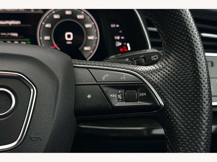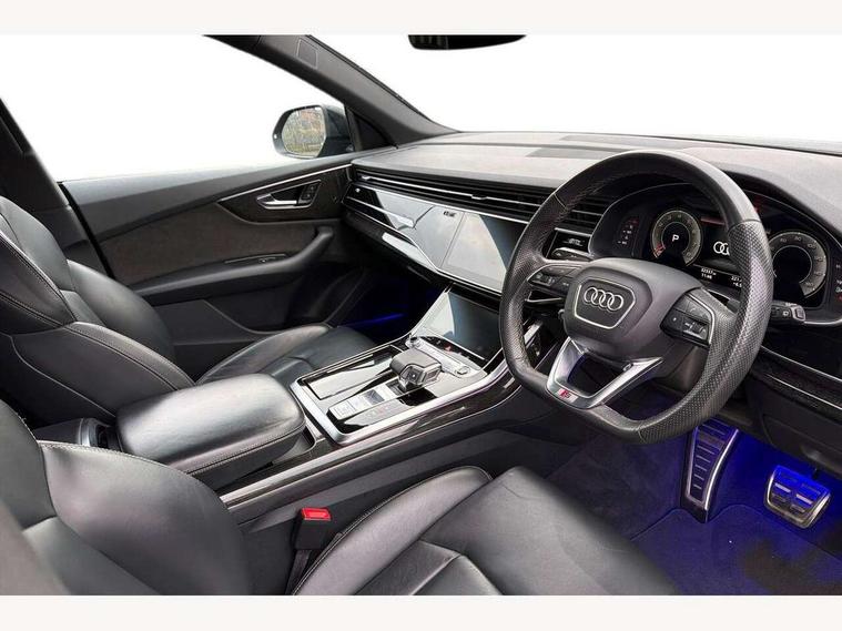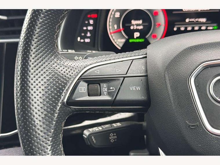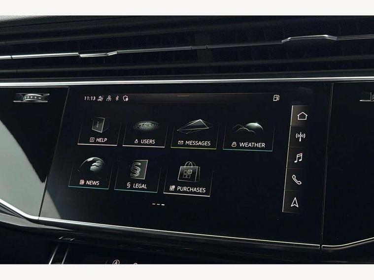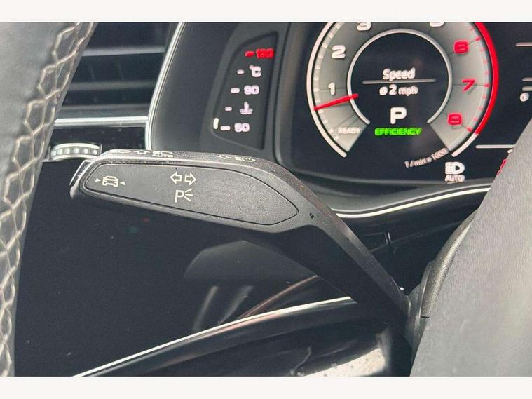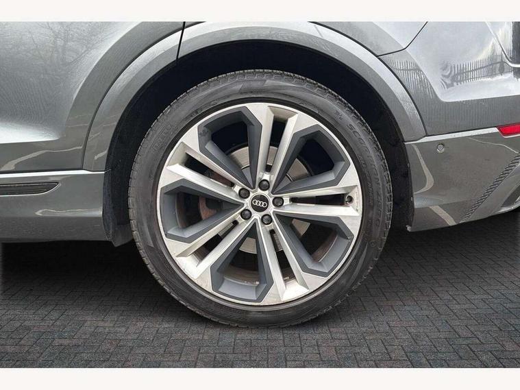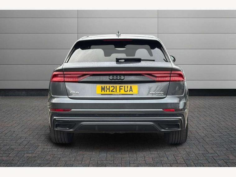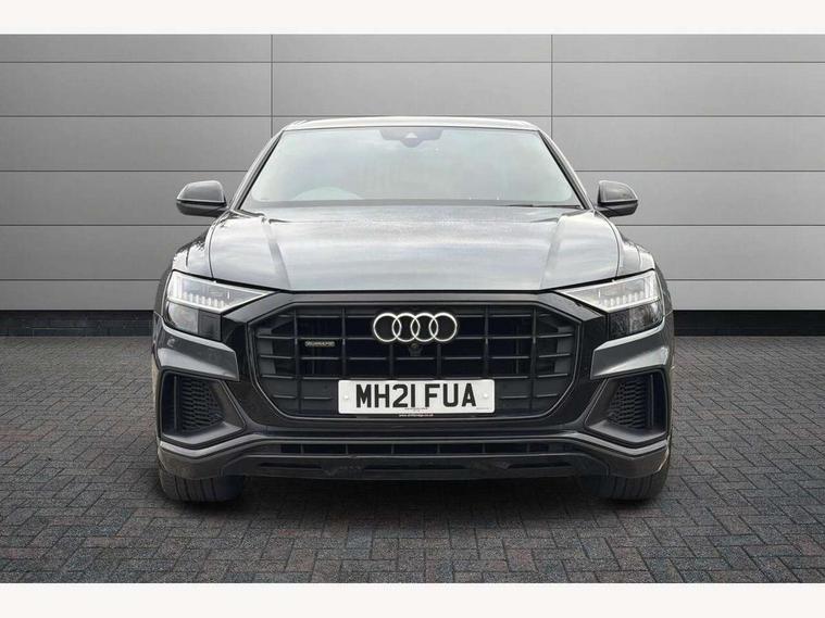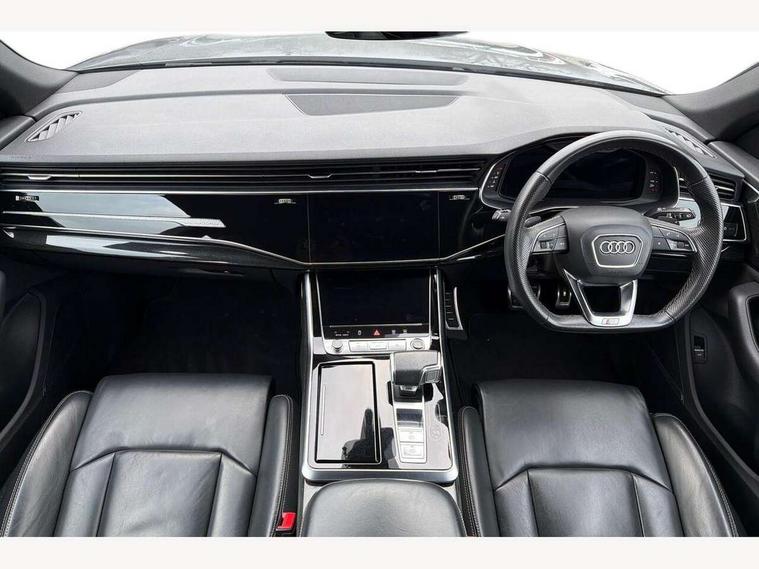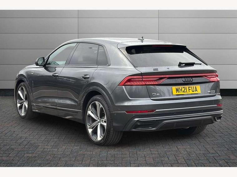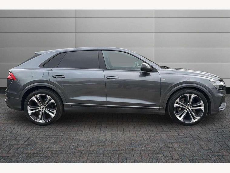 10.1" and 8.6" Dual colour touchscreens, Audi connect safety and service (e-call), Audi connect with Amazon Alexa Integration, Audi drive select, Audi parking system plus includes 360 degree display with front and rear sensors, Audi phone box with wireless charging, Audi smartphone interface includes wireless Apple carplay/Android Auto, Audi virtual cockpit - 12.3" high resolution LCD display with fully customisable instrument cluster, Automatic start/stop system, Electro-mechanical PAS, Low washer fluid indicator, MMI - Multi Media Interface control system, MMI navigation plus with MMI touch, Natural voice recognition, On board computer, Operating buttons in black, glass look with haptic feedback, Power operated tailgate, Rear view camera, Service interval indicator, 48V Mild hybrid technology, 85 litre fuel tank, Adaptive sport air suspension, Quattro all wheel drive with self locking centre differential, Audi music interface with 2 USB ports with charge and data functions, Audi sound system with 6 channel amplifier, 180 watt amplifying capacity and 10 loudspeakers including subwoofer, Aux-in socket, DAB Digital radio, Acoustic windscreen, Audi HD Matrix LED headlights with dynamic front and rear indicators, Auto dimming frameless rear view mirror, Coming/leaving home lighting function, Electric front+rear windows, Electrically folding auto dimming/adjustable/heated door mirrors with memory function, LED side indicators and kerb view function for passenger side, Headlight washers, Heat insulating glass in windshield, LED signature daytime running lights, Platinum grey front spoiler lip and diffuser insert, Privacy glass - dark tinted rear and rear side windows from B-pillar backwards, Rain and light sensors, Rear wiper, 4 zone deluxe automatic climate control, 4-way lumbar support for front seats, 40:20:40 split folding rear bench seat, Black cloth headlining, Comfort front centre armrest, Driver seat memory function, Electrically adjustable front seats, Front head restraints, Front/rear floor mats, Heated front seats, ISOFIX child seat mounting for front passenger seat and 2 outer rear seats with top tether child seat mounting for all 3 rear seats, LED interior ambient lighting, Luggage compartment sill protection in stainless steel, Rear centre armrest with 2 cupholders, Rear headrests, Rear seat bench plus, Stainless steel pedals, Sunvisors with illuminated vanity mirrors, Tool kit, Titanium Black Styling Pack - Q8, 3 point seatbelts on all seats, Audi pre sense front, Driver and front passenger, front side and curtain airbags, Electromechanical parking brake, Electronic Stability Control (ESC) including ABS, ASR and EDL, Front passenger airbag deactivation, Hill descent control, Hill hold assist, Predictive pedestrian protection, Seatbelt monitoring, Traction control, Tyre pressure loss indicator, Warning triangle and first aid kit, Anti theft alarm with tow away protection, Anti-theft wheel bolts and wheel loosening detection, Immobiliser, Keyless go with remote central locking, Polished oak trim with grey finished, Tyre repair kit,
