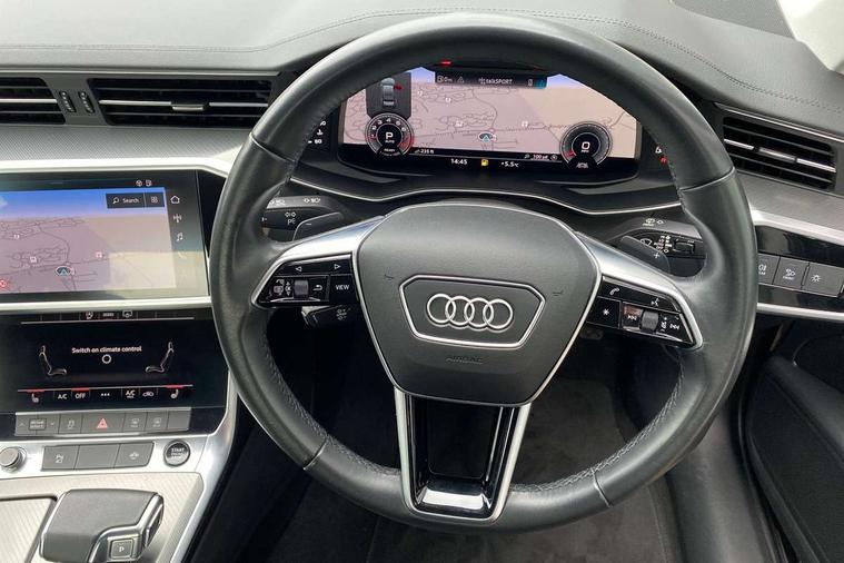 7" high resolution colour driver information display system, Audi connect safety and service (e-call), Audi connect with Amazon Alexa Integration, Audi drive select, Audi parking system plus - acoustic and visual park assist system for front and rear, Automatic start/stop system with coasting functionality, Bluetooth interface, Cruise control + speed limiter, Electric boot lid release, Lane departure warning system, Progressive steering, Rear view camera, Service interval indicator, Smartphone interface includes wireless Apple carplay/Android Auto, Voice control system, Standard suspension, Audi front music interface, Audi sound system, Auxiliary input socket, DAB Digital radio, USB connection, All weather LED headlights, Body colour bumpers, Body coloured door mirrors, Daytime running lights, Electric front/rear windows, Frameless auto dimming interior rear view mirror, Front intermittent wipers, Heat insulating darkened glass in side and rear windows, Heat insulating glass in windshield, LED rear lights, LED third brake light, Matt black rear diffuser with diffuser strip and tailpipes in chrome, Matt black side air intake grille with inlay in matt aluminium, Radiator grille in titanium black matt, single frame in chrome and horizontal struts in matt aluminium silver, Rain and light sensors, Rear boot, Rear side wing doors, 2 zone deluxe electronic climate control, 3 spoke high multi-function leather steering wheel with shift paddles, 4 way electric lumbar support for driver and front passenger, 40/20/40 split folding 3 rear seat bench in 3 parts with rear centre armrest, Black steering wheel insert, Centre armrest matches seat colour, Door sill trims with aluminium inlay, Front centre armrest, Front head restraints, Heated front seats, Height/reach adjust steering wheel, Illuminated sun visors with vanity mirrors, ISOFIX child seat mounting and Top Tether with front passenger airbag deactivation, Leather gear knob, Lunar silver cloth headlining, Rear headrests, Single front passenger seat, LED Interior Ambient Lighting Pack - A6, Non smoking pack - A6, Technology pack - A6, 3 point seatbelts on all seats, Airbags - Front side, front and rear including head, Audi pre-sense front, EBD - Electronic brakeforce distribution, Electromechanical parking brake, Electronic Stability Control (ESC) including ABS, ASR and EDL, Extended pedestrian protection measures, Manual child proof rear door locks, Seatbelt monitoring, Tyre pressure warning light, Warning triangle and first aid kit, Anti theft alarm with tow away protection, Anti-theft wheel bolts and wheel loosening detection, Immobiliser, Keyless Go, Remote central locking, Aluminium fragment inlay,