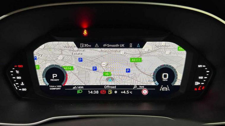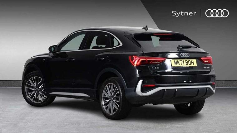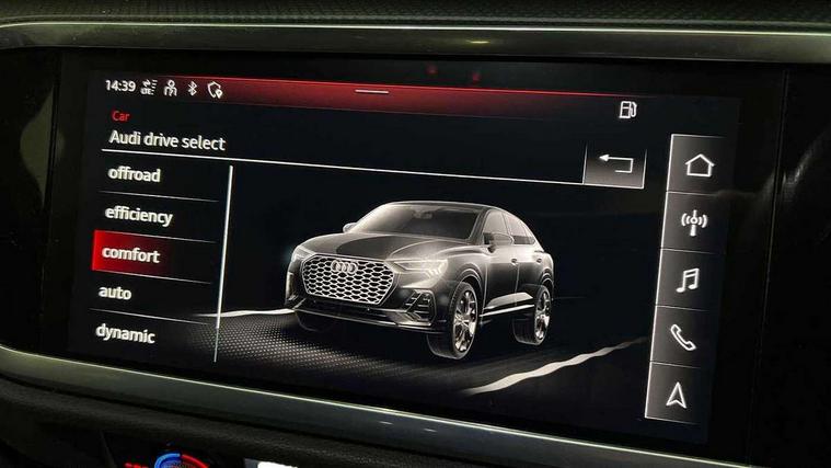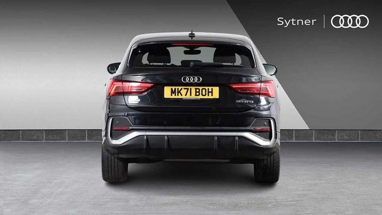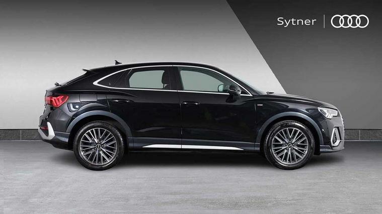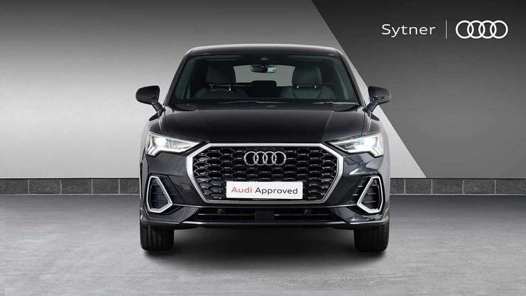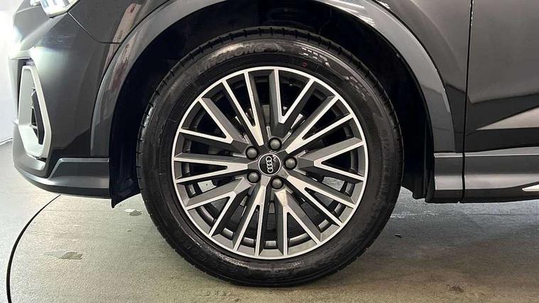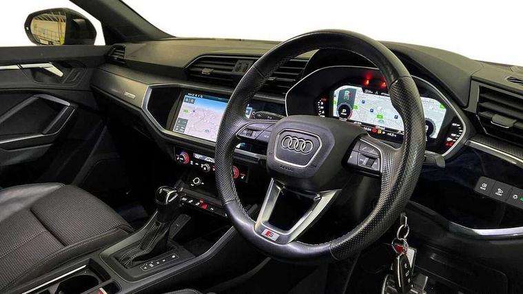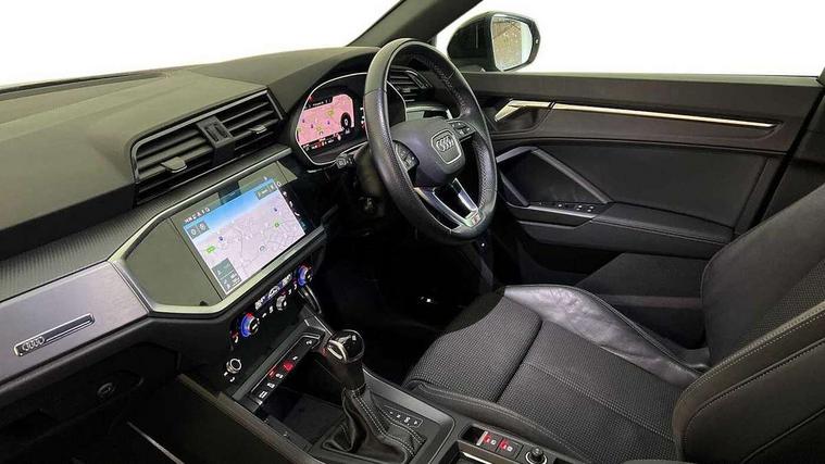 Audi connect safety and service (e-call), Audi drive select, Audi lane departure warning, Audi smartphone interface includes wireless Apple carplay/Android Auto, Audi Virtual Cockpit - 10.25" display, Bluetooth interface, Camera based traffic sign recognition, MMI Navigation Plus with high resolution 10.1 inch touchscreen colour display, Power operated tailgate, Progressive steering, Service interval indicator, Start stop system with recuperation, Voice control system with natural language interaction, 48V Mild hybrid technology, Sports suspension, 2 USB-C ports with charge and data functions, 6 passive loudspeakers, DAB digital radio module, Acoustic windscreen, Aluminium window trim, Auto dimming frameless rear view mirror, Diffuser grille in grained matt black, Diffuser trim in selenite silver, Electrically folding, adjustable and heated door mirrors with integrated LED side indicators and kerb view function for passenger side, Front and rear electric windows, Front fog lights, Front side air inlets in selenite silver, Front underbody protection in manhattan grey paint finish, Grille surround in aluminium silver matt, High gloss black finish B and C pillars, LED headlights with LED daytime running lights and dynamic rear indicator, LED rear lights, Privacy glass dark tinted rear and rear-side windows (from B-pillar backwards), Radiator grille in titanium black with inlay in matt aluminium silver, Rain and light sensors, Rear underbody protection in matt black, S line badges on front wings, Side skirt insert in matt Platinium grey, 12V socket in rear centre console, 40:20:40 folding with manual adjustment for 60:40 forwards/backwards position and backrest angle, Adjustable rear seat bench/backrest with centre armrest and cupholder, Black cloth headlining, Dual zone electronic climate control, Front and rear black floor mats with contrast stitching, Front and rear headrests, Front and rear roof module including reading lights, Front centre armrest, Glove compartment lighting, Height and reach adjustable steering wheel, Illuminated door sill trims with S logo, ISOFIX child seat mounting for front passenger with airbag deactivation and outer rear seat including top tether attachment point for outer rear seats, Luggage compartment light, Manual front seats with height adjustment, Perforated leather gearknob, Stainless steel luggage compartment sill finisher, Stainless steel pedals, Tool kit, Non smoking pack - Q3, 3x3 point rear seatbelts, 6 airbags - Driver, front passenger, curtain and side windows, Electrically operated child locks on rear doors, Electromechanical parking brake, Electronic stabilisation control including ABS, ASR and EDL, Hill descent control, Hill hold assist, Pre sense basic, Seatbelt monitoring, Tyre pressure warning, Warning triangle and first aid kit, Anti theft alarm, Anti theft wheel bolts, Audi pre-sense front with pedestrain and cyclist recognition, Remote central locking, Black dashboard, Dark matt brushed aluminium inlay, Leatherette door armrest, MMI touch colour display in glass look, black with surround in aluminium look, Tyre repair kit,