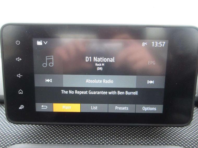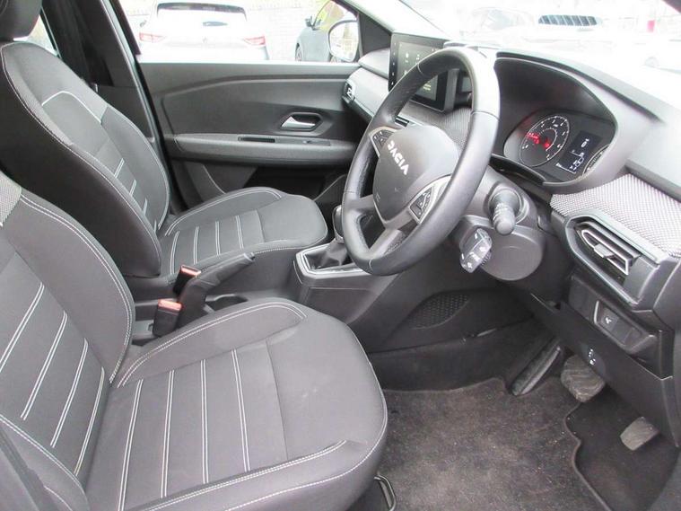 3.5" TFT instrument panel with on-board computer, Cruise control with speed limiter, eCall emergency call system, Eco mode, Electric power assisted steering, Rear parking sensors, Rev counter, Reversing camera, Stop/start system, 8" Media display - DAB radio, smartphone replication, bluetooth, 4 speakers, Apple CarPlay and Android Auto, Pre-wiring for radio and speakers, USB connection for data transfer and charging, USB socket, 3 speed windscreen wipers, Auto lighting, Automatic wipers, Black radiator grille, Body colour door handles, Body colour door mirrors, Drivers one touch electric windows, Electrically adjustable and heated door mirrors, Front and rear body coloured bumpers, Front electric windows, Front fog lights, Heated rear window, High level third brake light, LED automatic daytime running lights, LED Y shape Dacia signature lighting, Rear electric windows, Rear side wing doors, Rear wash/wipe, Tinted windows, 1/3 to 2/3 split folding rear seats, 12 volt front socket, 12 volt rear socket, 3 height adjustable rear headrests, 3 seat rear bench, Driver and passenger vanity mirror with cover, Fabric upholstery, Fixed smartphone holder on dashboard, Fog grey air vents, Height adjustable drivers seat with armrest, Height adjustable front headrests, Height/depth adjustable steering wheel, Isofix points for child seats in both outer rear seats, Manual air conditioning, Satin chrome interior door handles, Single front passenger seat, Soft feel steering wheel, 3x3 point rear seatbelts, 6 airbags - Driver, front passenger, curtain and side airbags, ABS and Emergency brake assist, Automatic emergency braking system, Child locks on rear doors, Door open visual and audible warning, ESC (Electronic Stability Control), ESP (Electronic Stability Program) + Hill Start Assist, Front seatbelt pretensioners, Height adjustable front seatbelts, Seatbelt reminder for driver and front passenger, Tyre pressure monitor, Automatic central locking, Engine immobiliser, Keyless entry, Remote central locking, Decopart on instrument panel and door with textile, 15" Flex wheels with full wheel cap,
