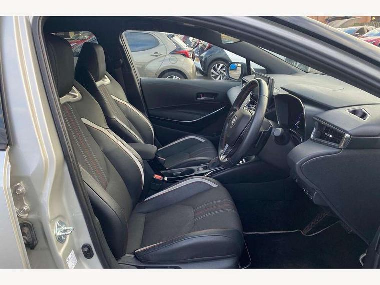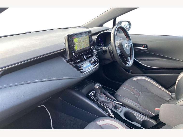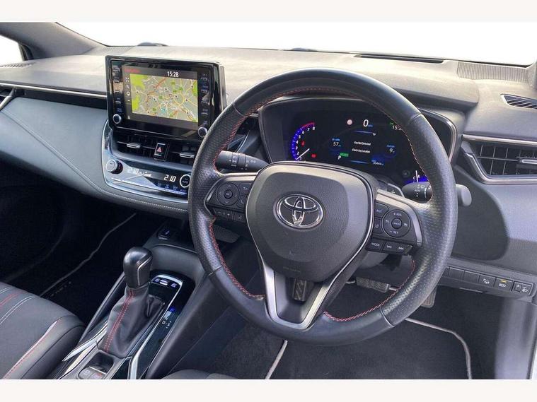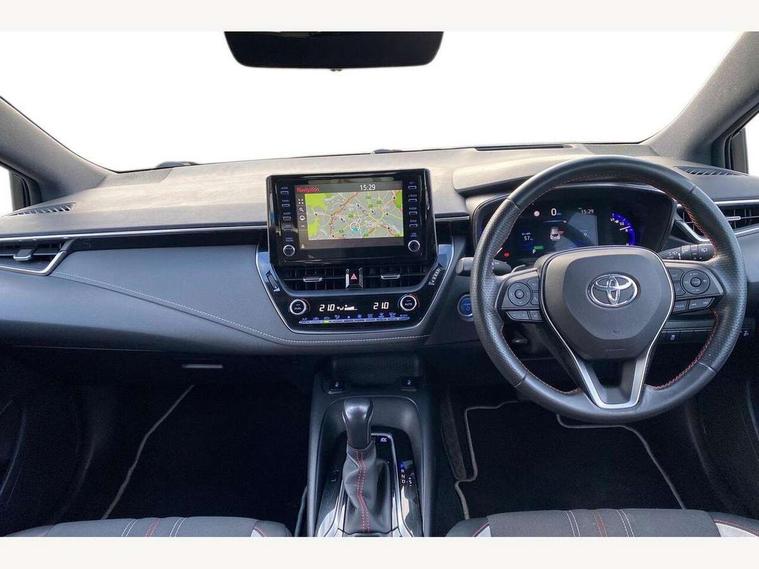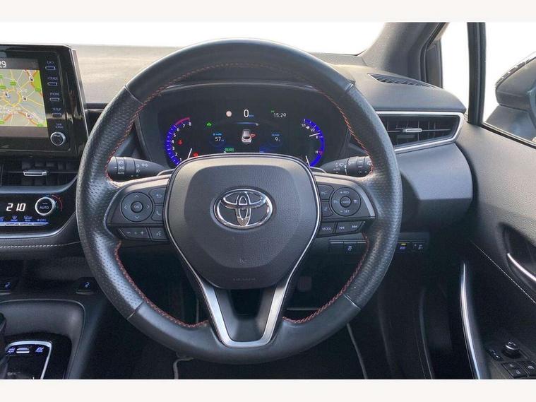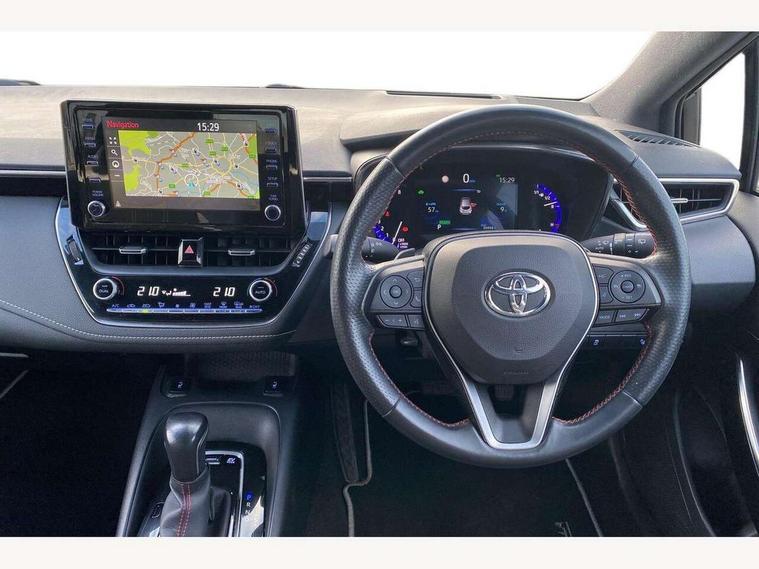 7" Multi information display screen, Bluetooth telephone connectivity, Connected car functionality upgrade, tracker, remote status and e-care, Dynamic radar cruise control (with RSA) including switch on steering wheel, E-call, Electrically assisted power steering, EV drive indicator, Head up Display, Intelligent park assist, Lane Departure Alert (LDA) switch on steering wheel, Memory on adjustable speed limiter, Push button start, Reversing camera, Smartphone integration with Apple CarPlay and Android auto, Gasoline particulate filter, Vehicle Stability Control (VSC), 6 speakers, 8" Touchscreen with MM19 Multimedia system and voice recognition, AM/FM radio, DAB Digital radio, Toyota touch 2 with go navigation system, USB and Aux in connectors + 12V front outlet, Anti-jam protection on power windows, Auto dimming inside rear view mirror, Auto up and down function on all power windows, Automatic folding mirrors, Automatic headlights with high beam assist, Black toyota logo in front, Black window frames, Body colour rear spoiler, Body coloured bumpers, Body coloured door mirrors, Body coloured outside door handles, Follow me home headlights, LED daytime running lights, LED front fog lights, LED High mounted stop light, LED multi-reflector headlights with manual headlight levelling, LED rear combi lights with LED lightguide, Piano black surround on lower front grille with dark chrome mesh effect, Power adjustable heated door mirrors, Power front windows, Power rear windows, Rain sensing wipers, Rear bumper with satin chrome plated inserts, Rear privacy glass, Rear window defogger, Rear window wiper, Reverse tilting door mirrors, Shark fin antenna, Time adjustment on intermittent wiper, Turning signal integrated indicators in door mirrors, Unique lower skirt, Unique side rocker with black insert, UV-filter on driver and passenger windows, 3 rear headrests, 3 spoke leather steering wheel + gear knob, 60/40 split folding rear seat, Adjustable speed limiter switch on steering wheel, Alcantara/partial leather upholstery, Audio, multimedia and telephone switches on steering wheel, Boot light, Centre room light, Clean air filter, Driver and front passenger personal light, Driver and passenger assist grip, Driver and passenger seatback pockets, Driver and passenger sun visor with mirror and light, Dual zone automatic air conditioning with ECO mode switch, Fabric armrests, Front and rear cup and bottle holders, Front door pockets, Front head restraints, Heated driver and front passenger seats, Illuminated entry system in room lamp, ISOFIX seat fixing (2 fixings on rear outer seats), Leather gear shift with satin chrome on gear shift console, Manual height adjustable for driver and front passenger seat, Paddle shifts, Parcel shelf, Pollen filter, Power adjustable lumbar support on driver seat, Power window switches with satin chrome inserts, Rear armrest with 2 cupholders, Rear passenger coat hooks (2), Satin chrome inside door handles, Shopping bag hooks in luggage compartment, Sliding armrest on centre console box, Slow opening glovebox with lights, Tilt/telescopic steering column, Voice recognition switch on steering wheel, Whiplash Injury Lessening (WIL) feature (active headrest) for seats, Parking pack - Corolla, Toyota safety sense 2 pack - Corolla, 3x3 point rear seatbelts, Adjustable driver and front passenger seat belt extender to top anchor point, Anti lock braking system + Electronic brake force distribution, Brake assist function, Downhill Assist Control (DAC), Electronic parking brake, Emergency brake light signal (EBS), Front passenger airbag on/off switch, Front seatbelt reminder, HAC - Hill start assist control, Rear seat belt reminder, Seatbelt pretensioners and force limiters, Supplemental restraint system (SRS) 7 airbags - dual driver, dual side curtain, side impact and driver knee airbags, Traction control, Tyre pressure warning system, Acoustic vehicle alert system (AVAS), Alarm with motion sensor and immobilizer, Remote central locking + deadlocks, Satin chrome dash trim, Soft touch texture on upper dashboard, Unique wheel finish with red wheel cap,